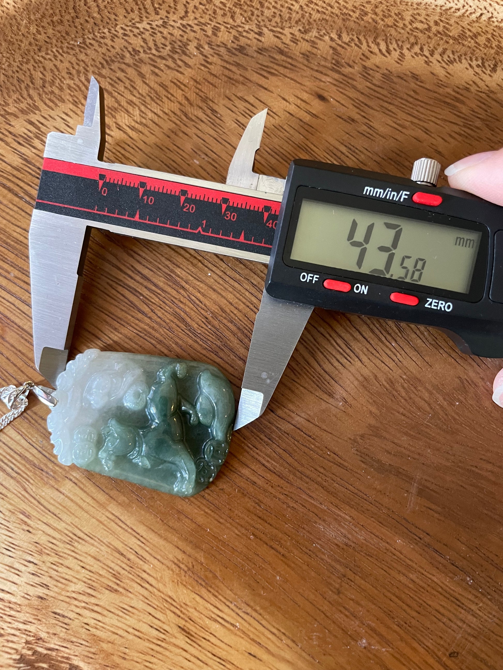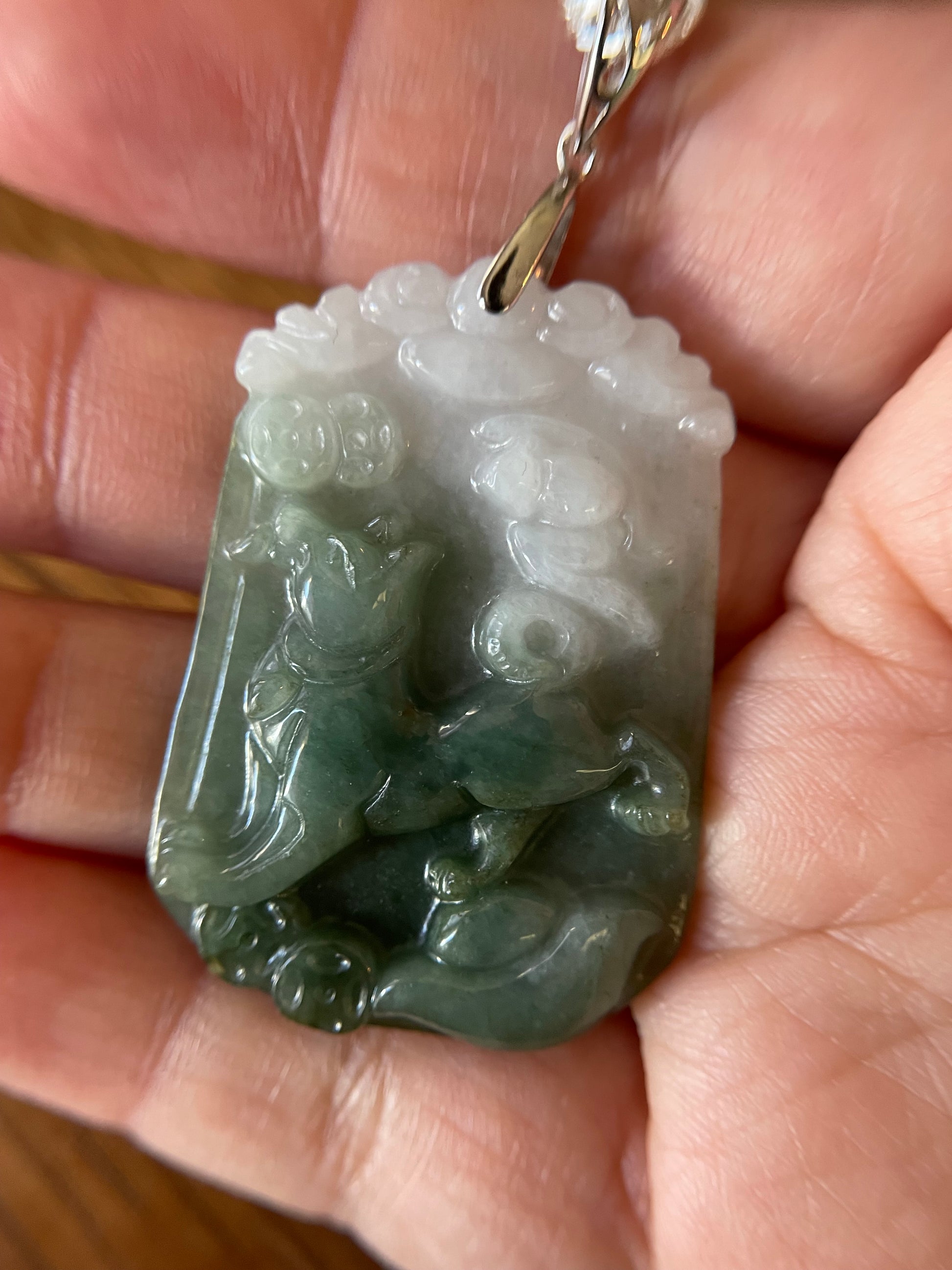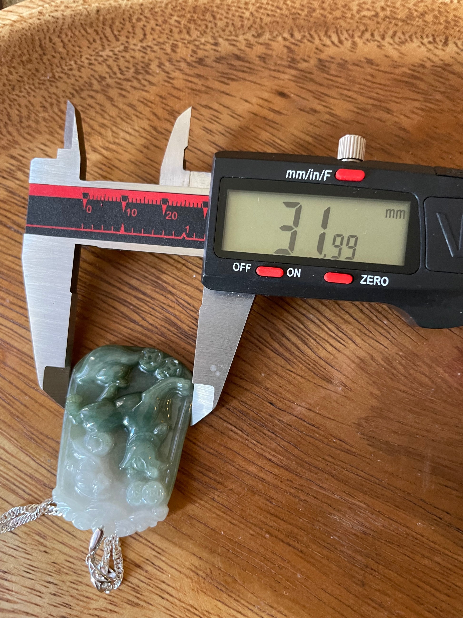 Grade A Burma jadeite Zodiac (Dog) pendant with silver necklace