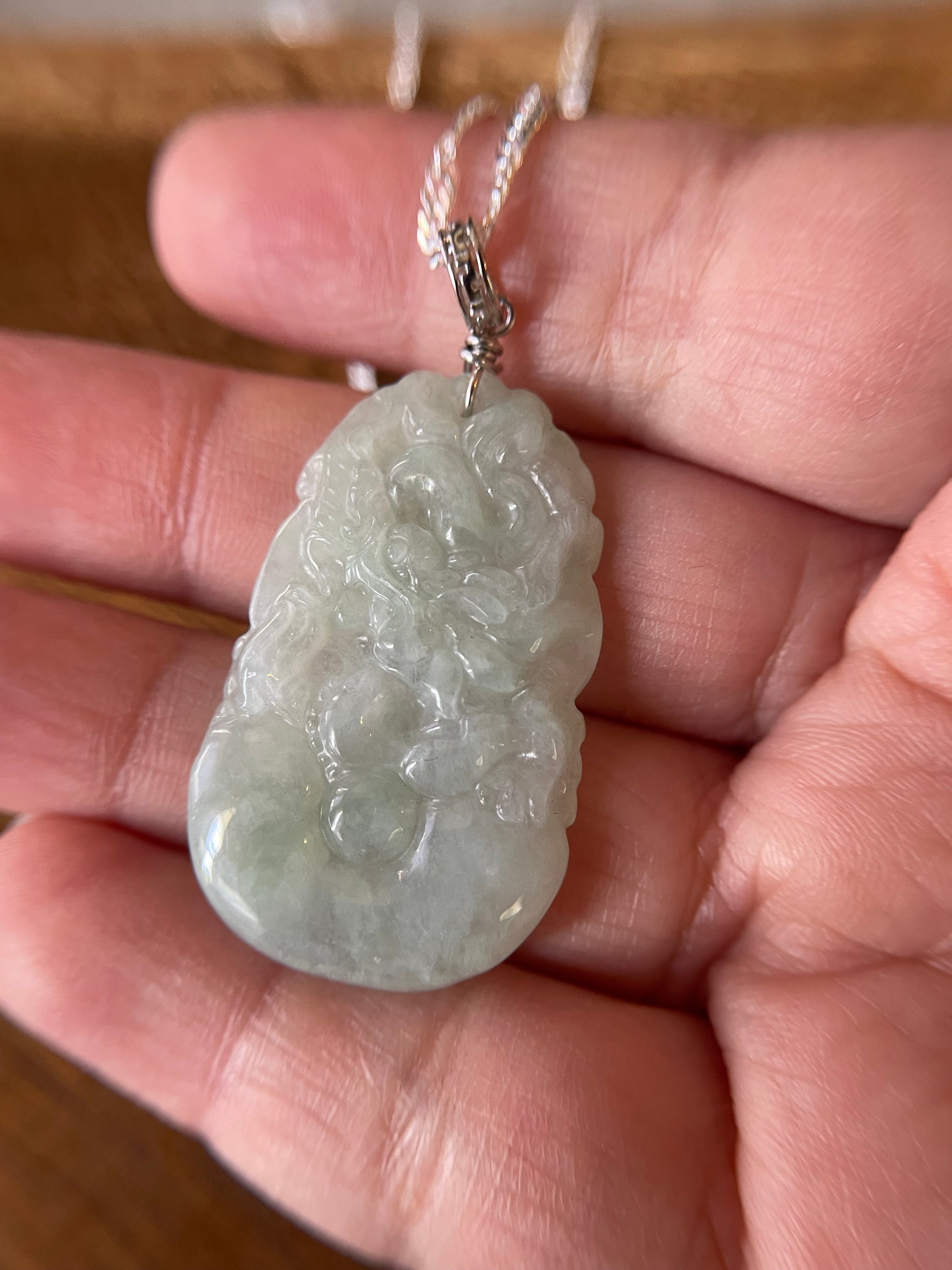 Grade A Burma jadeite Zodiac (DRAGON) pendant with silver necklace