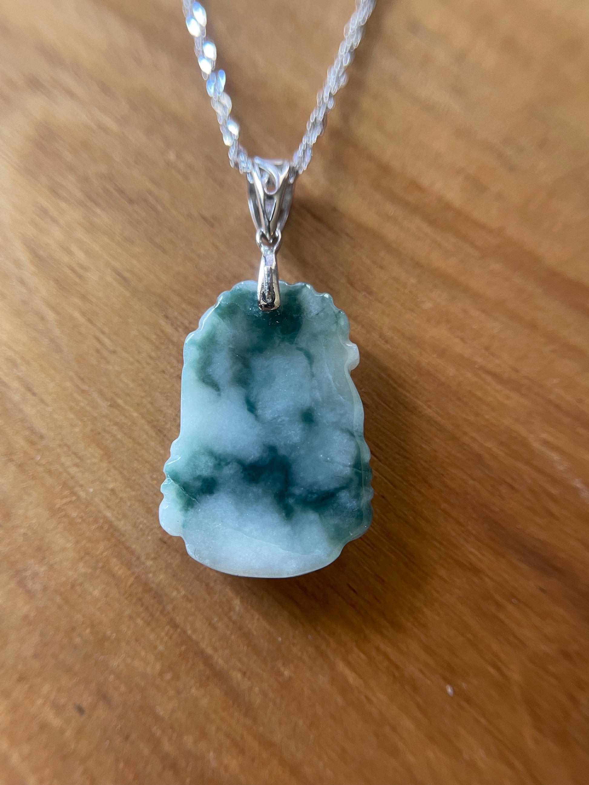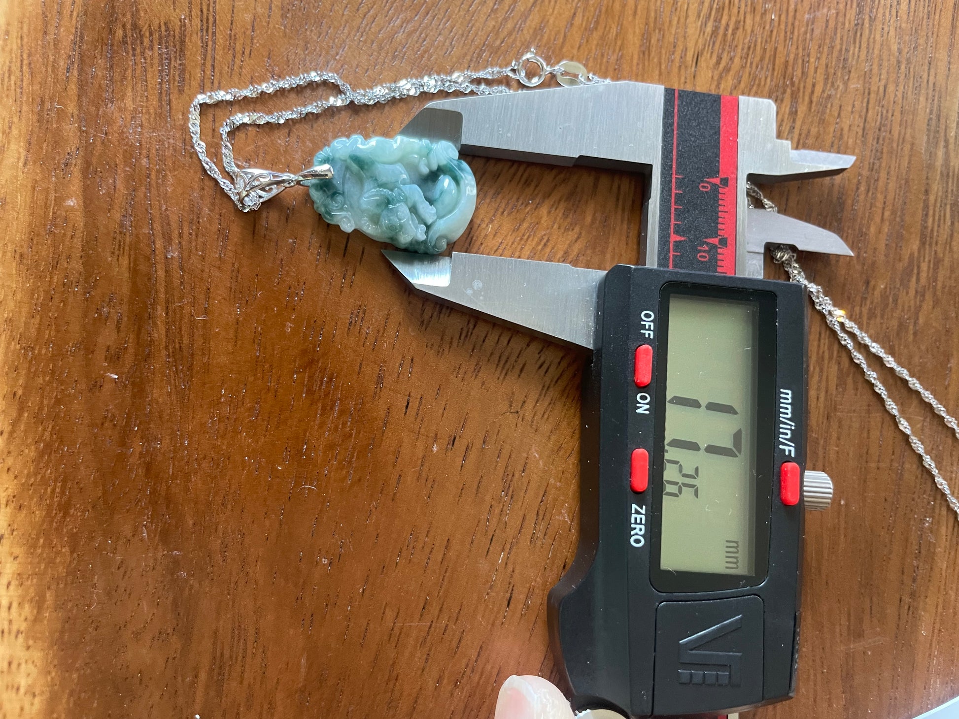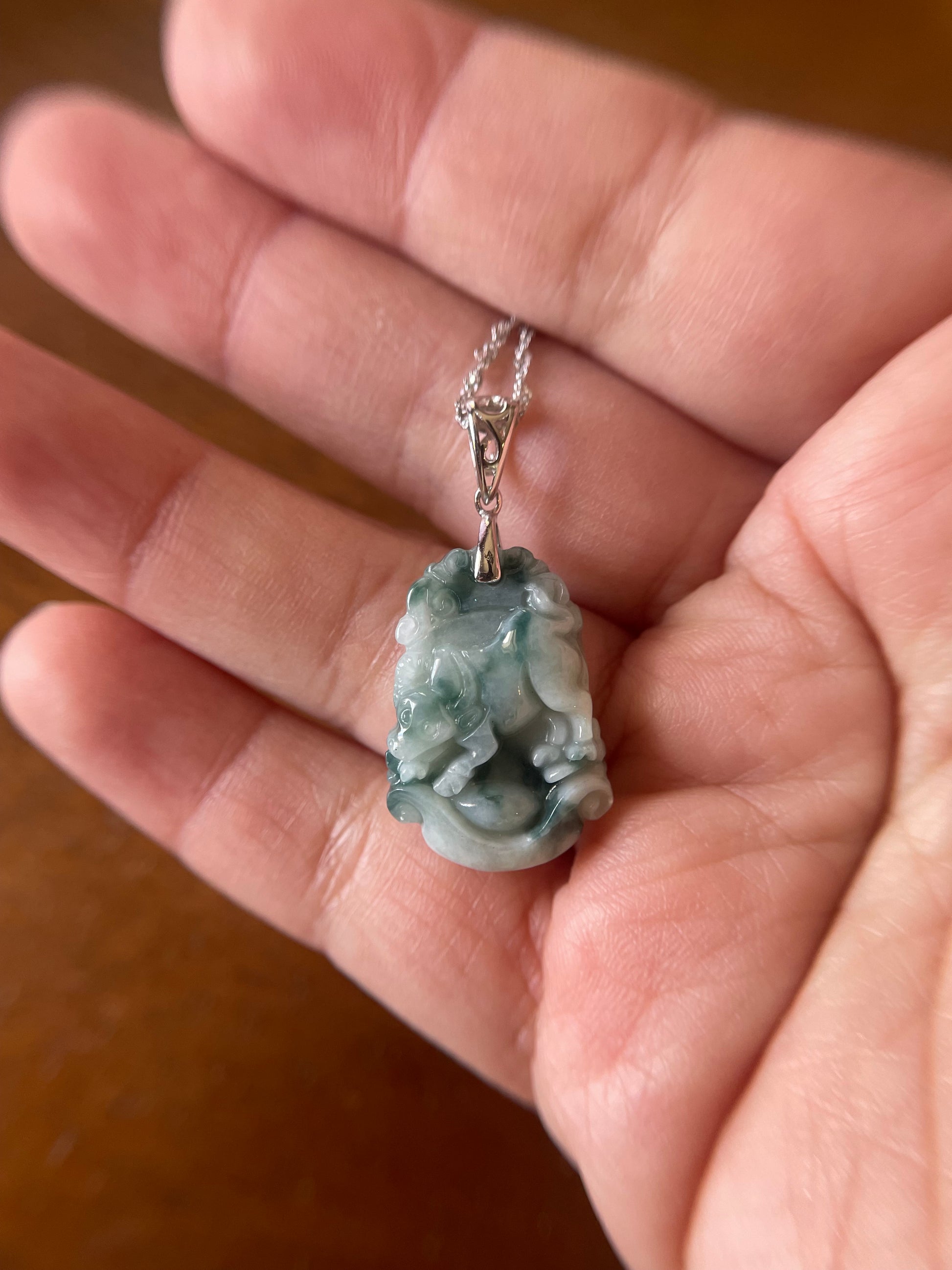 Grade A Burma jadeite Zodiac (OX) pendant with silver necklace