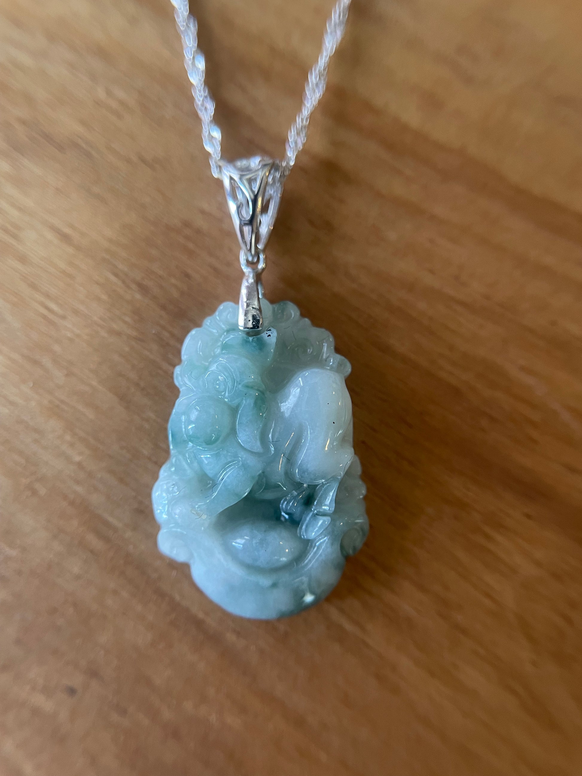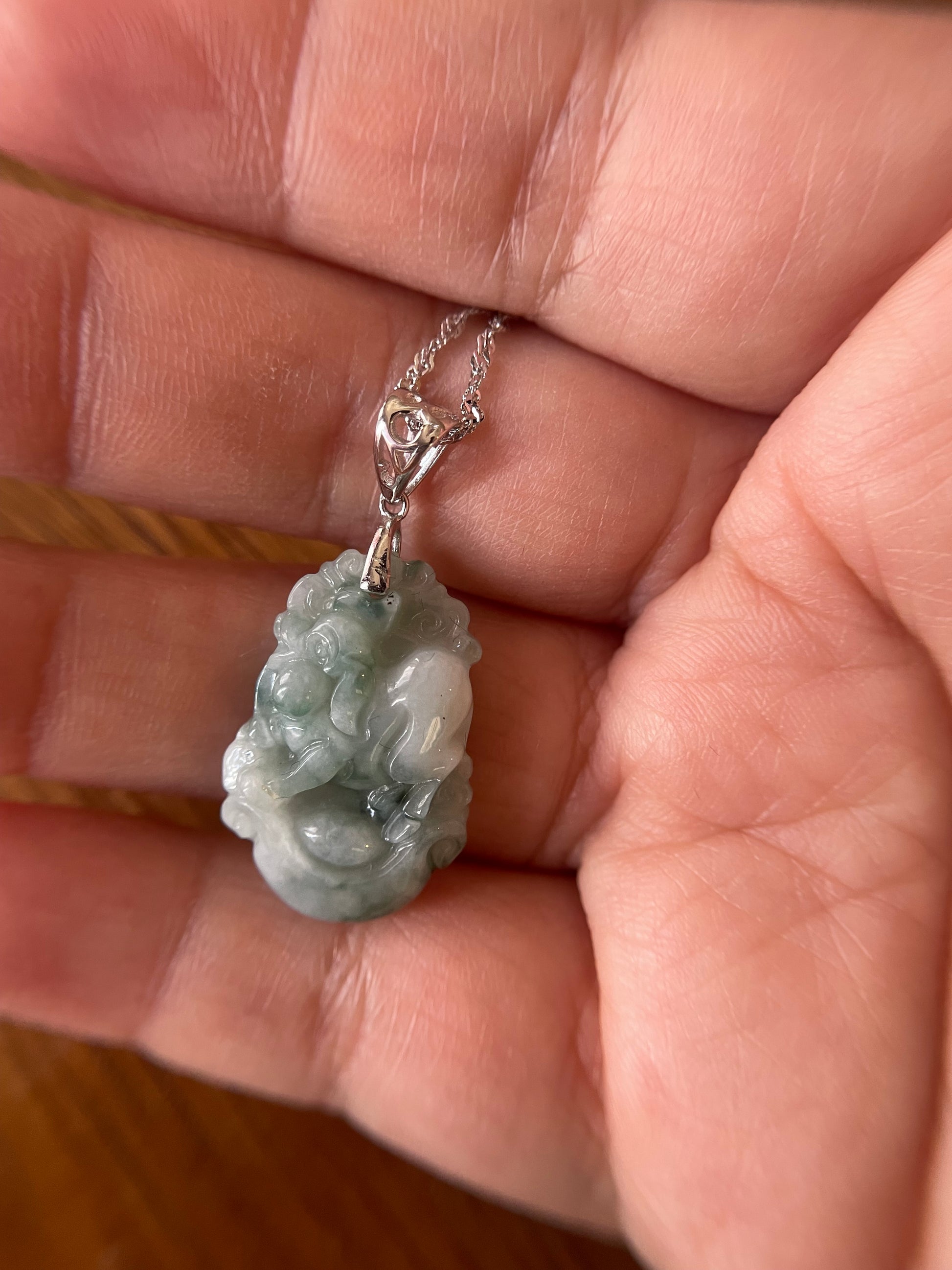 Grade A Burma jadeite Zodiac (Pig) pendant with silver necklace