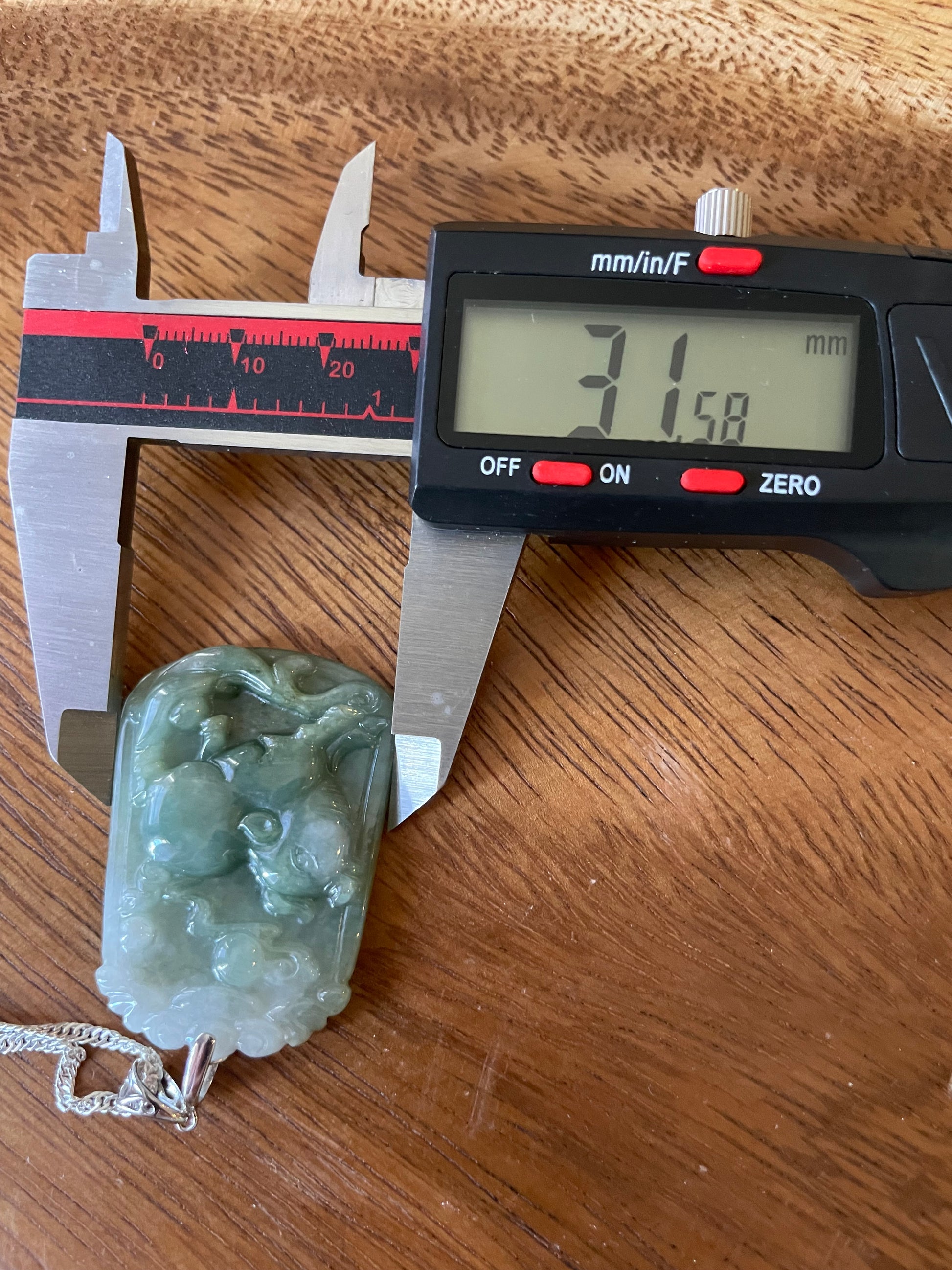 Grade A Burma jadeite Zodiac (Pig) pendant with silver necklace