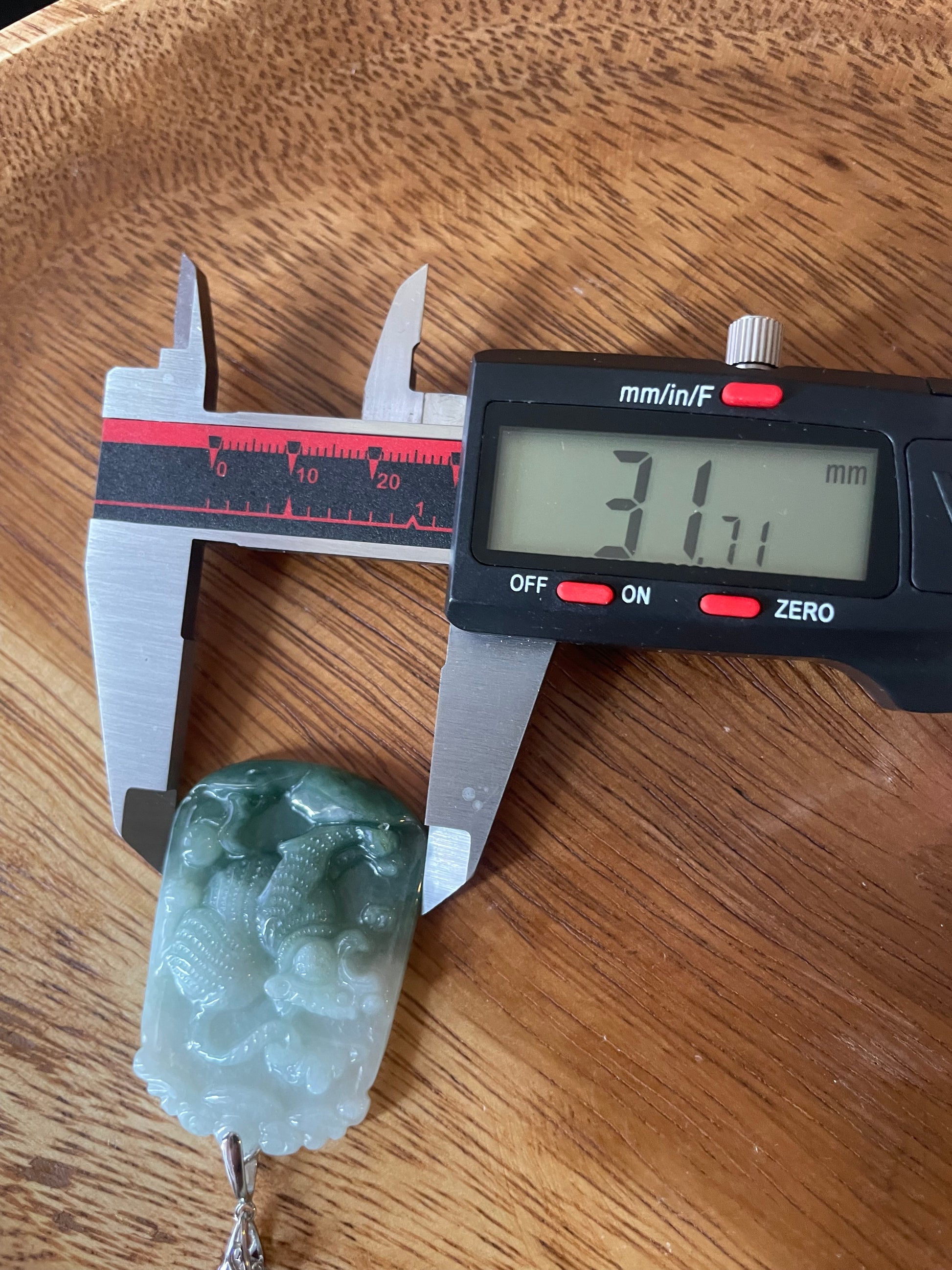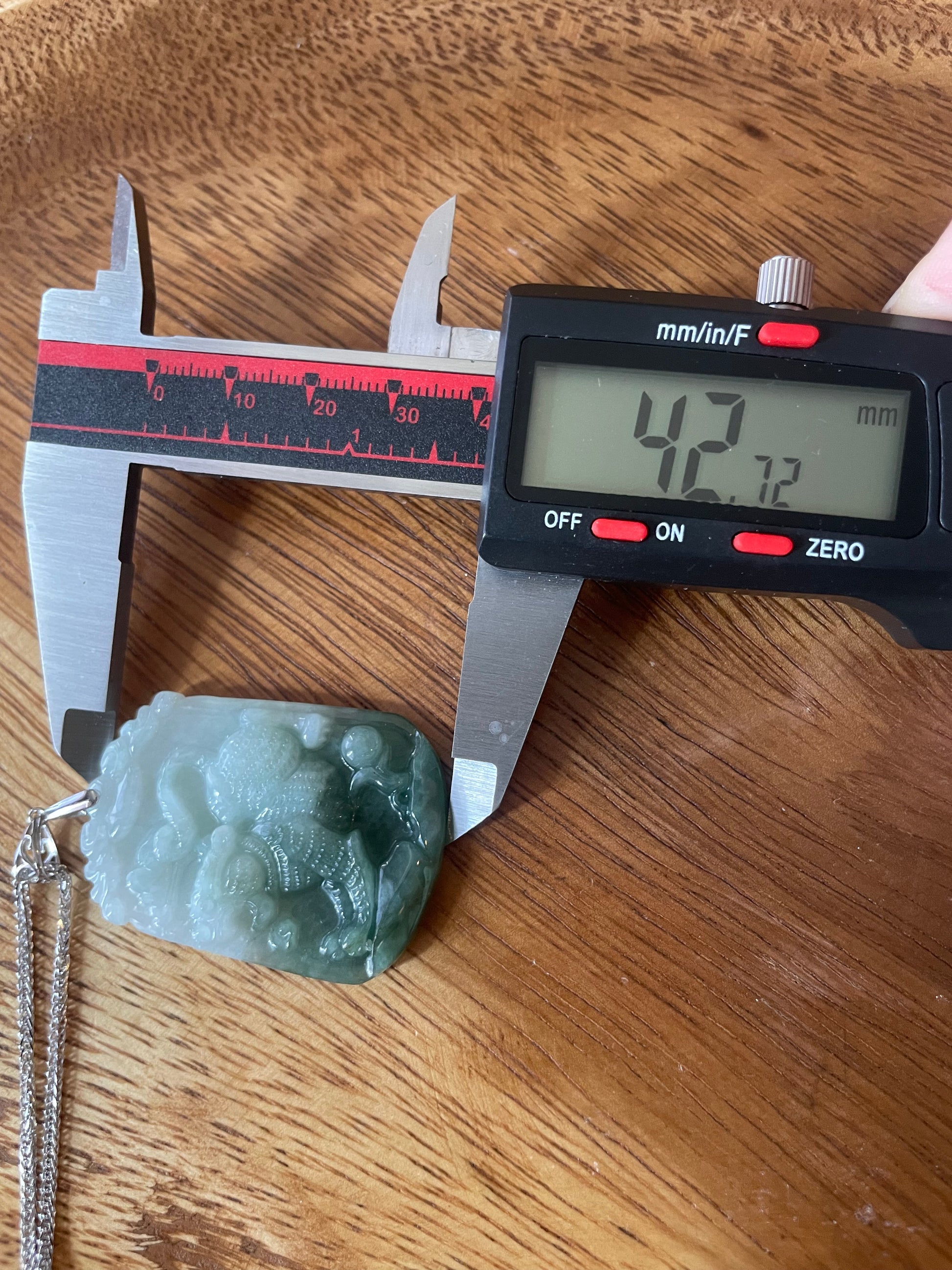 Grade A Burma jadeite Zodiac (Tiger) pendant with silver necklace