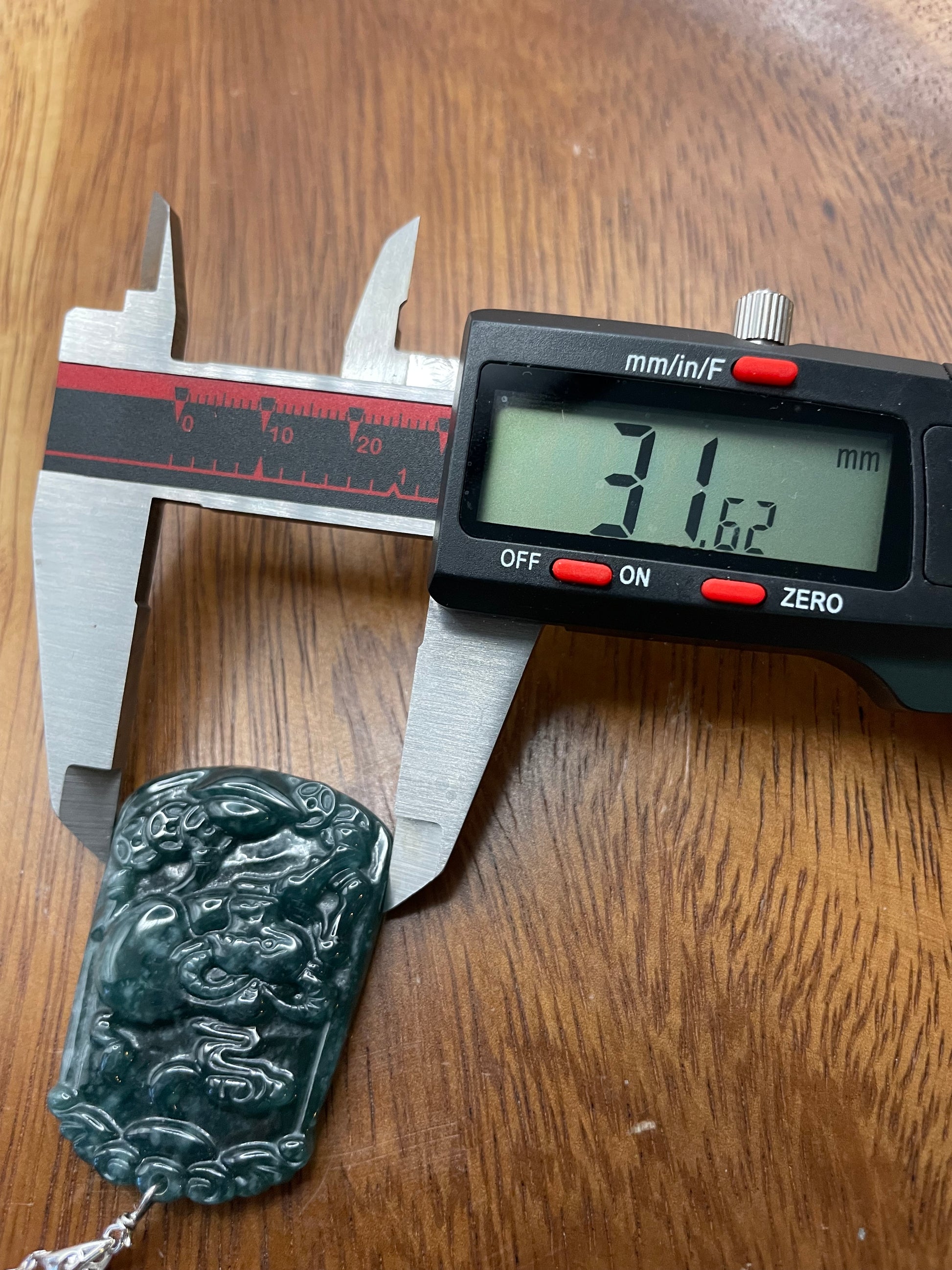 The pendant size is : 43.59 X 31.62 X 6.1mm.