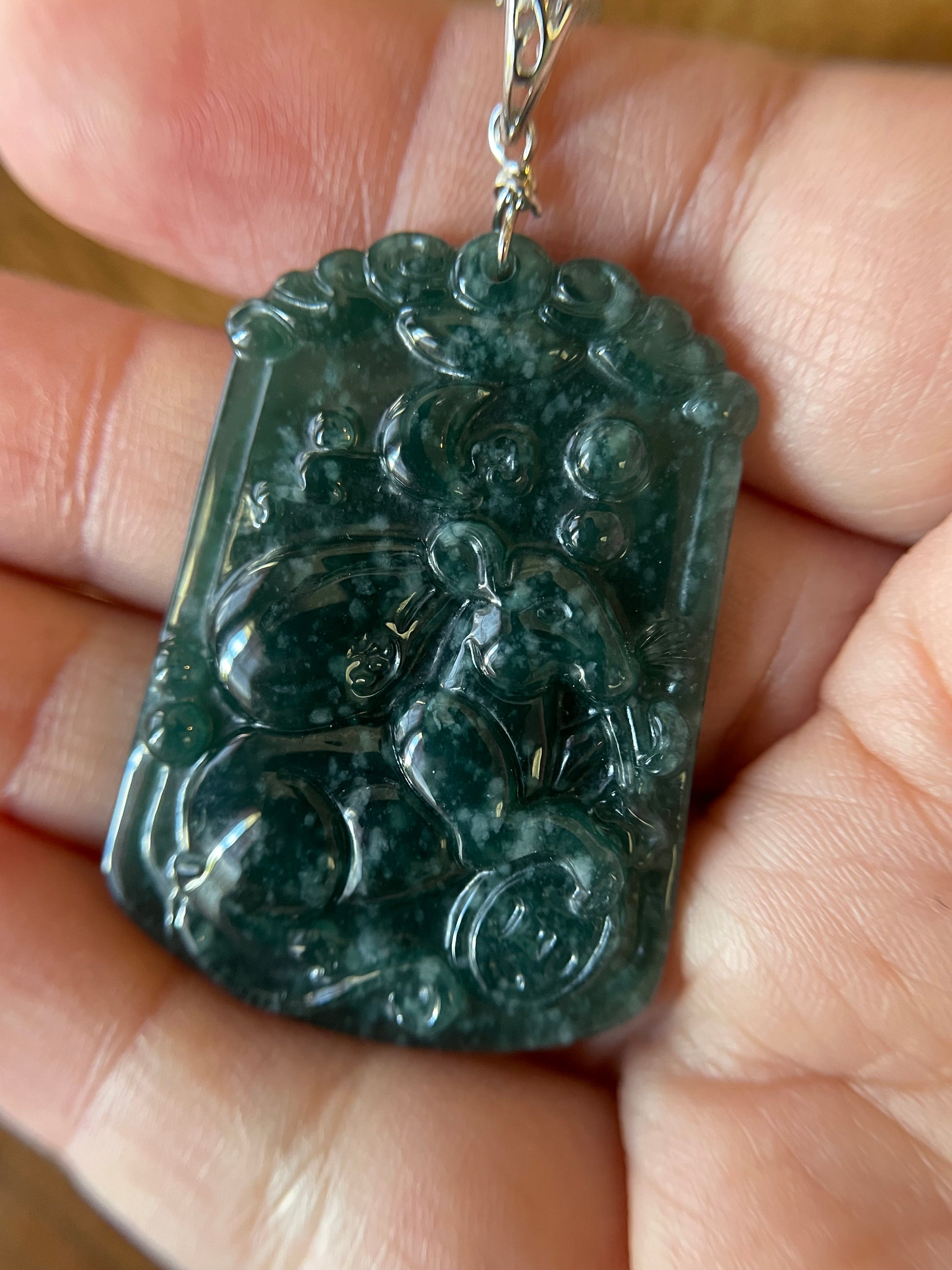 Grade A jadeite Zodiac (RAT) pendant with silver necklace