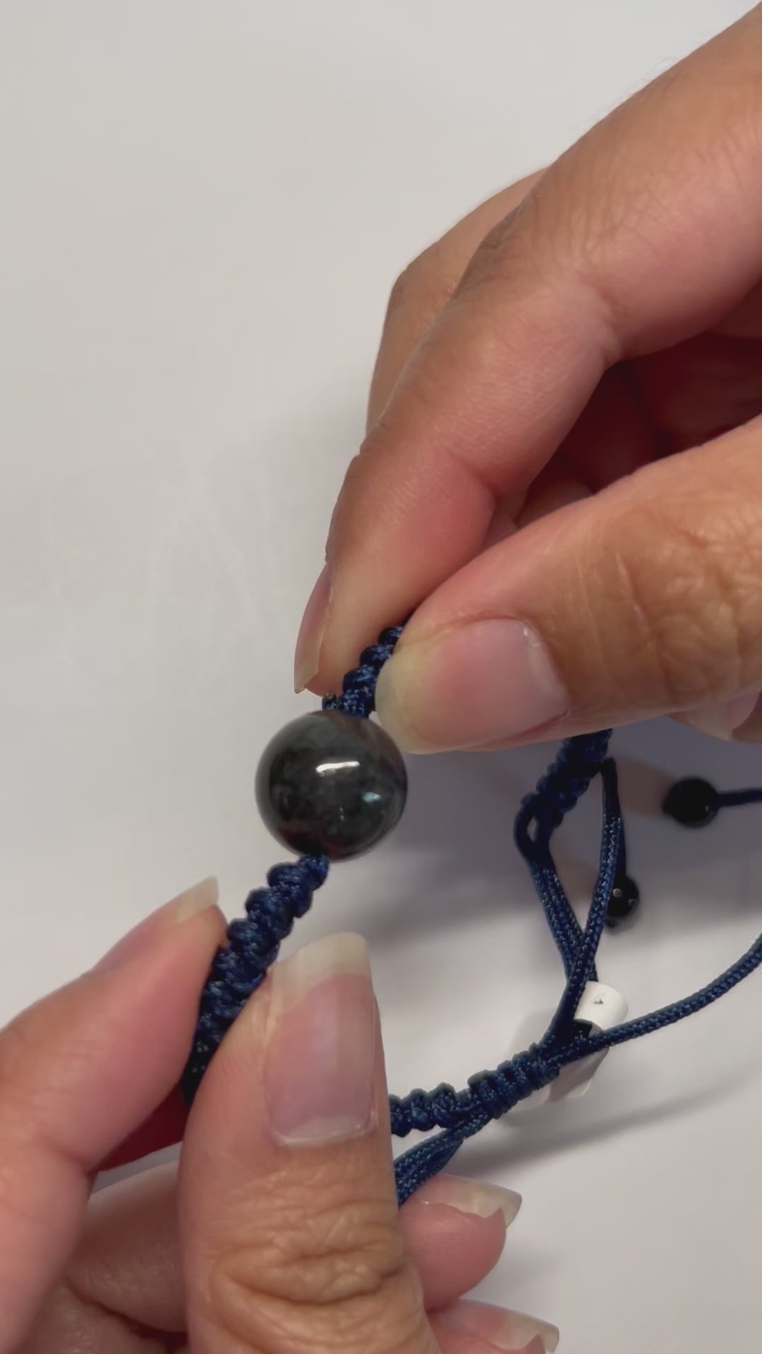 Grade A Natural Black Bead Burmese jadeite bracelet braided with Blue rope