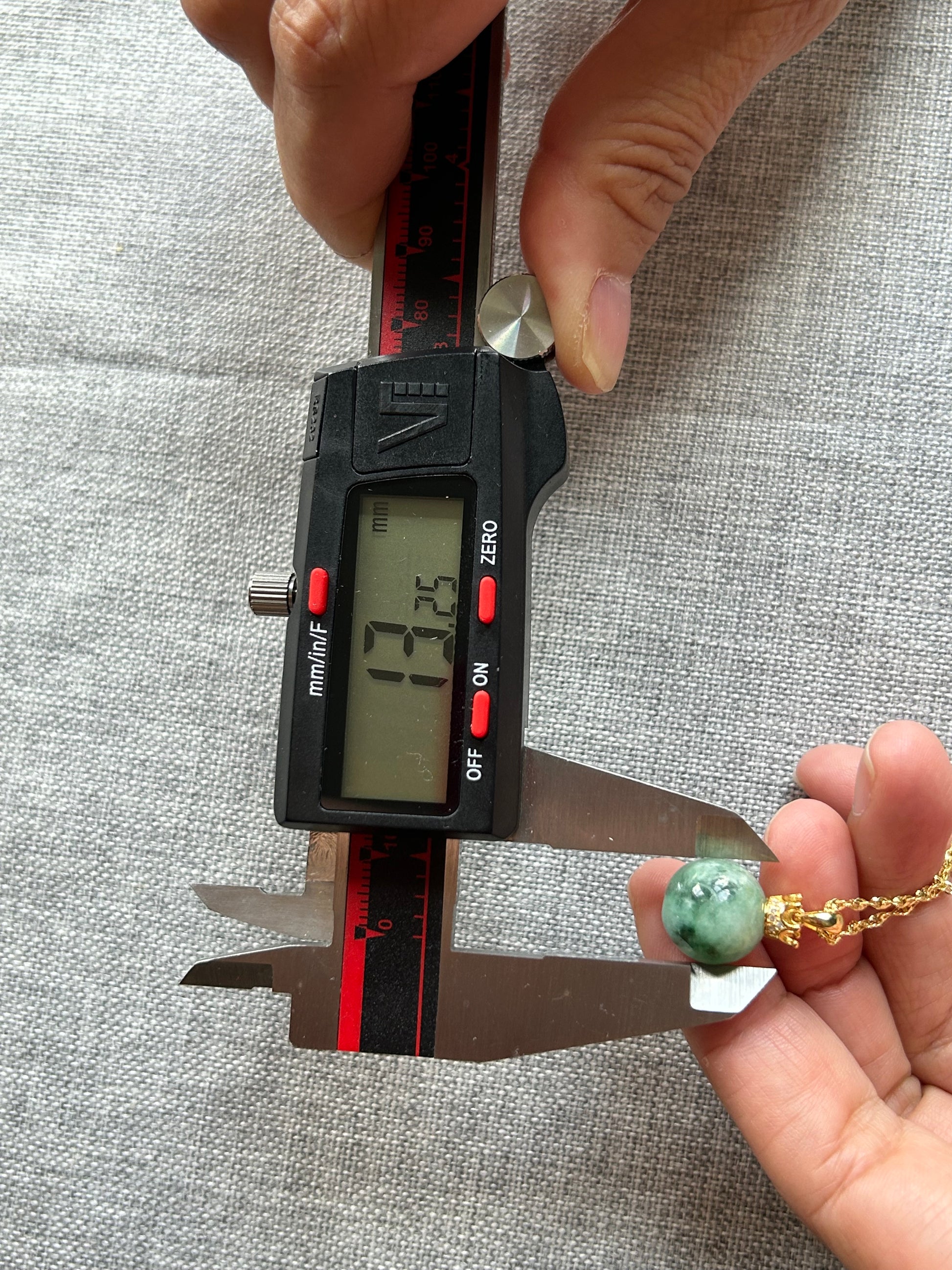 Stunning Burmese green bead pendant. This is a wonderful addition to anyone’s jewelry collection. It has a lot of character. the diameter of the bead is 13.25mm.