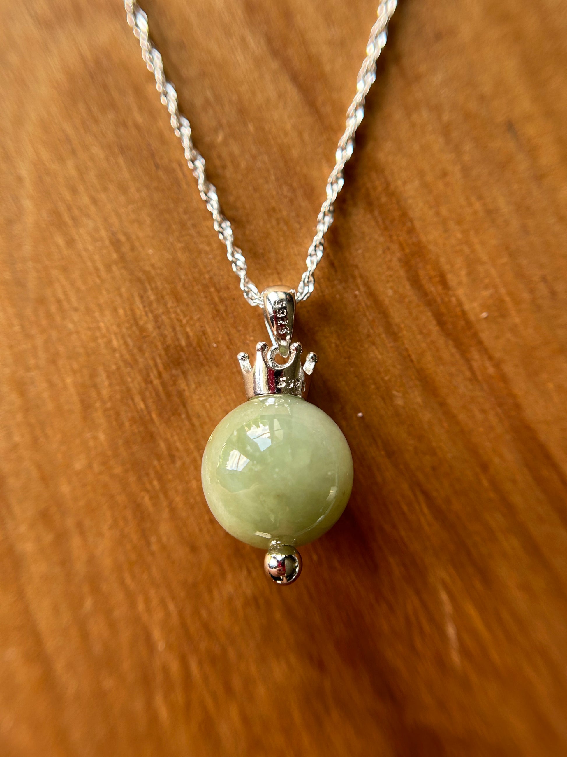 Grade A Natural Burma green bead Jadeite with Silver Crown necklace