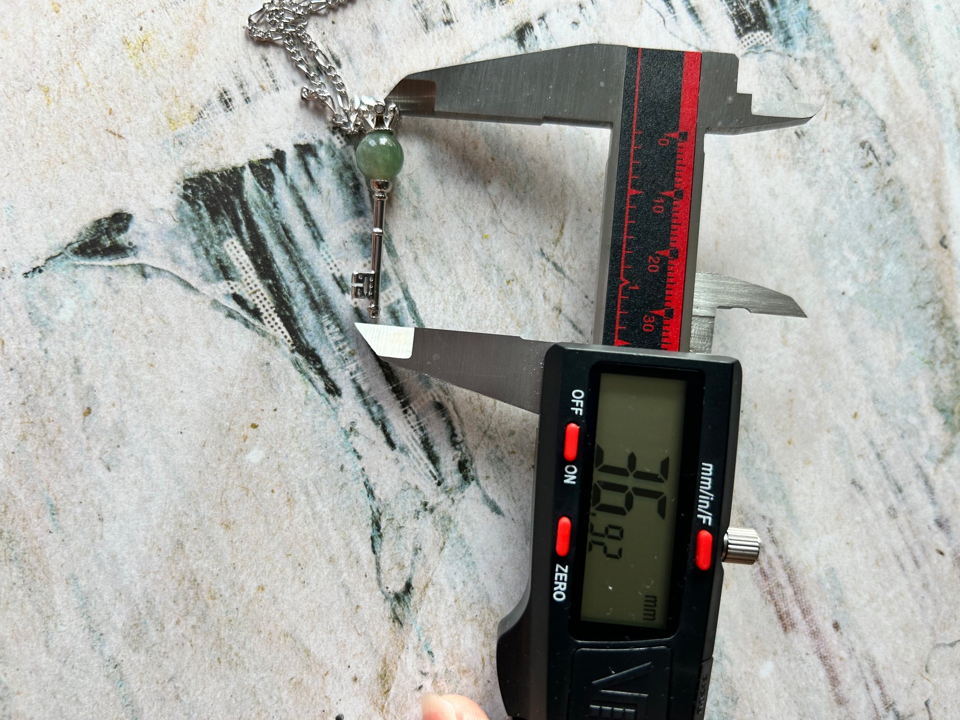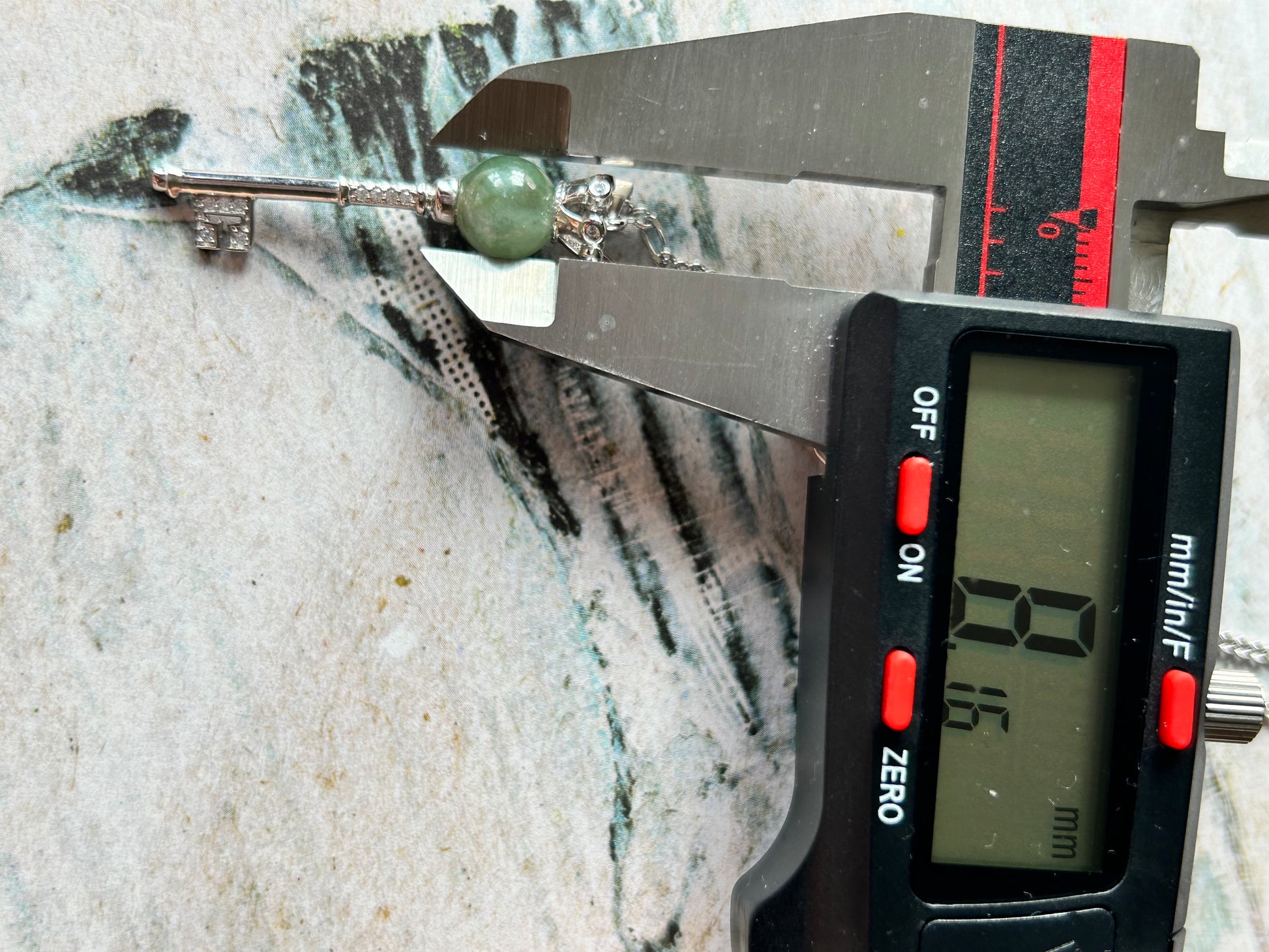 Stunning key shaped pendant. This is a wonderful addition to anyone’s jewelry collection. It has a lot of character. the red tone and the fine texture of the jadeite would let shine through.
