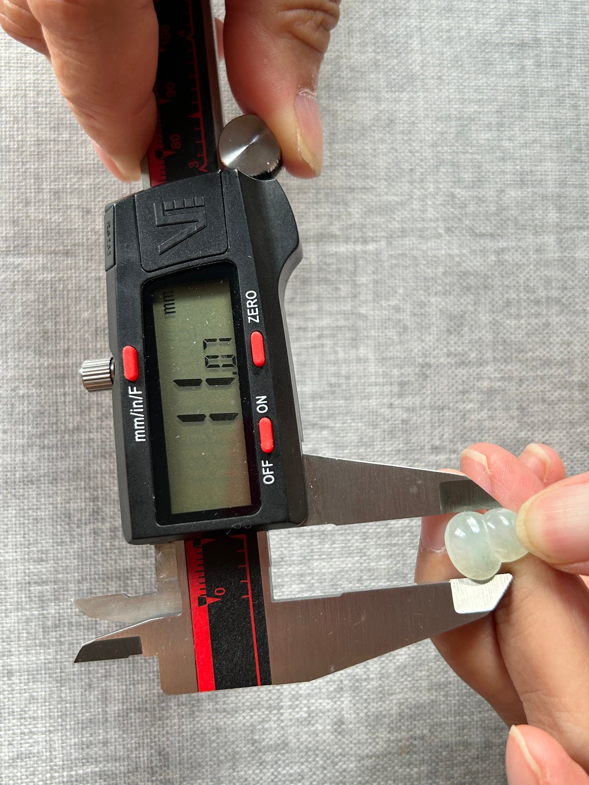 One of a kind Wu Lou, one side is hand carved and polished . It is a beautiful icy green color and is translucent. The bail is sterling silver. The pendant measures 15.43mm x 11.07mm.