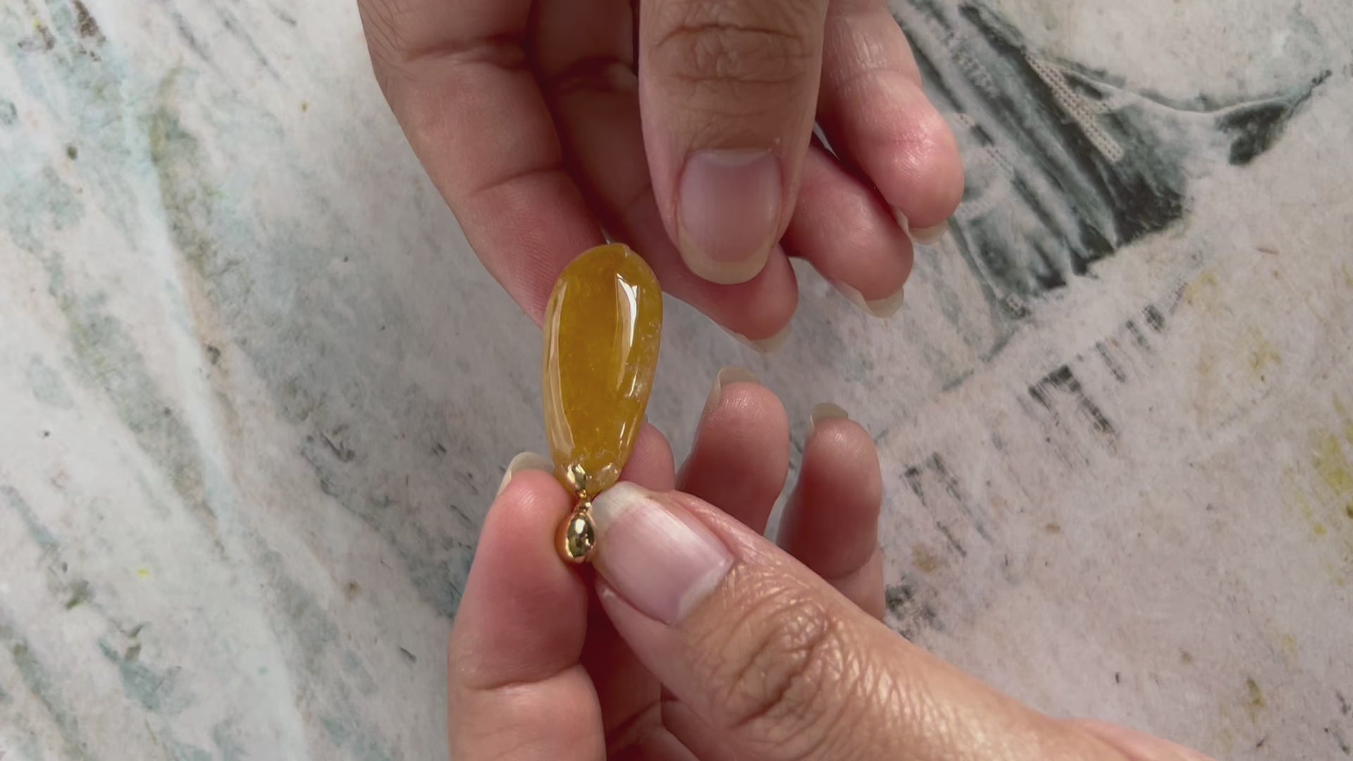 Grade A Natural Burma Icy Honey Yellow Jadeite Fok Gourd pendant with 18K Yellow Gold bail Pendant