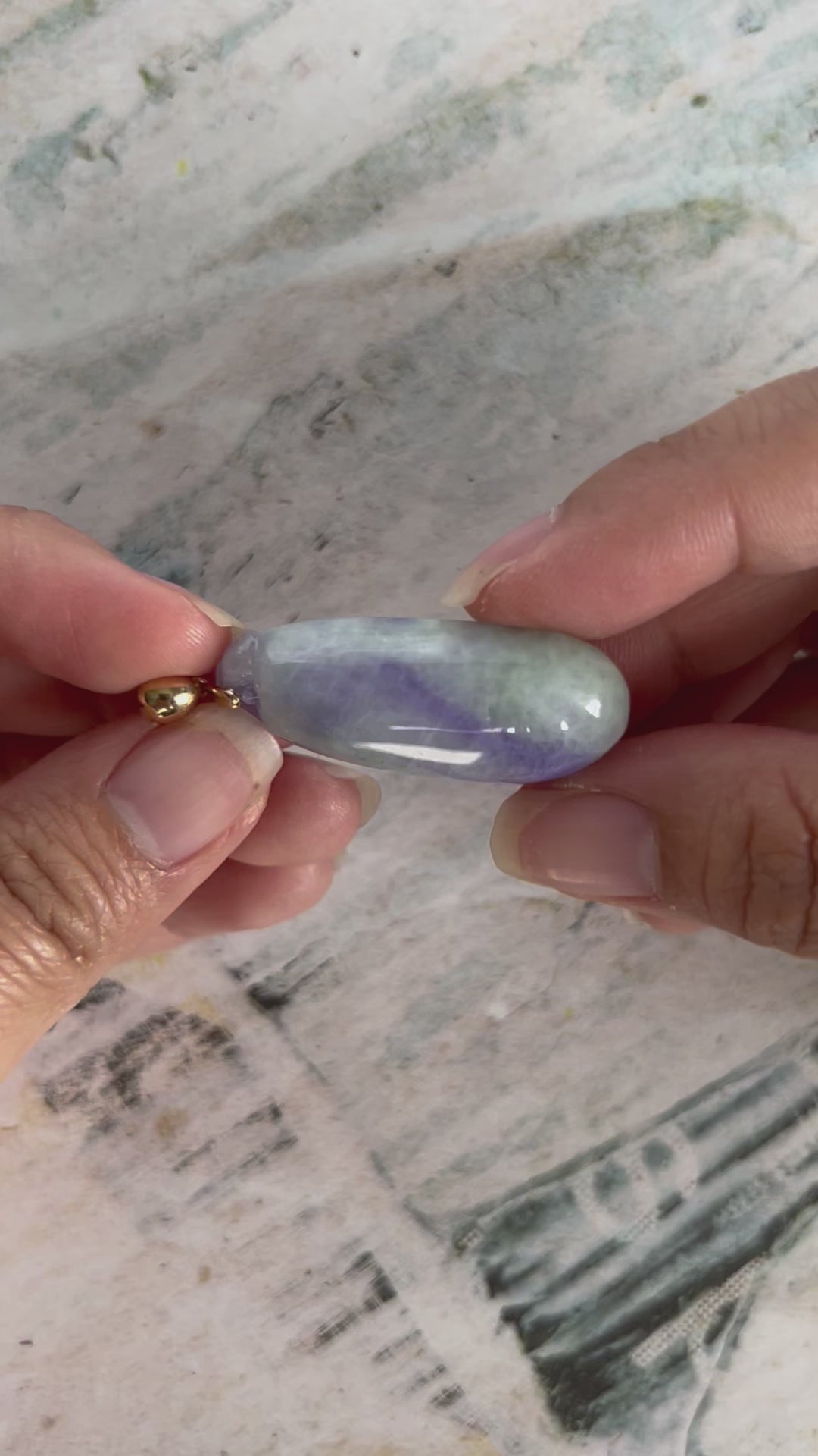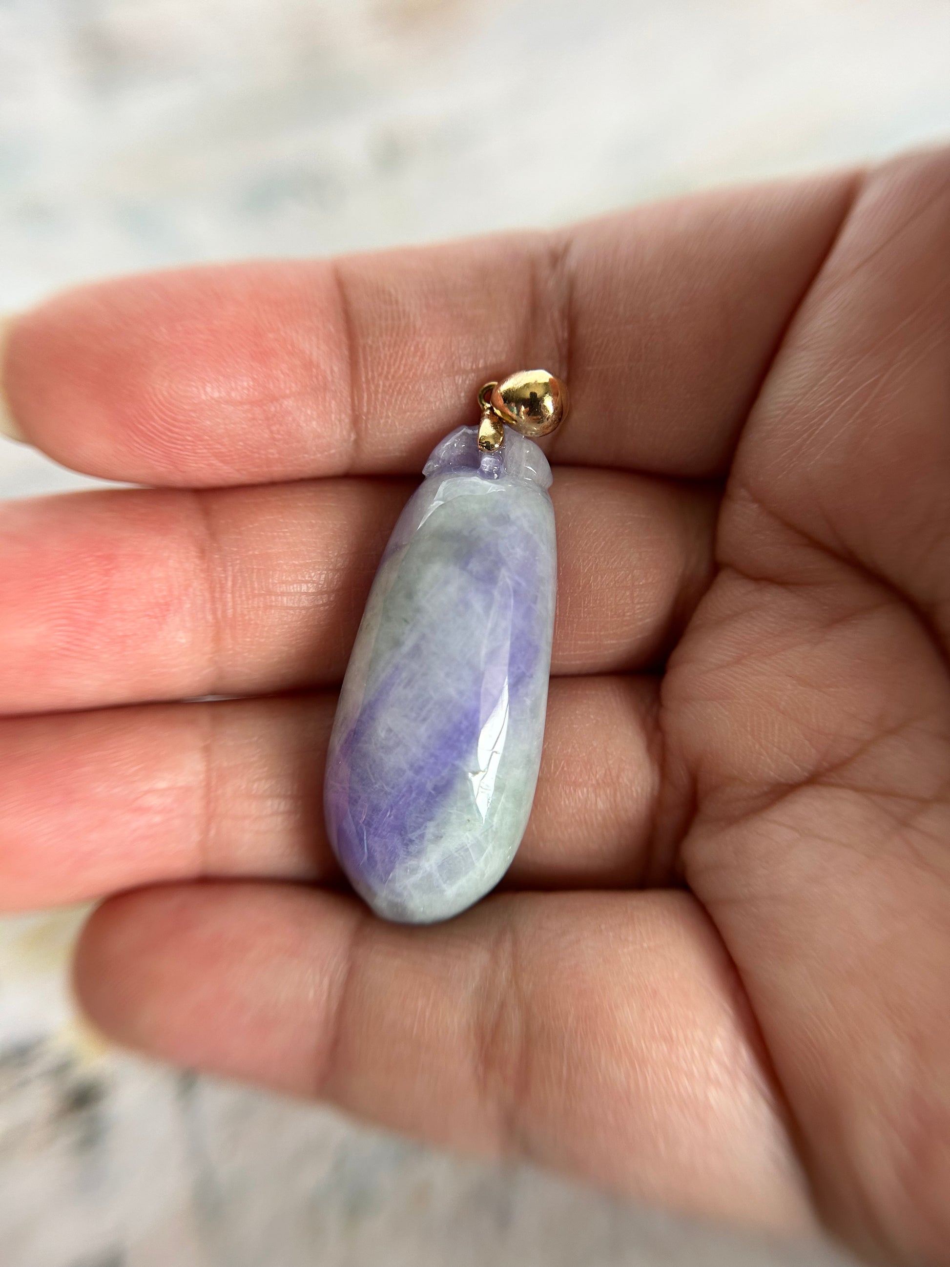 Grade A Natural Burma Icy Lavender, Green Jadeite Fok Gurd pendant with 18K Yellow Gold bail Pendant