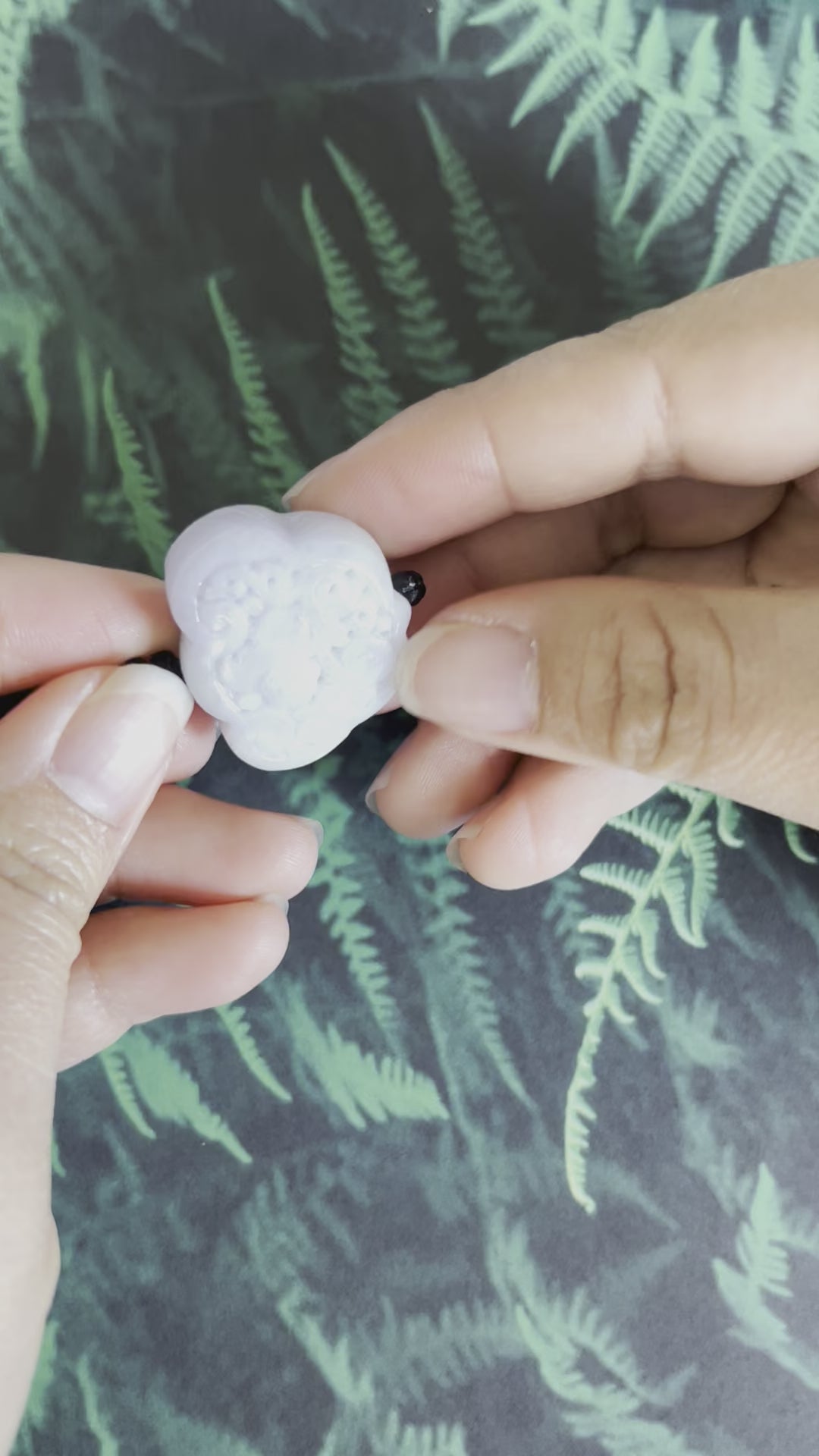This pieces is on a black lanyard but can be modify to be on a bail. The Yuyi pendant measures 30.27mmx26.04mmx13.12mm