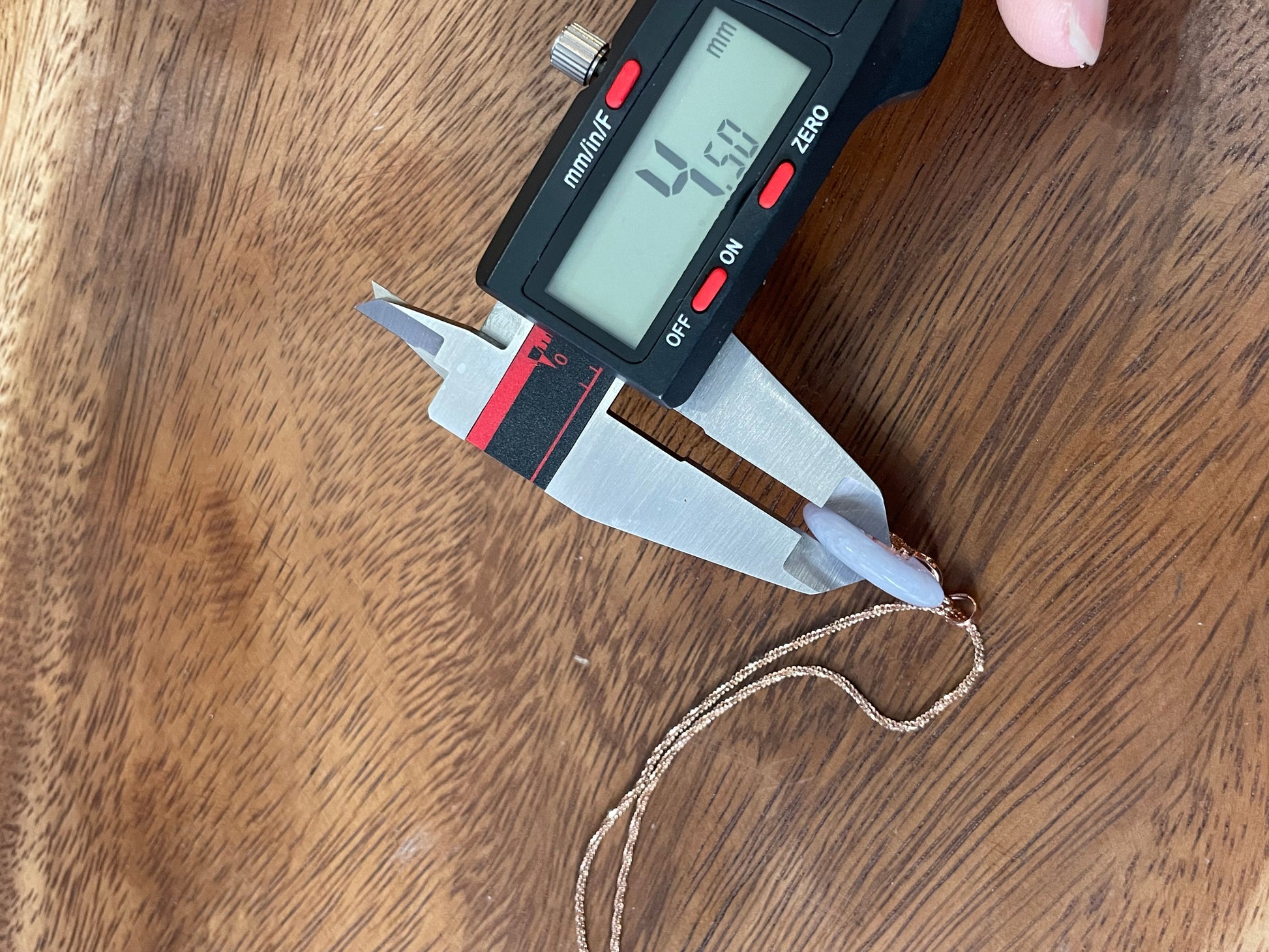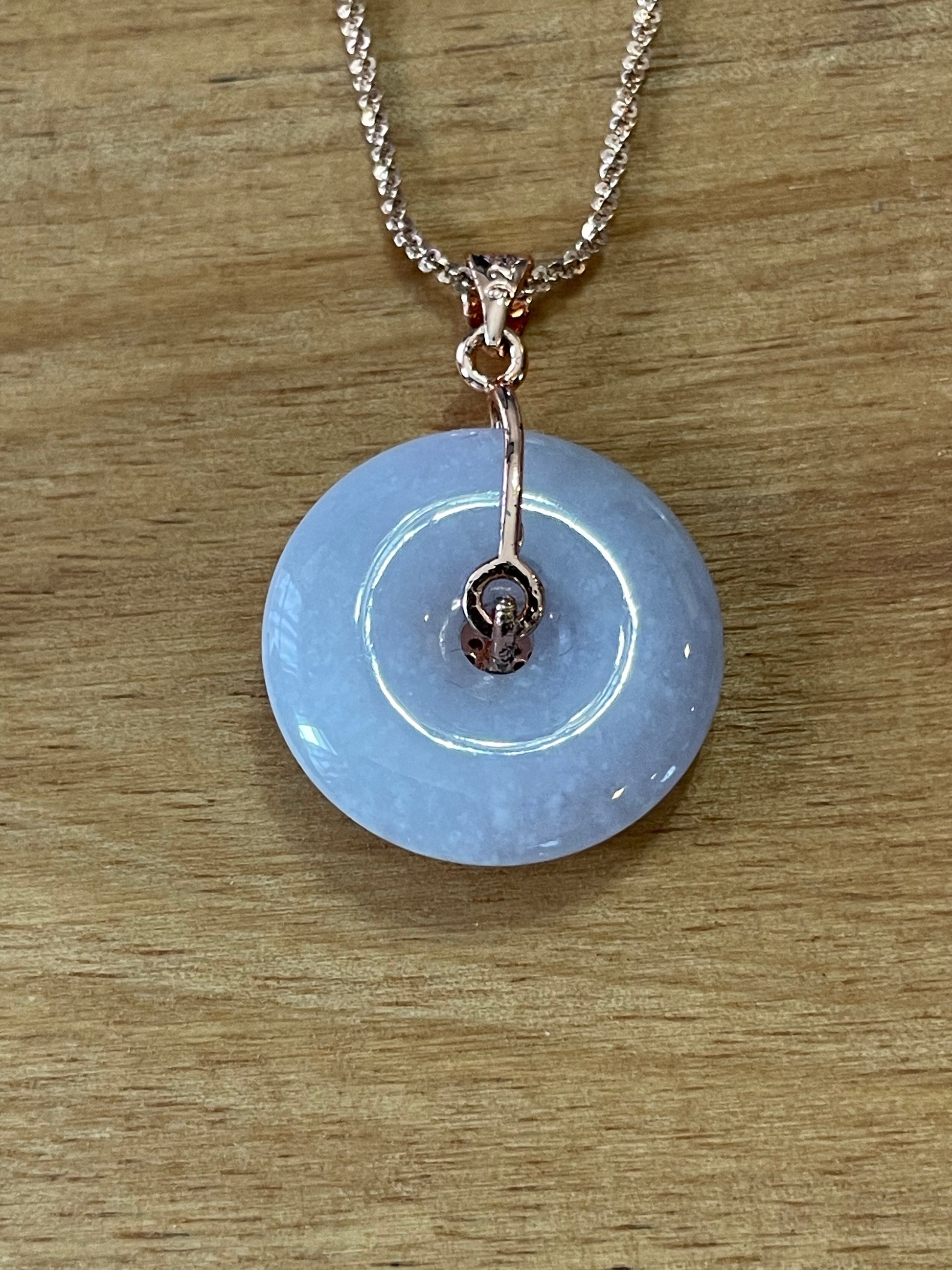 Grade A Natural Burma lavender Jadeite Pi Disc (peng on kou, donut) pendant with a sterling silver, rose gold plated four leaves clover bail