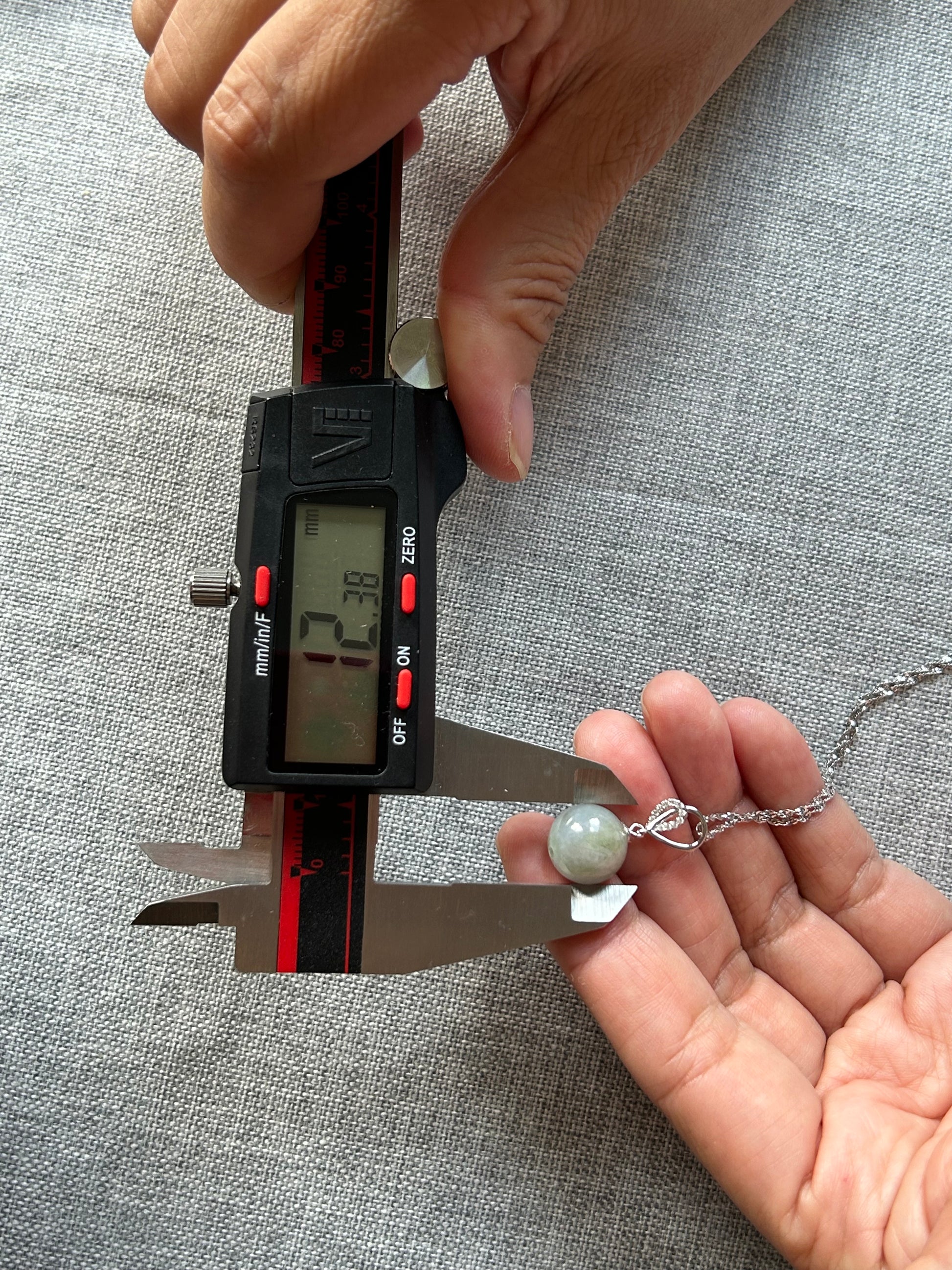 Stunning Burmese light green bead pendant. This is a wonderful addition to anyone’s jewelry collection. It has a lot of character. the diameter of the bead is 12.32mm.