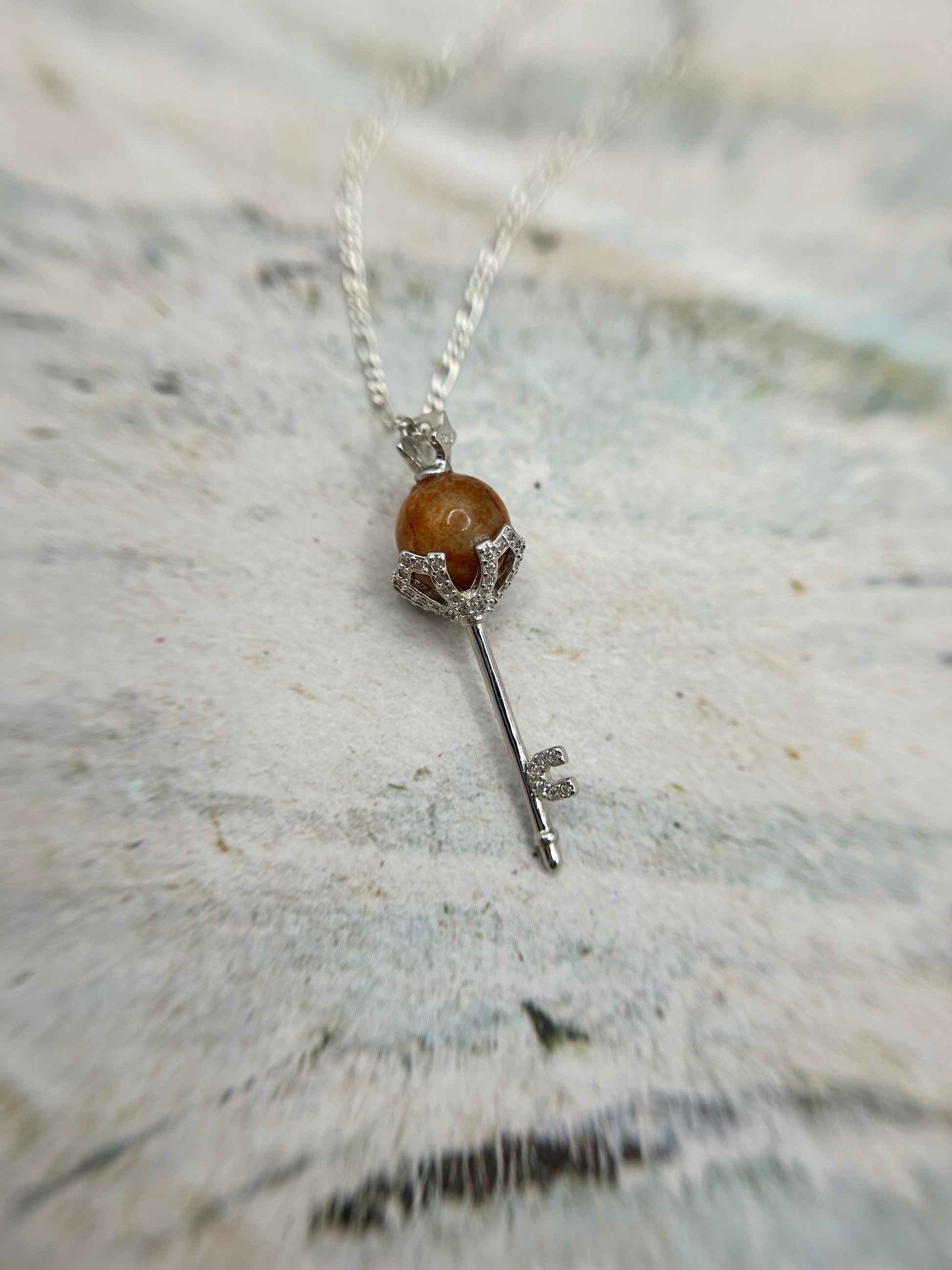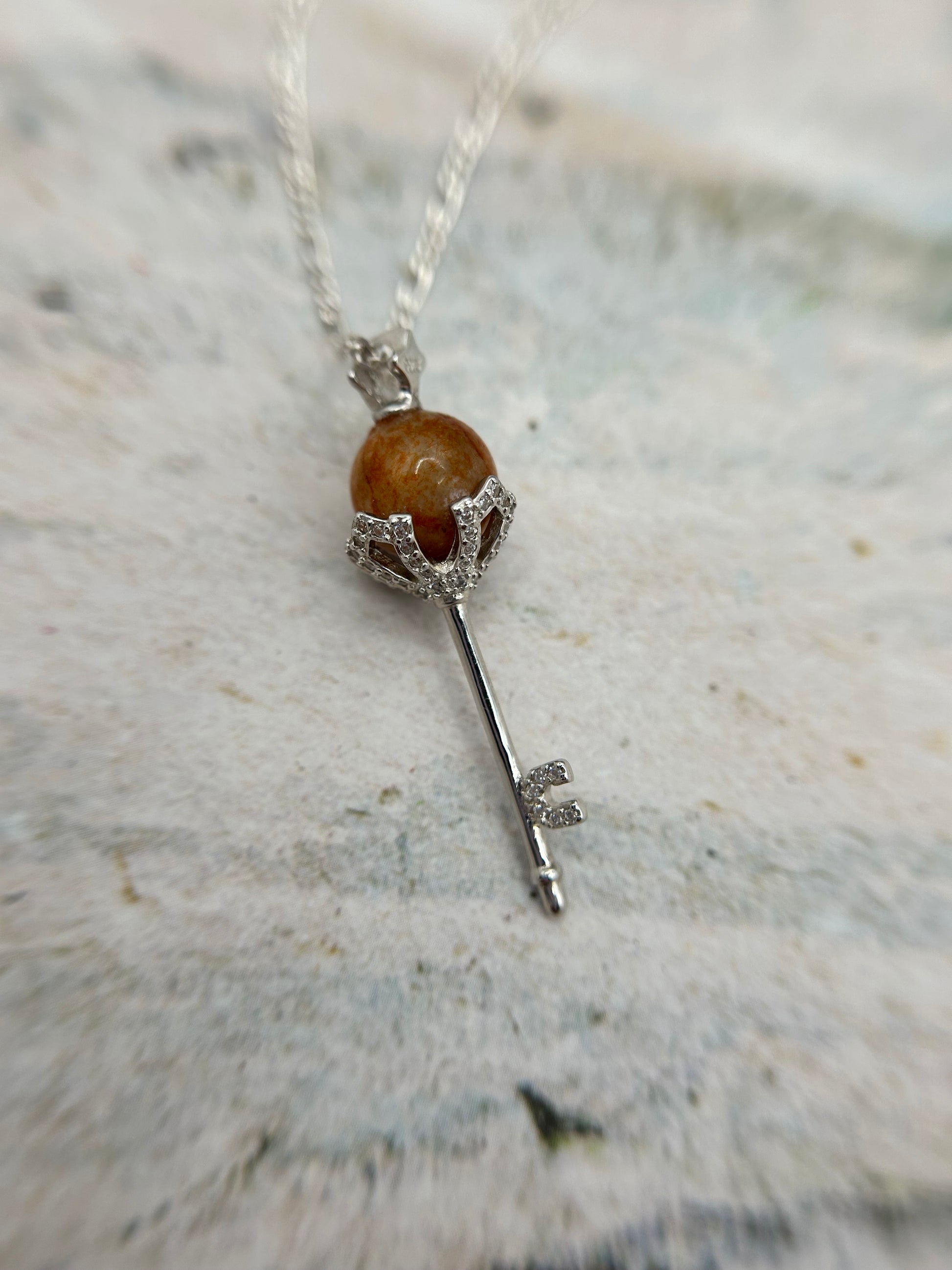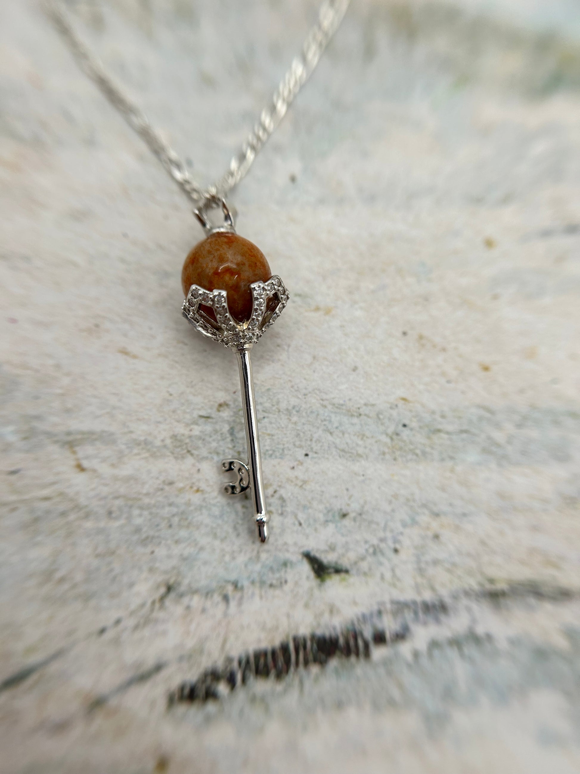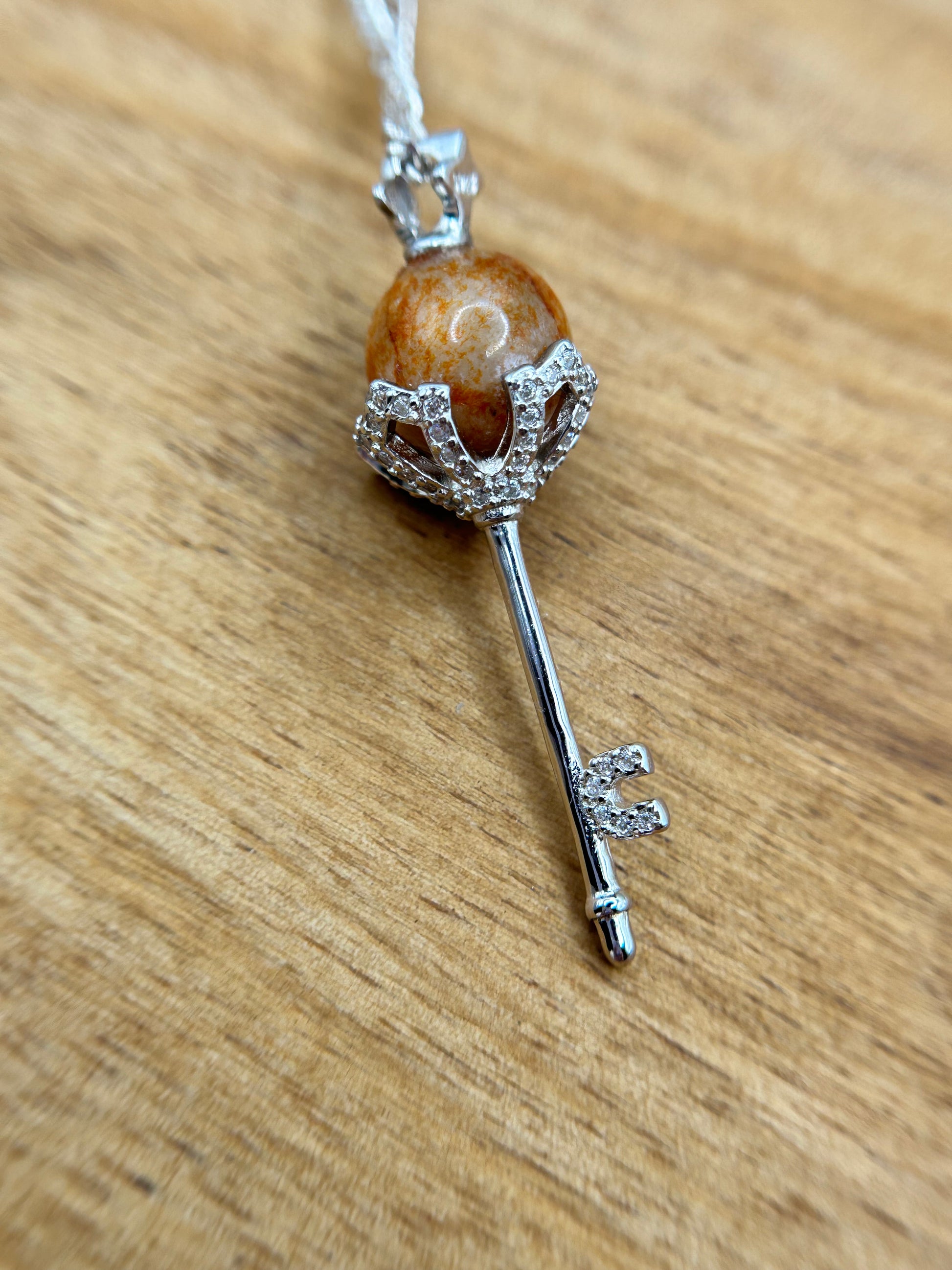 Stunning key shaped pendant. This is a wonderful addition to anyone’s jewelry collection. It has a lot of character. the red tone and the fine texture of the jadeite would let shine through.