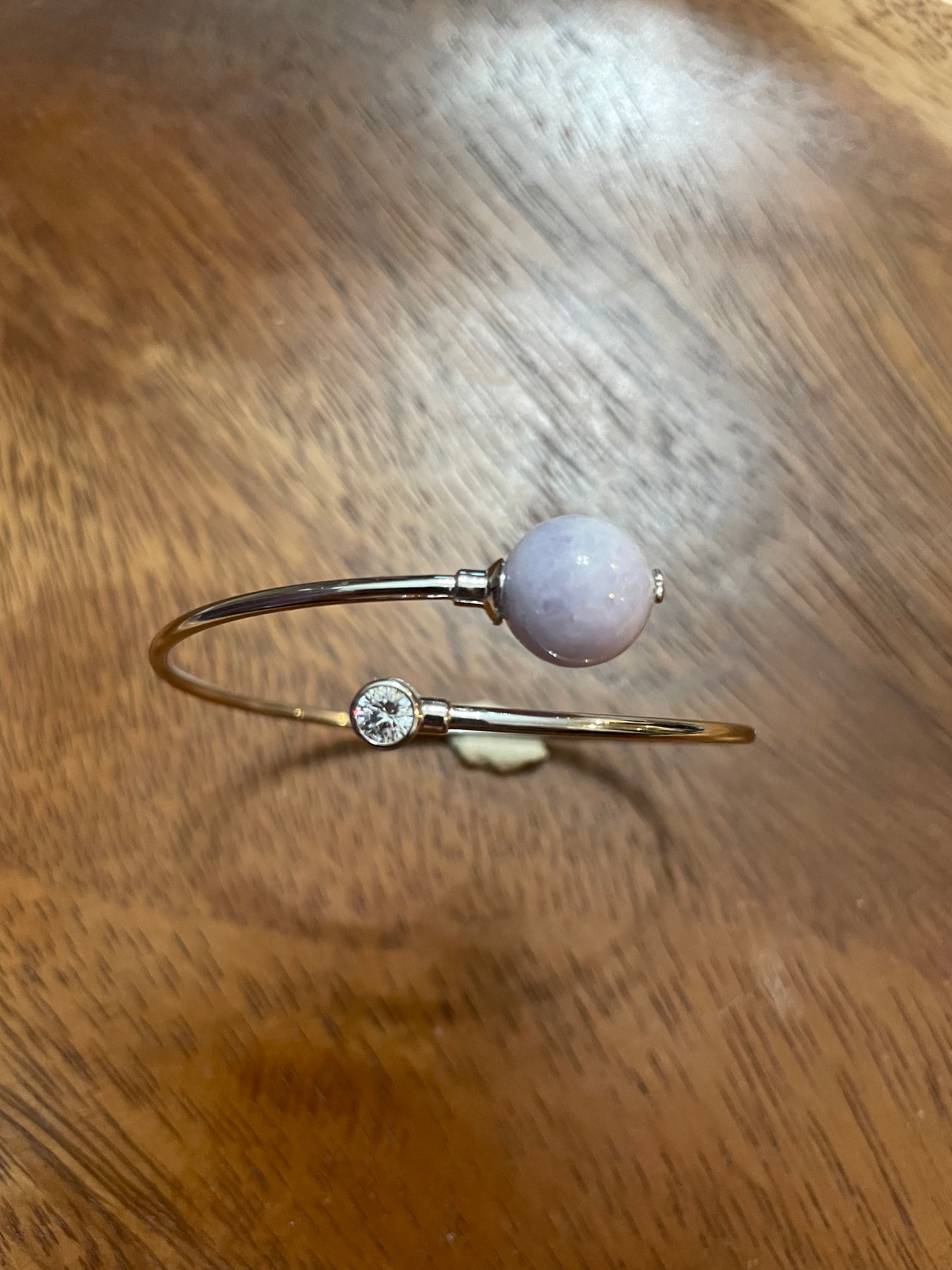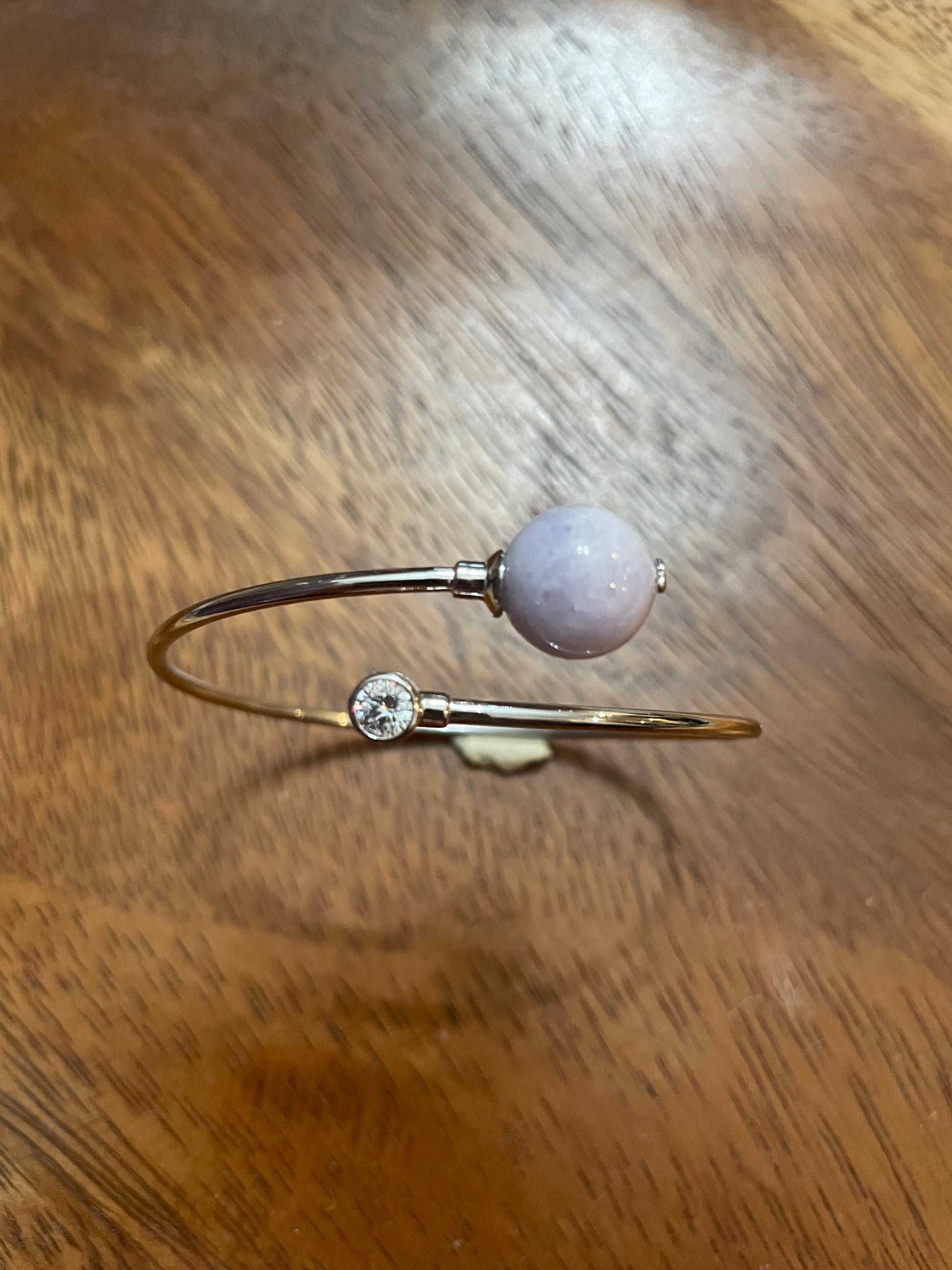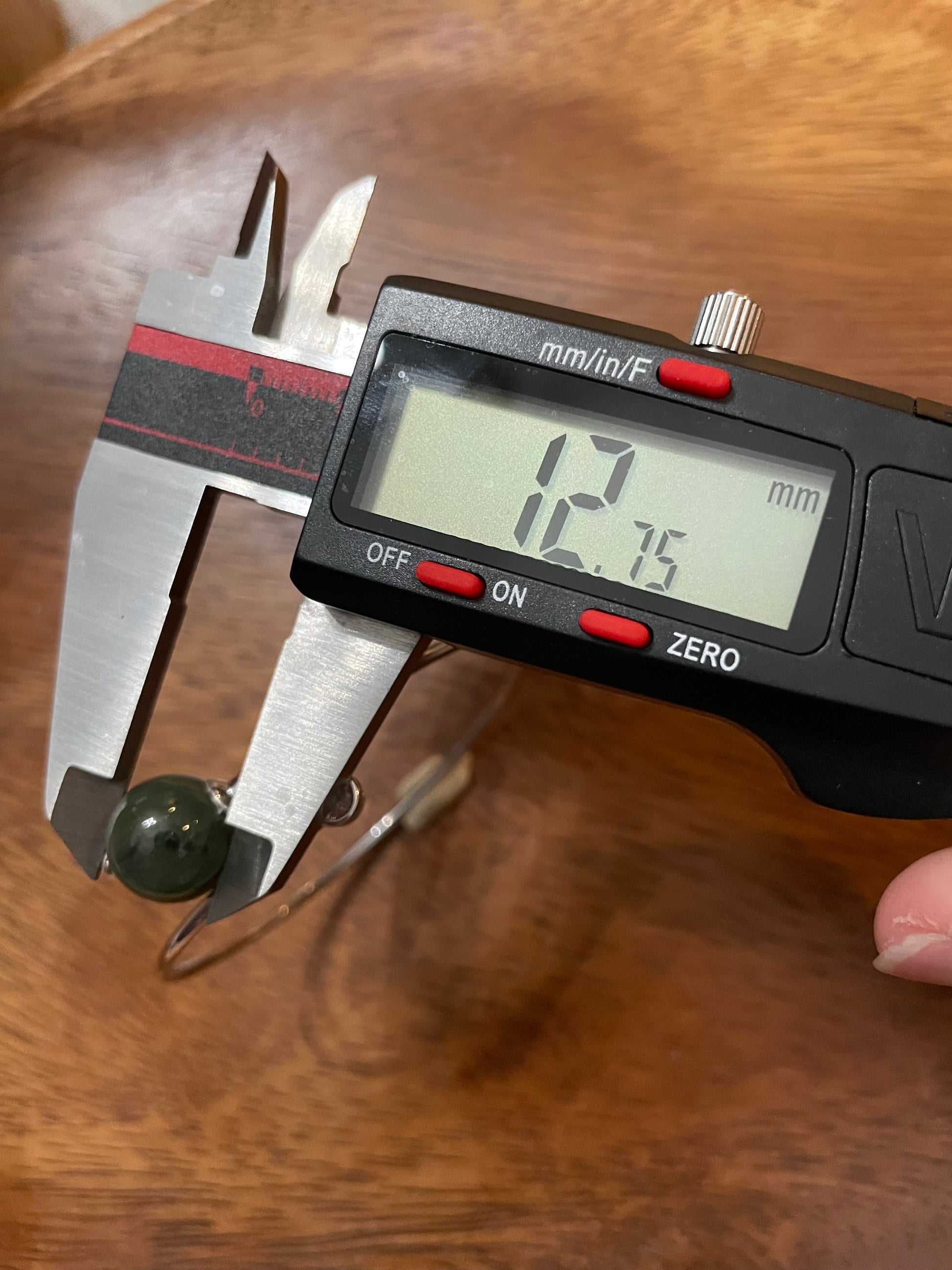 Dark Green bead silver bangle. This is a versátile piece that can be dress up or down and can be stacked with other bracelets. The lavender jadeite bead size is 12.75 mm .