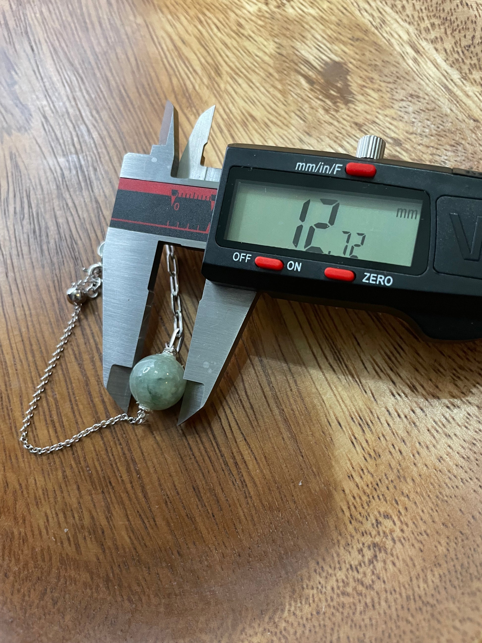 Green jadeite bead silver bracelet. This is a versátile piece that can be dress up or down and can be stacked with other bracelets. it has 1 green jadeite bead that the size is 12.72mm .