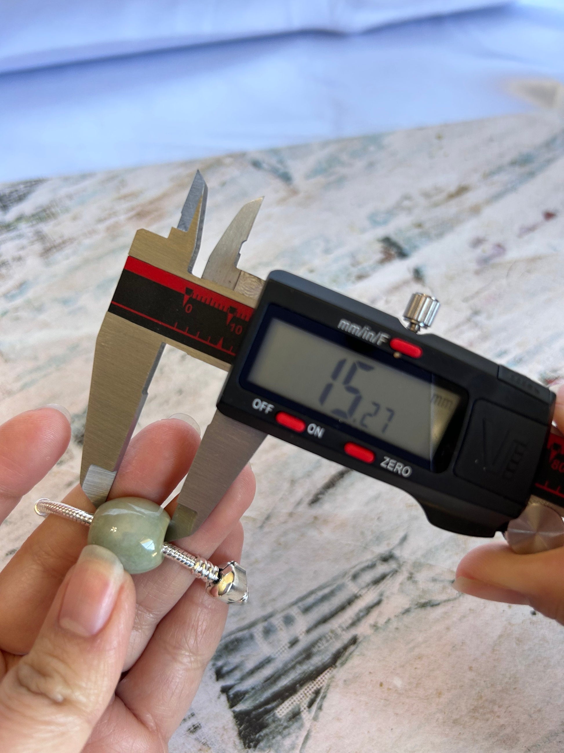 The Jadeite is green and yellow. This two tone jadeite is translucent and one of a kind. This can be easily dress up or down. You can also switch the Lu Lu Tong to any bracelet. The sterling silver bracelet is 21cm.