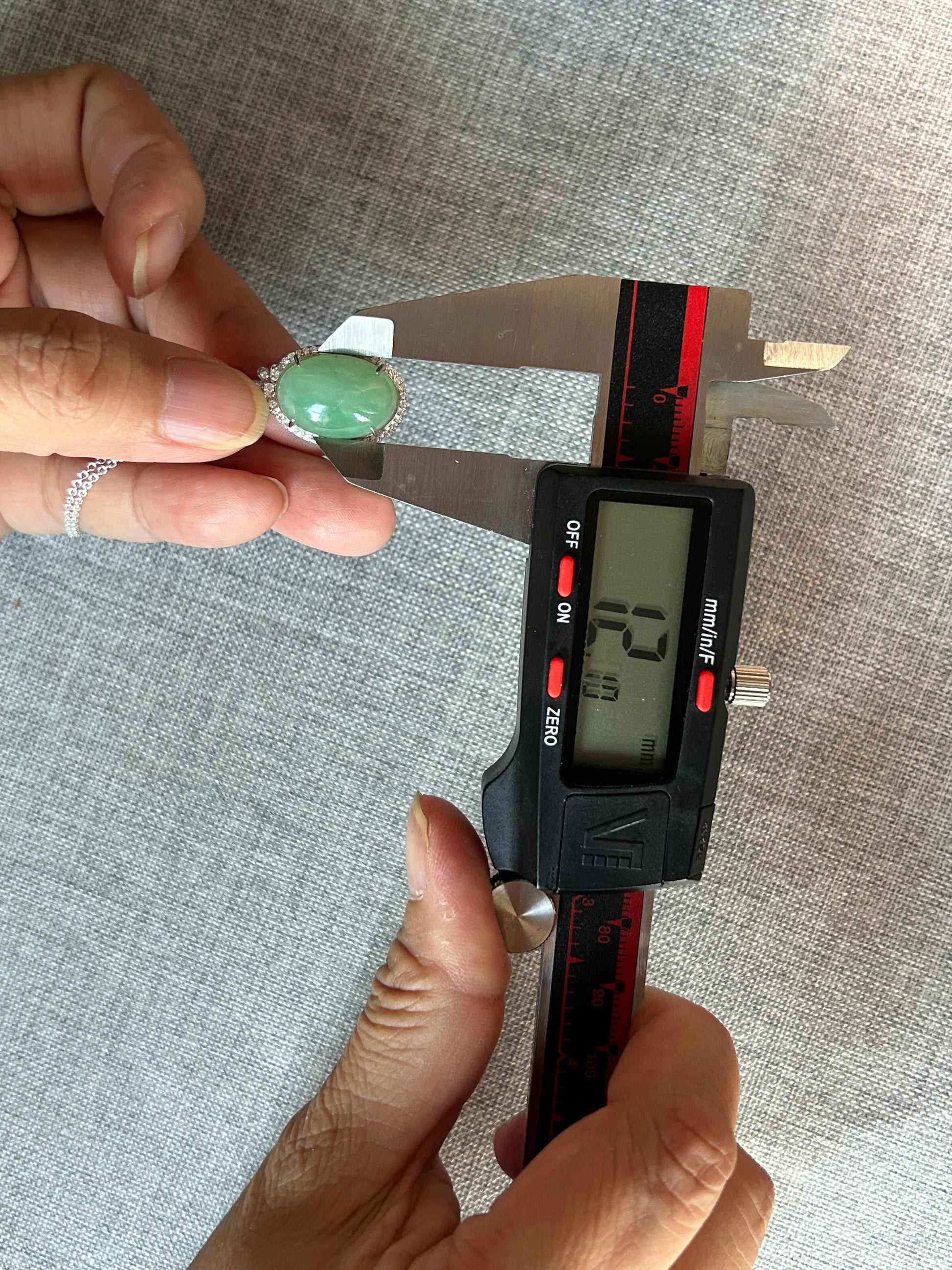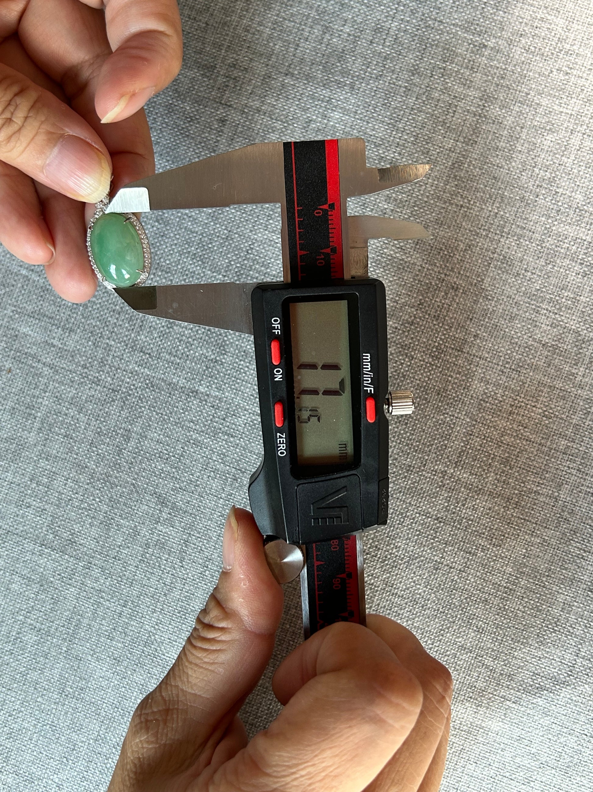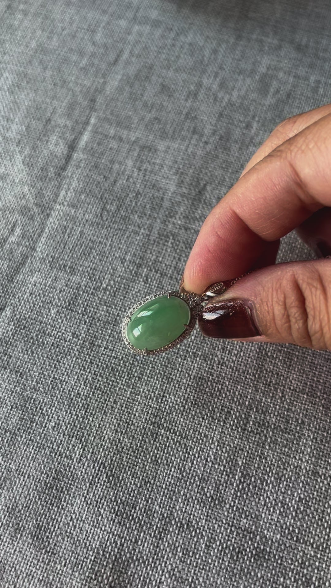 Grade A Natural Green Burma Jadeite Cabochon pendant With Cubic Zirconia Silver necklace