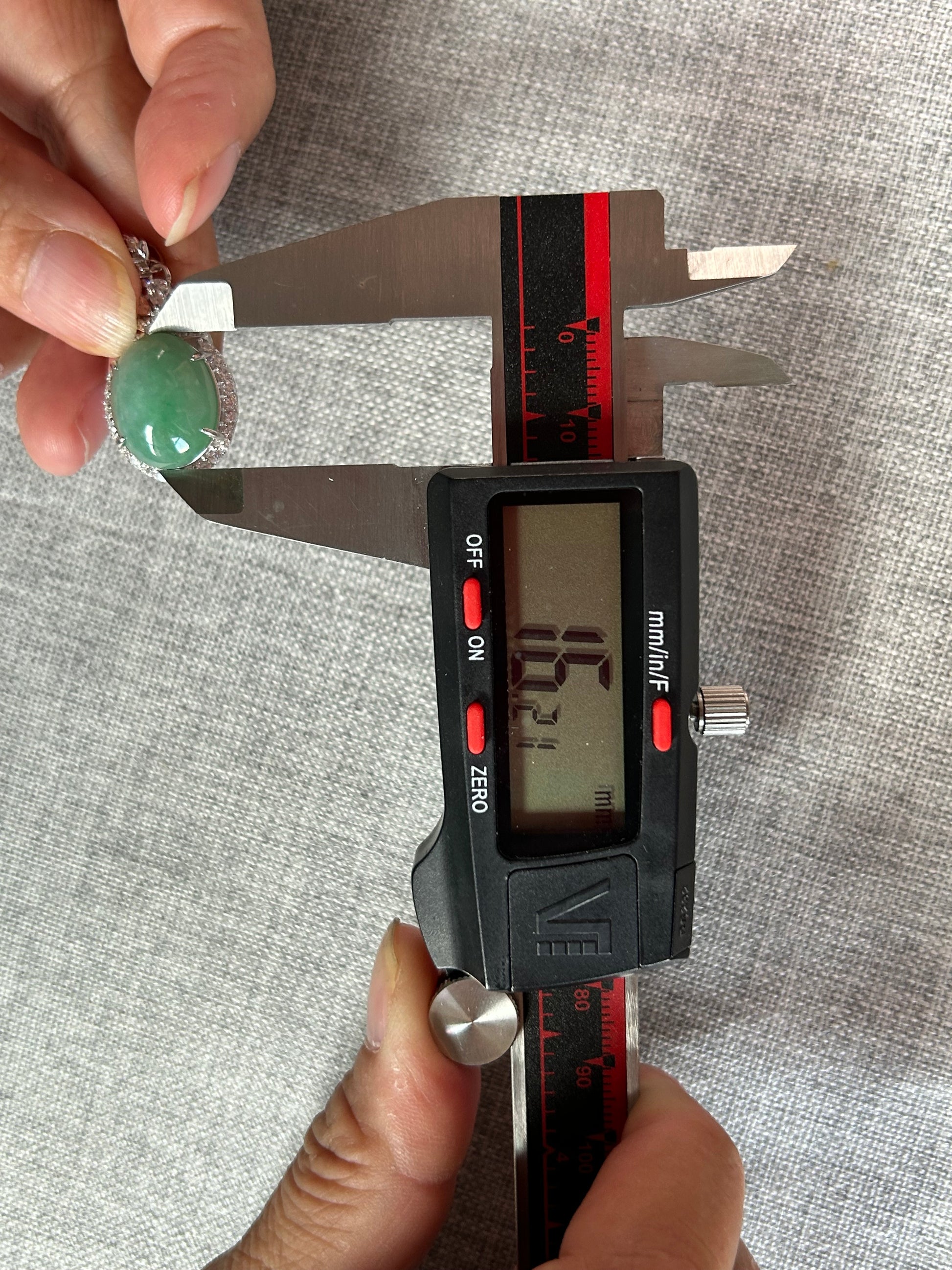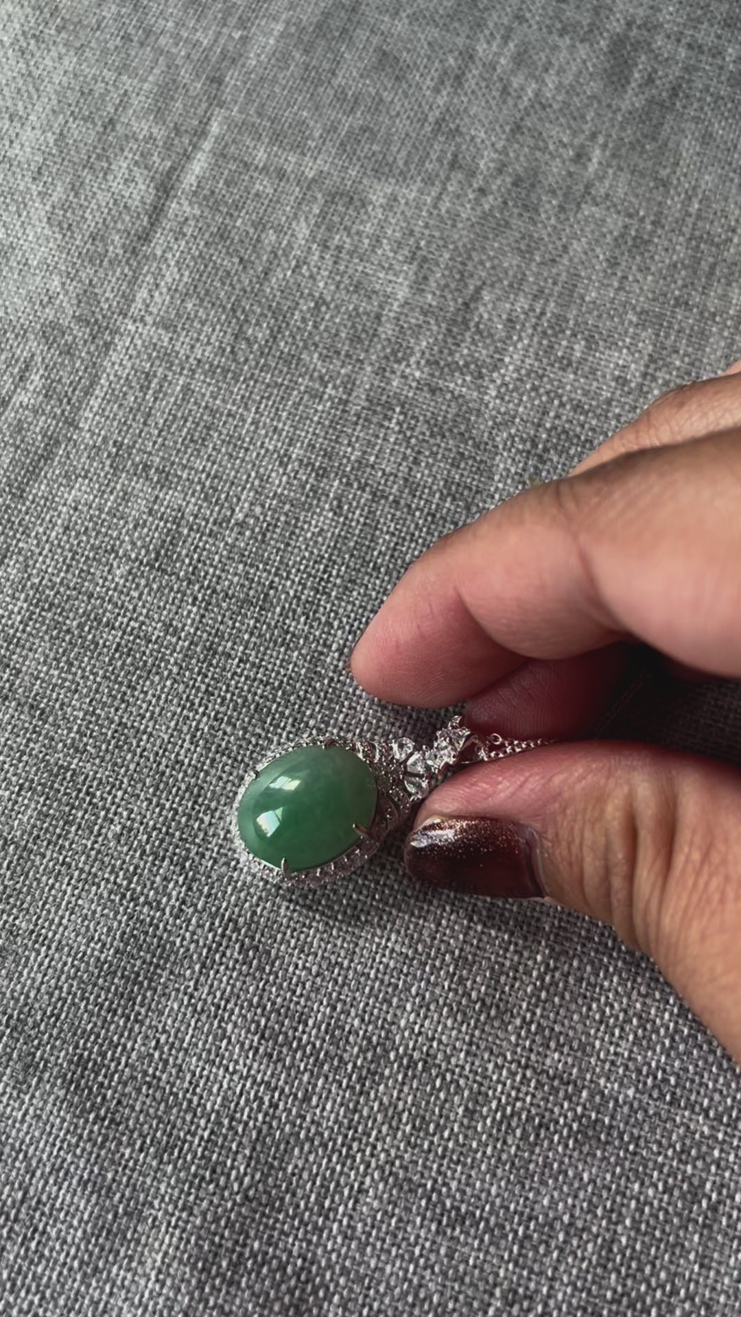 Grade A Natural Green Burma Jadeite Cabochon pendant With Cubic Zirconia Silver necklace