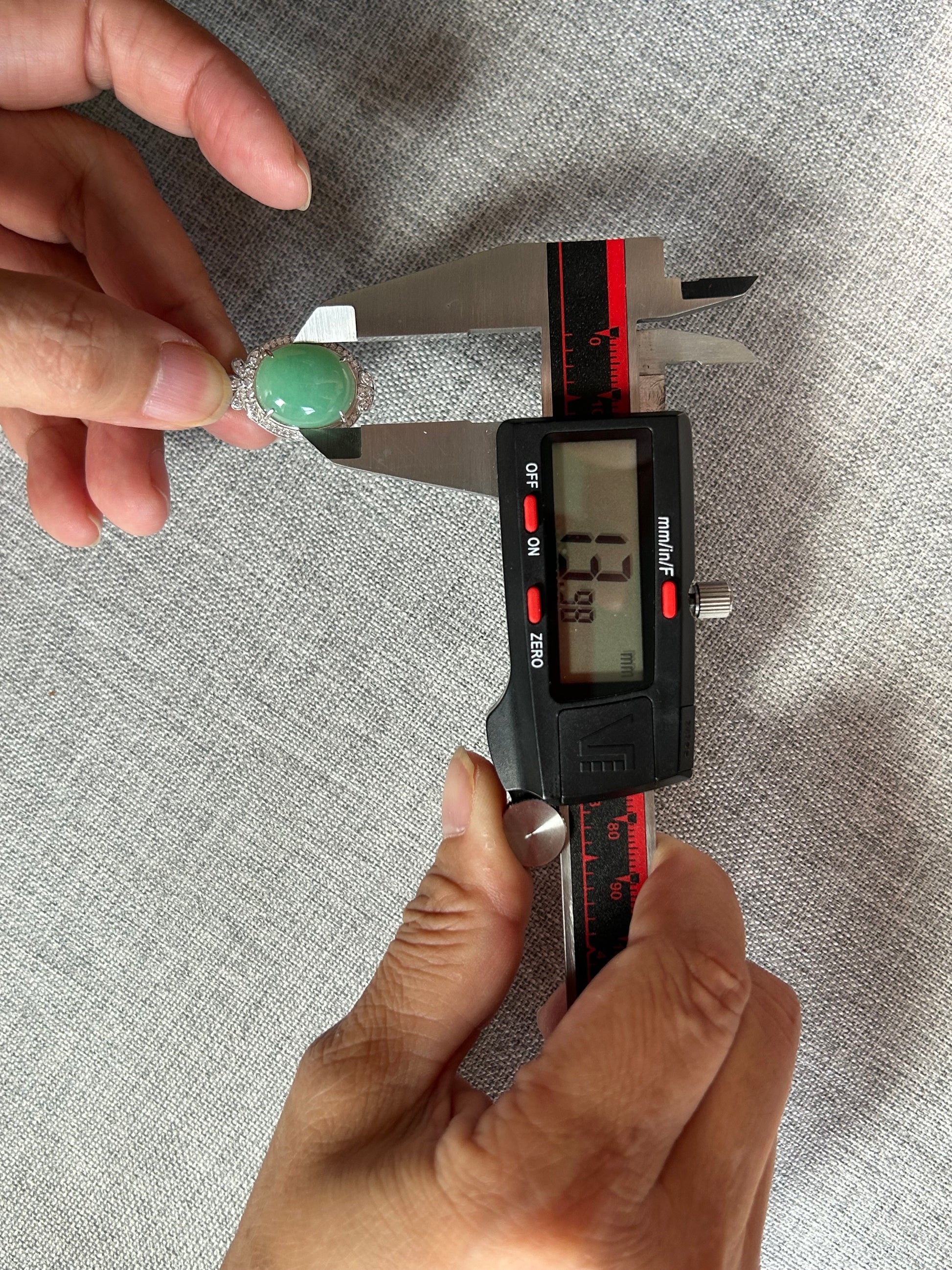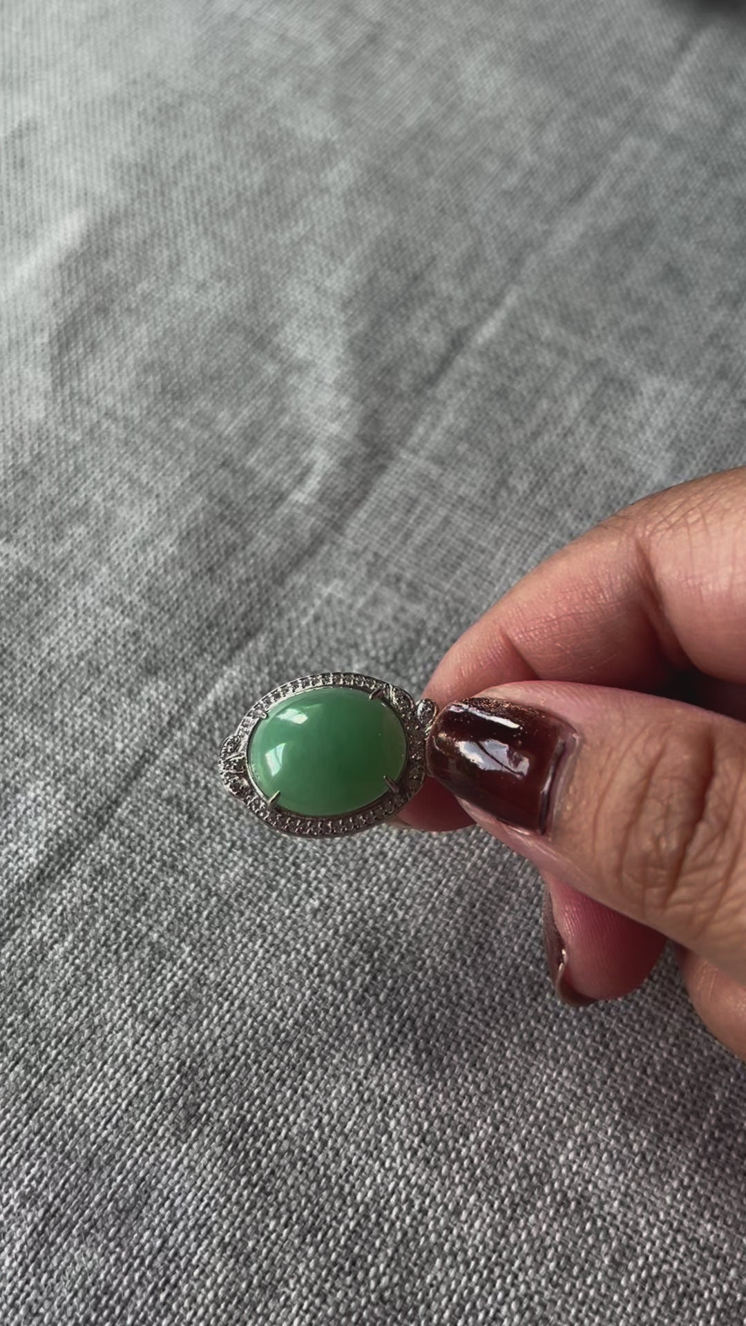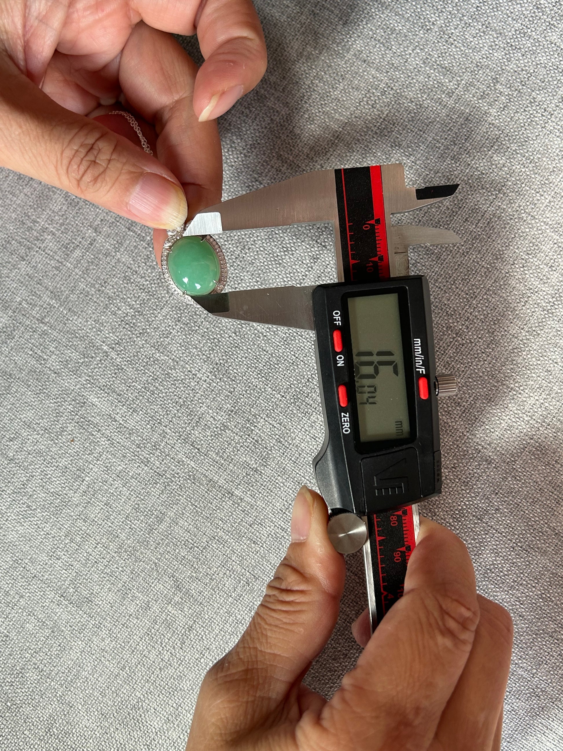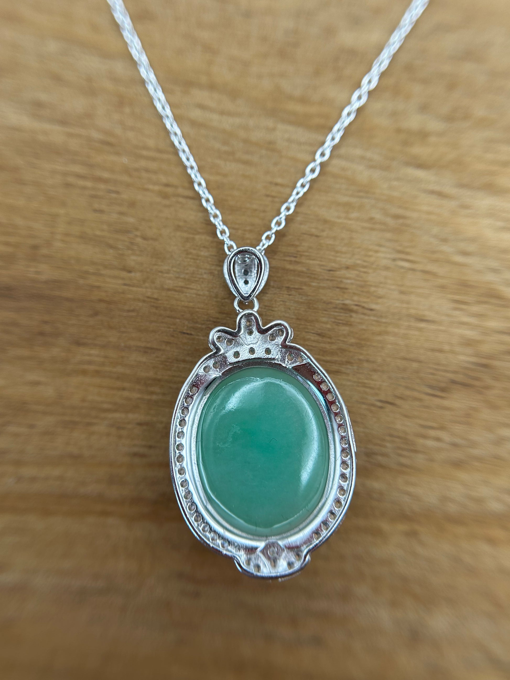 Grade A Natural Green Burma Jadeite Cabochon pendant With Cubic Zirconia Silver necklace