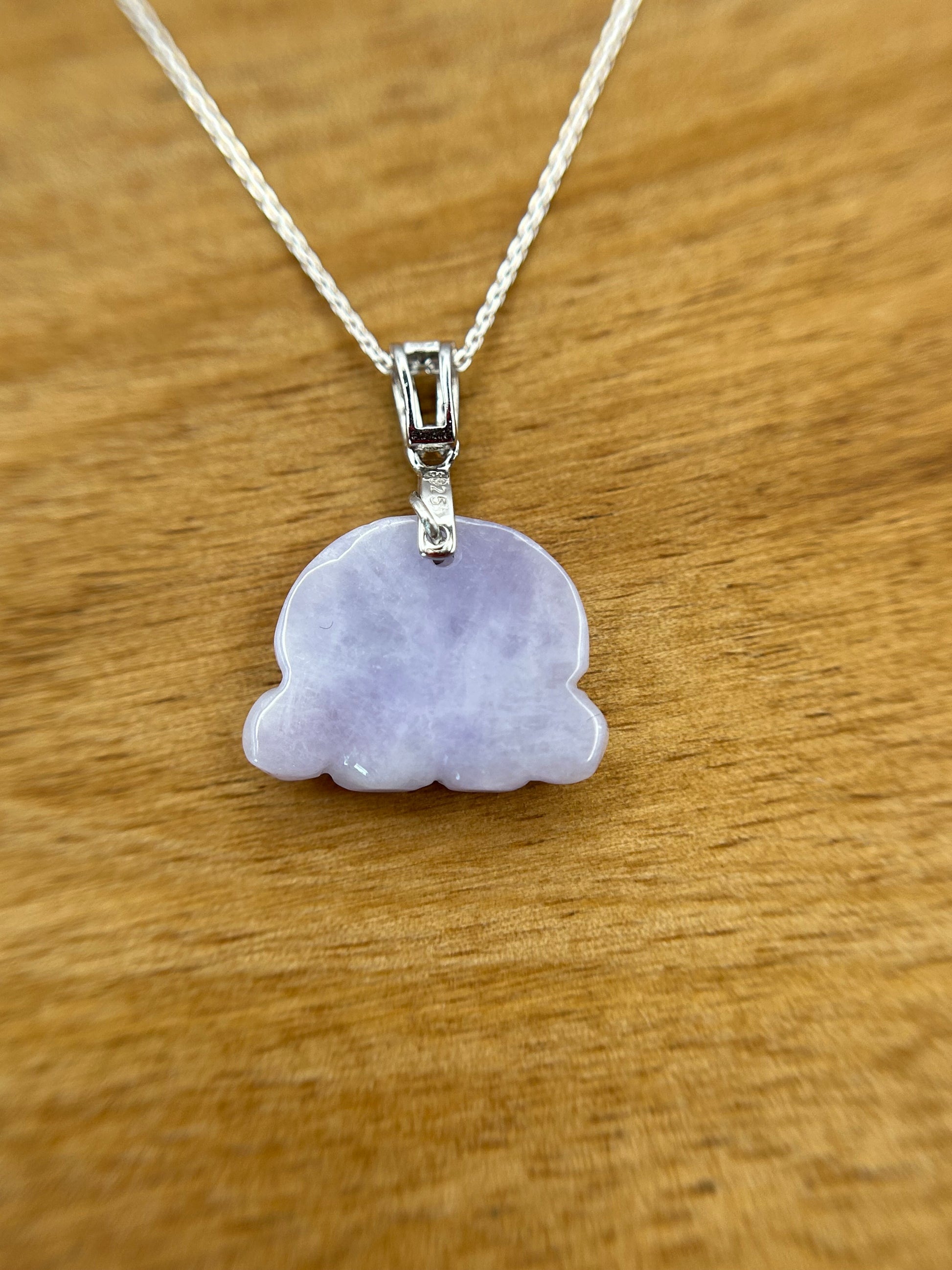 Genuine Type A jadeite. All natural non treated jade. This is a unique translucent piece of jadeite. The pawn is 14.2mm in height and 18.47mm width. It is a silver necklace.