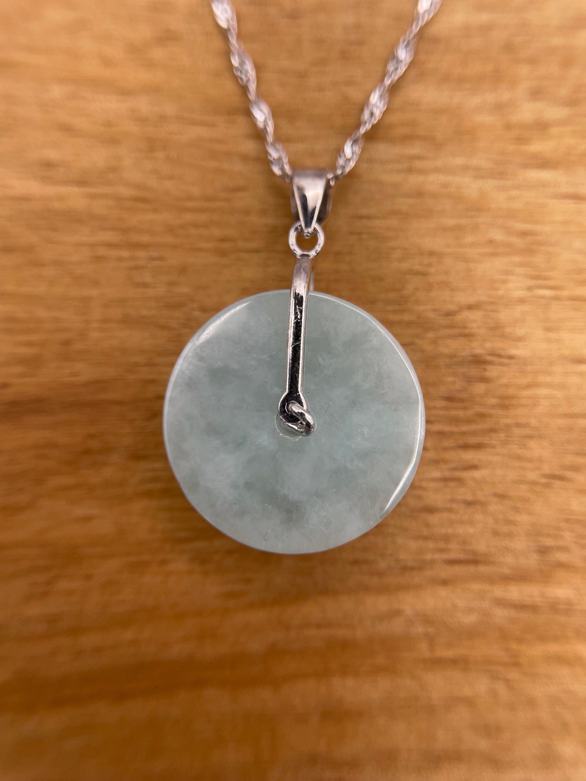 Grade A Natural green Jadeite Pi Disc pendant silver necklace