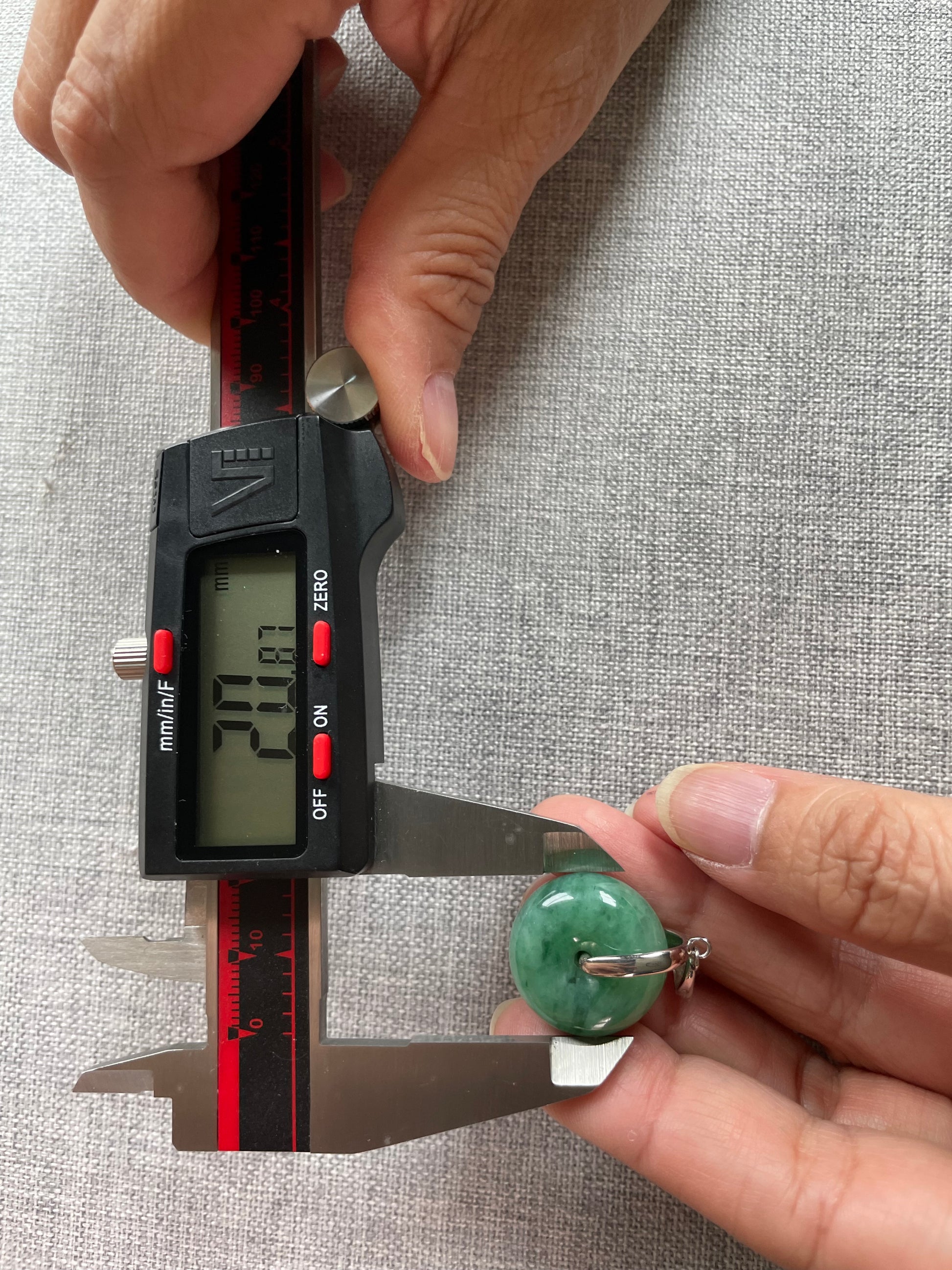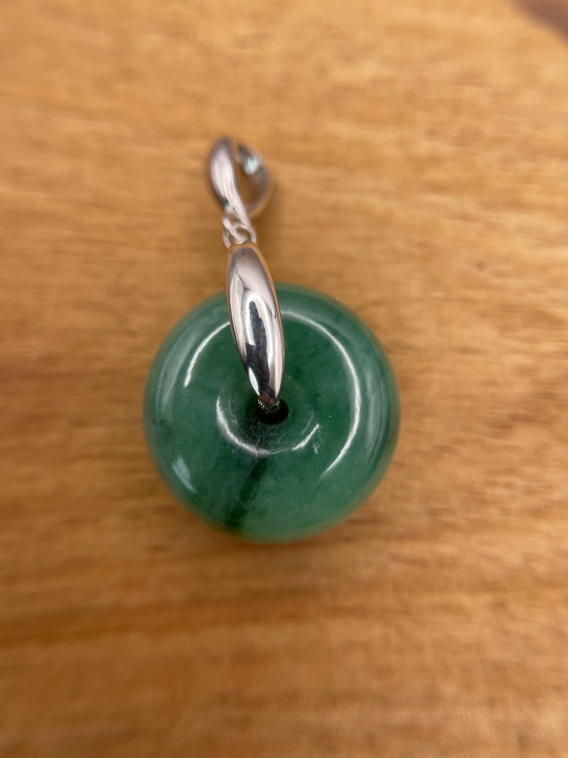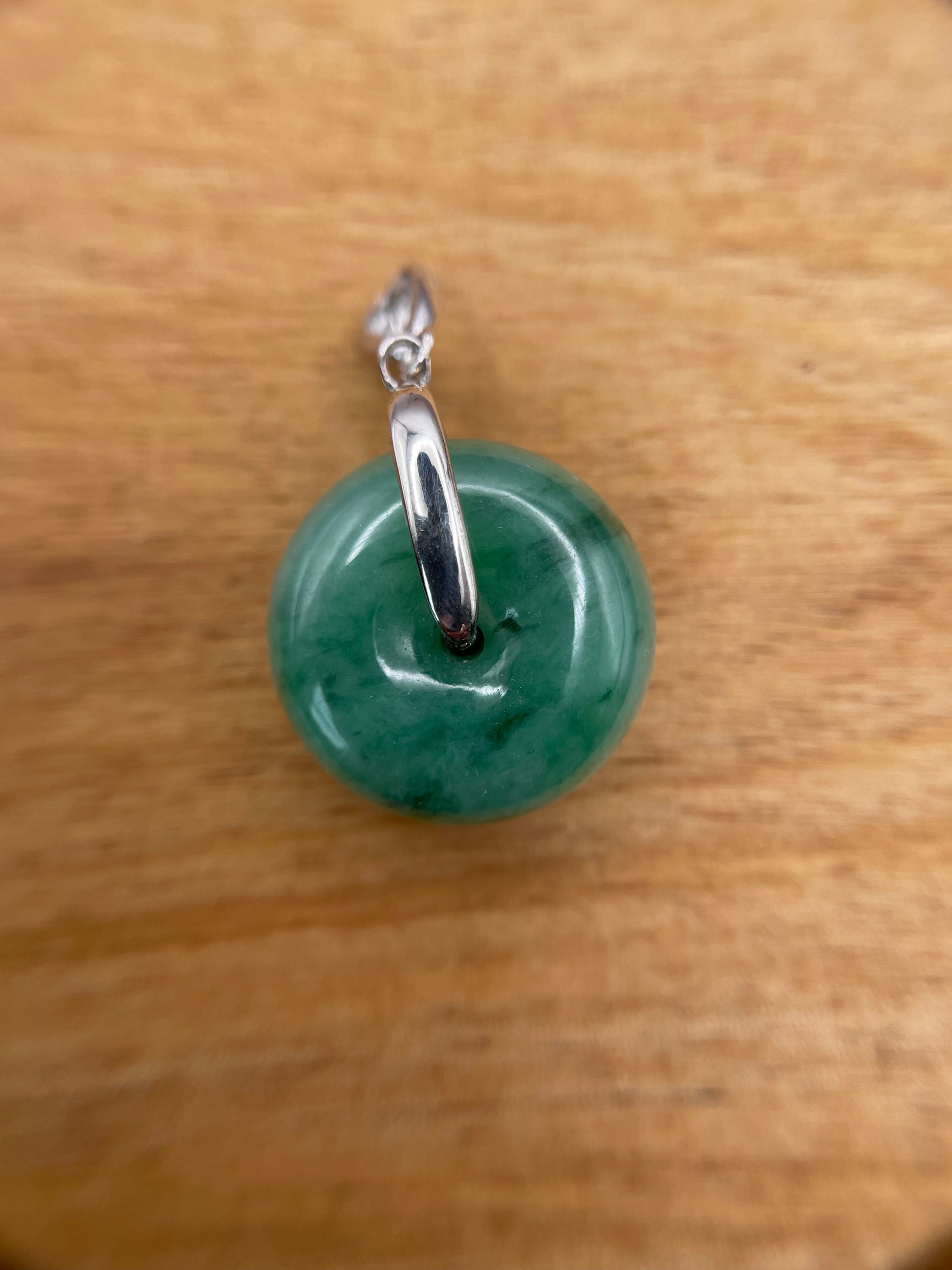 Grade A Natural Green Jadeite Pi Disc pendant with silver bail necklace