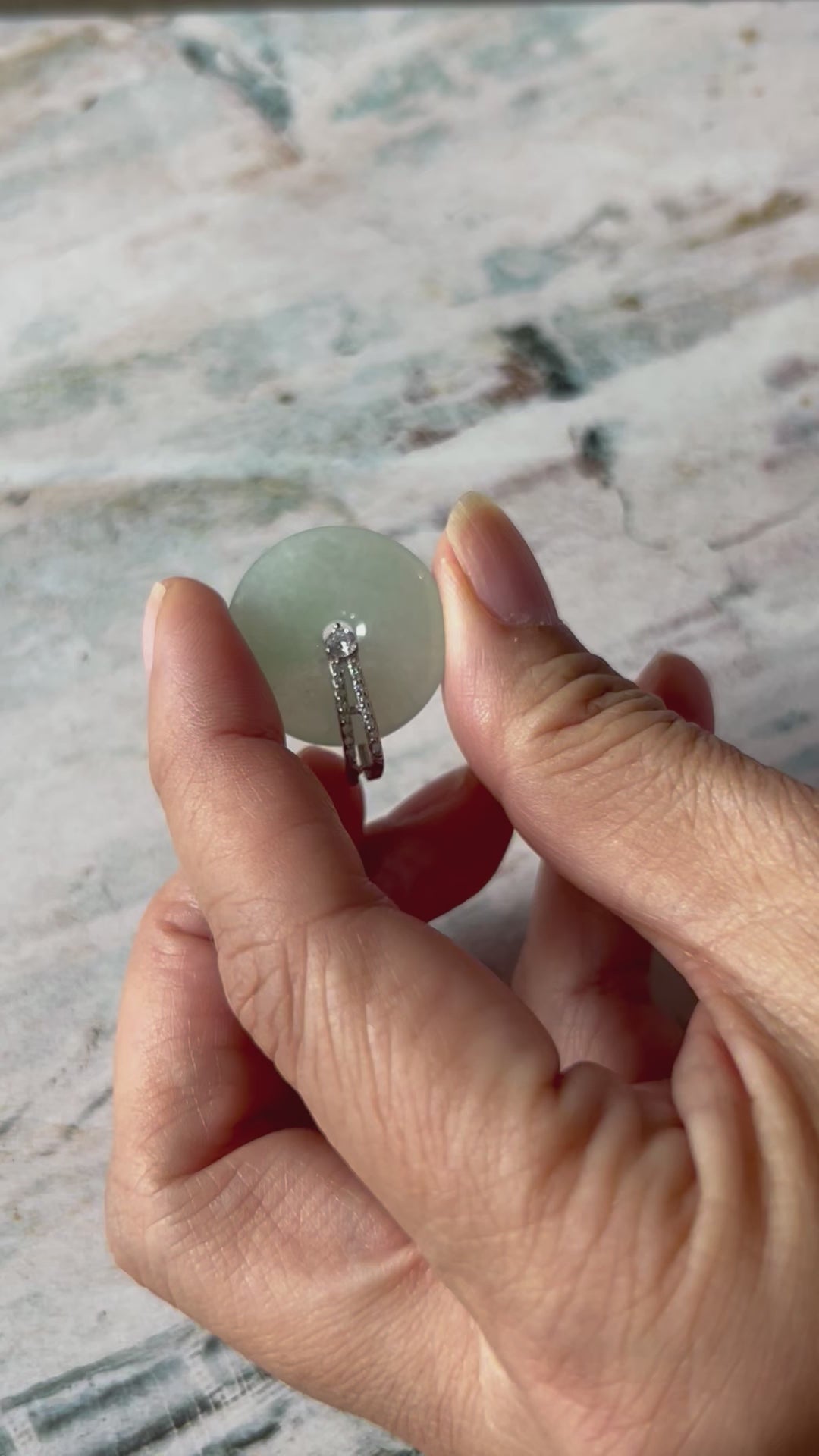 Unique translucent green Pi disc (donut) with 2 rows of zircon sterling silver bail. Pi disc is for safety and peace for its wearer. This piece is full of good vibes and full of meaning.