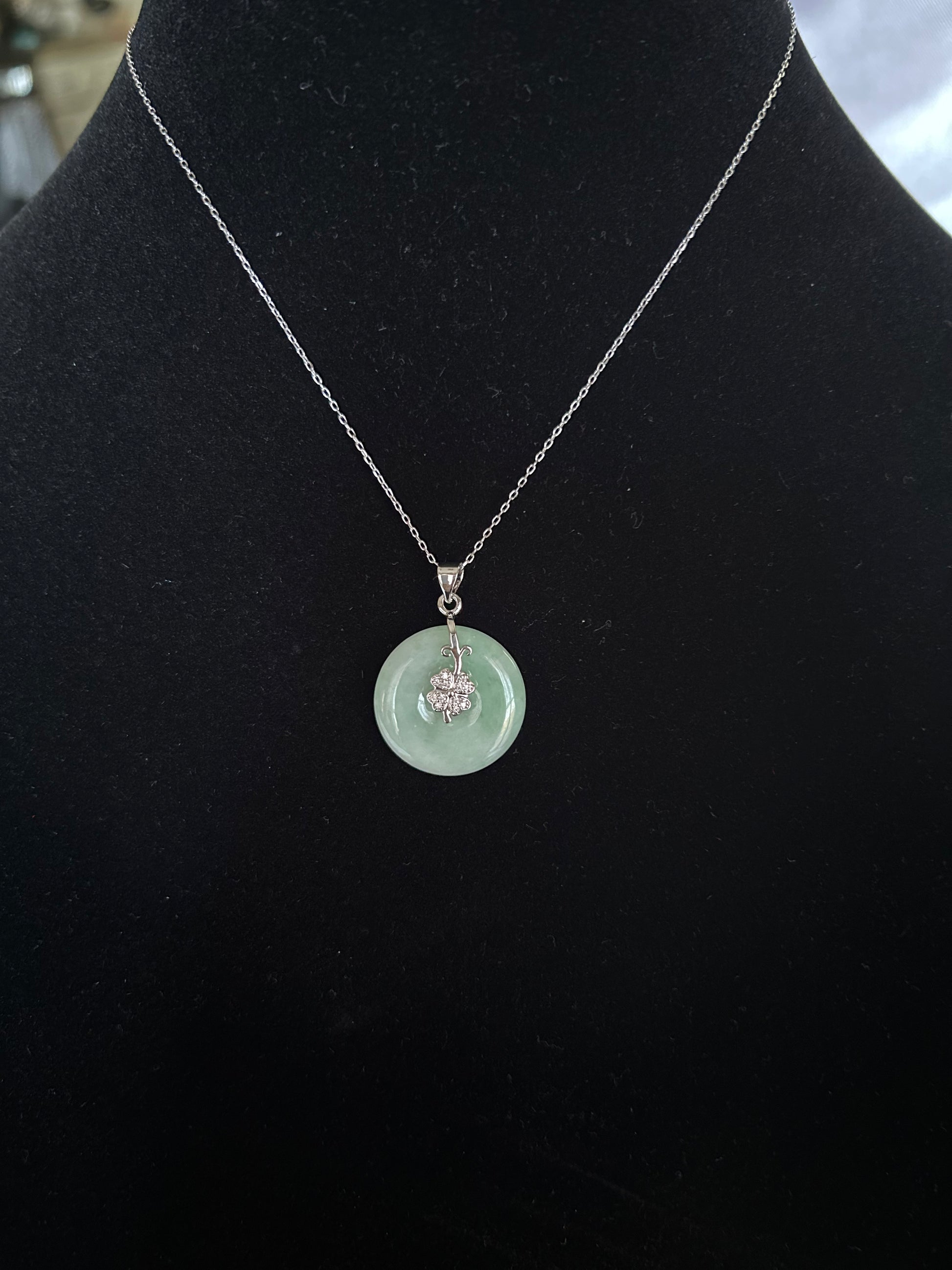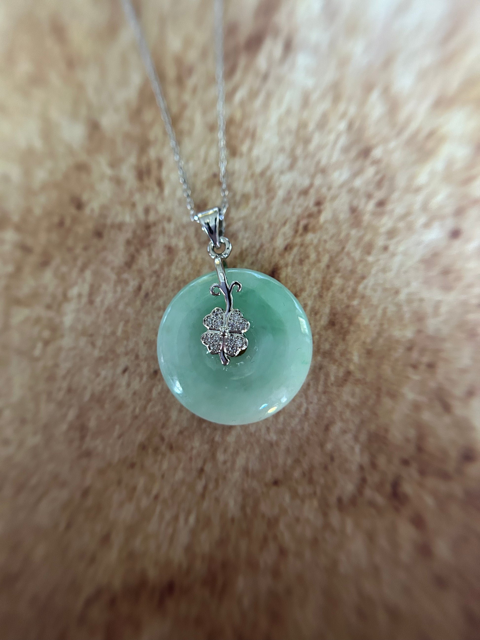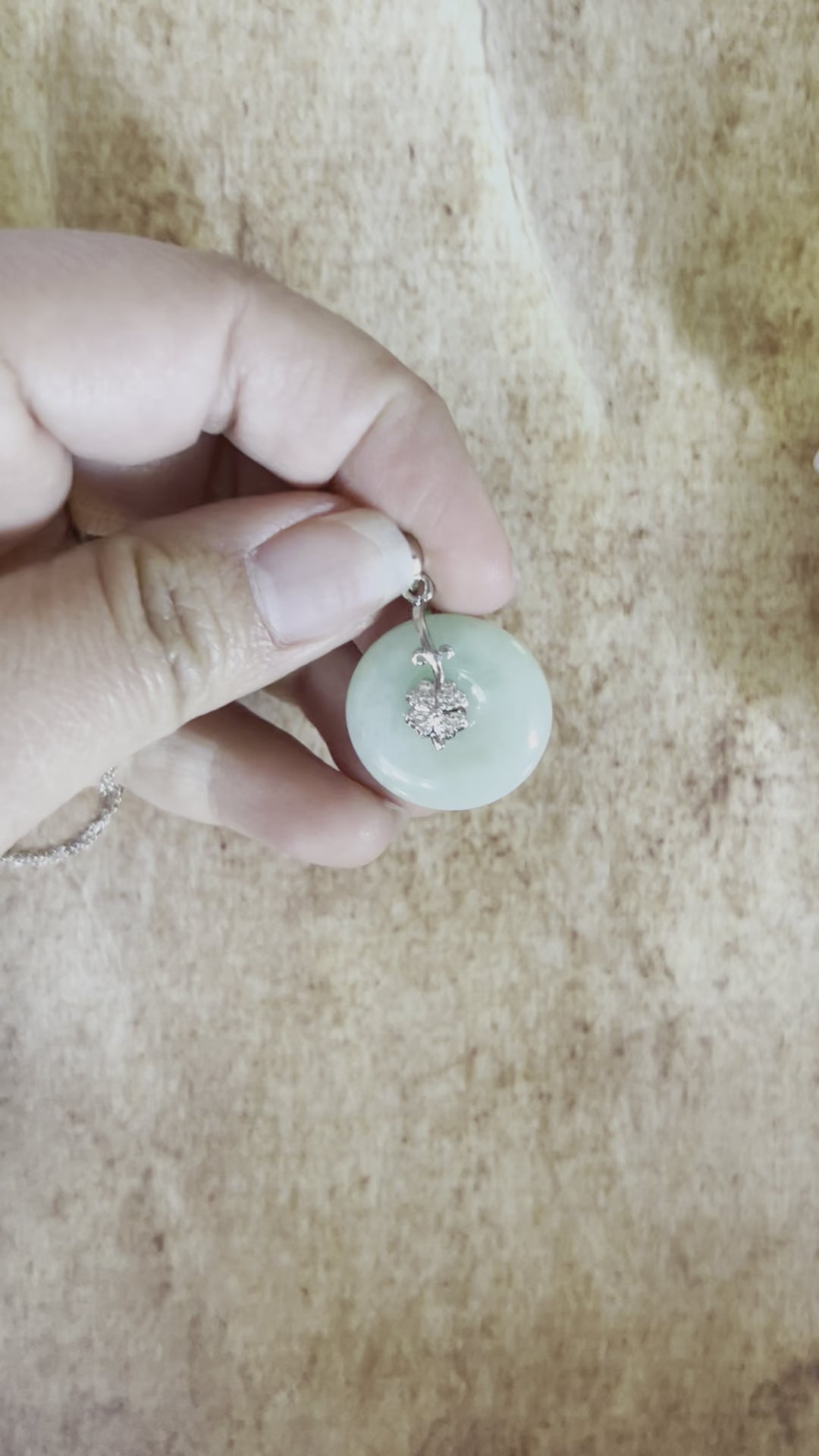 Grade A Natural Green Jadeite Pi Disc(pen on kou, donut) pendant with sterling silver, gold plated bail