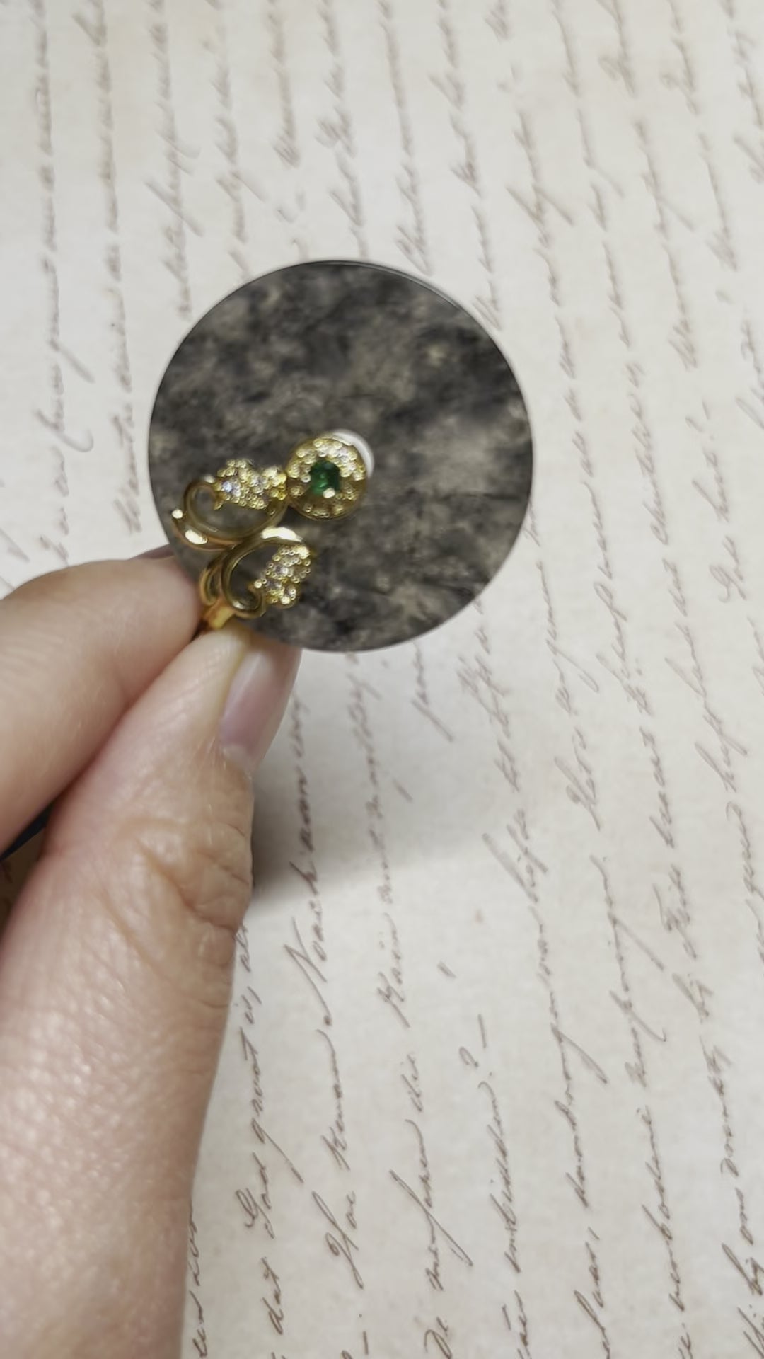 Unique glass black Pi disc (donut) with gold plated sterling silver and green accent crystal bail. Pi disc, or “ping an kou” (平安口) in Chinese, is a classic jade design. Reminiscent of a traditional Chinese coin, it grants safety, harmony, and fortune to its wearers.