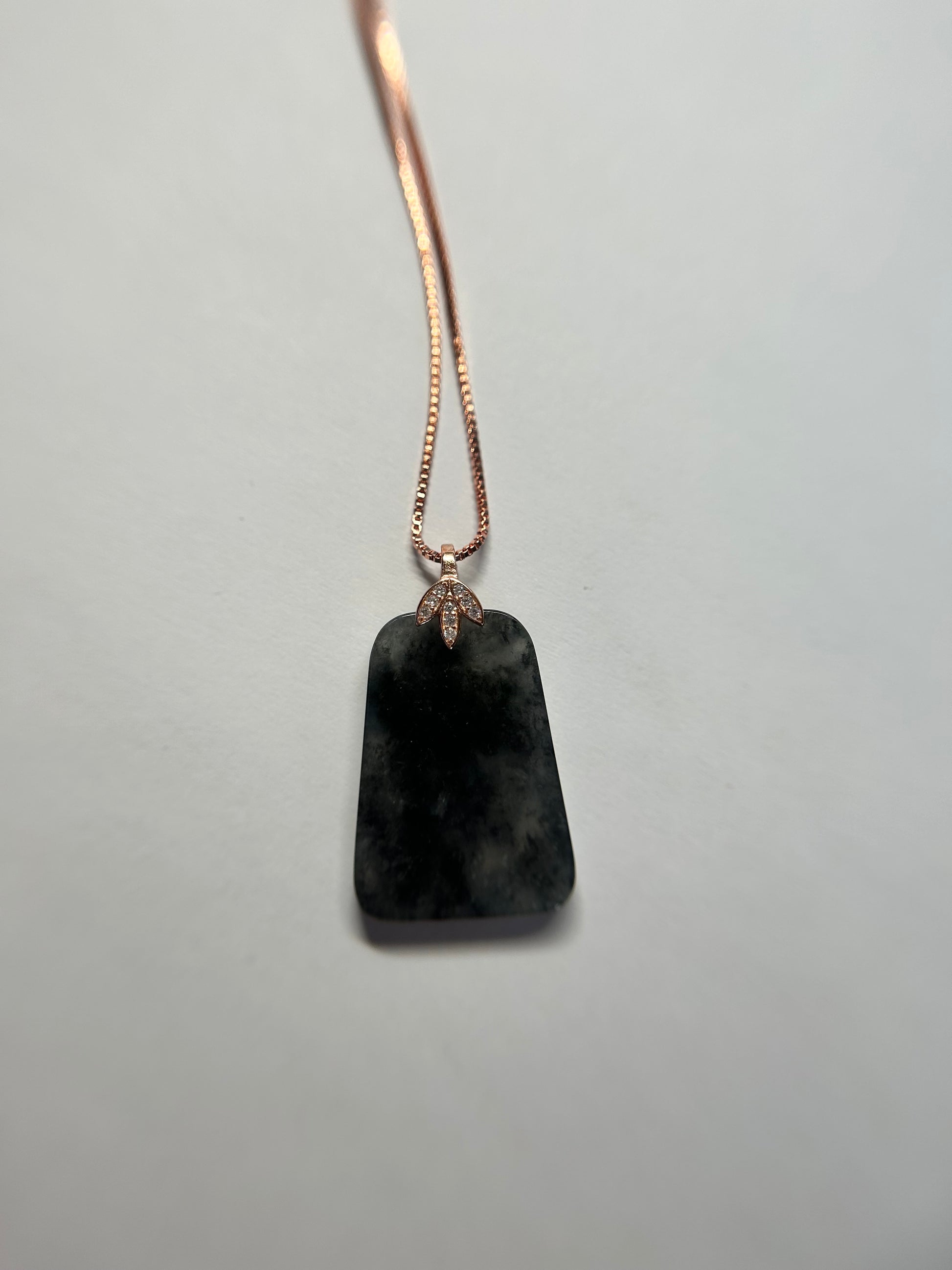 Grade A Natural Highly Icy Black Trapezoid Rose gold plated sterling silver bails necklace