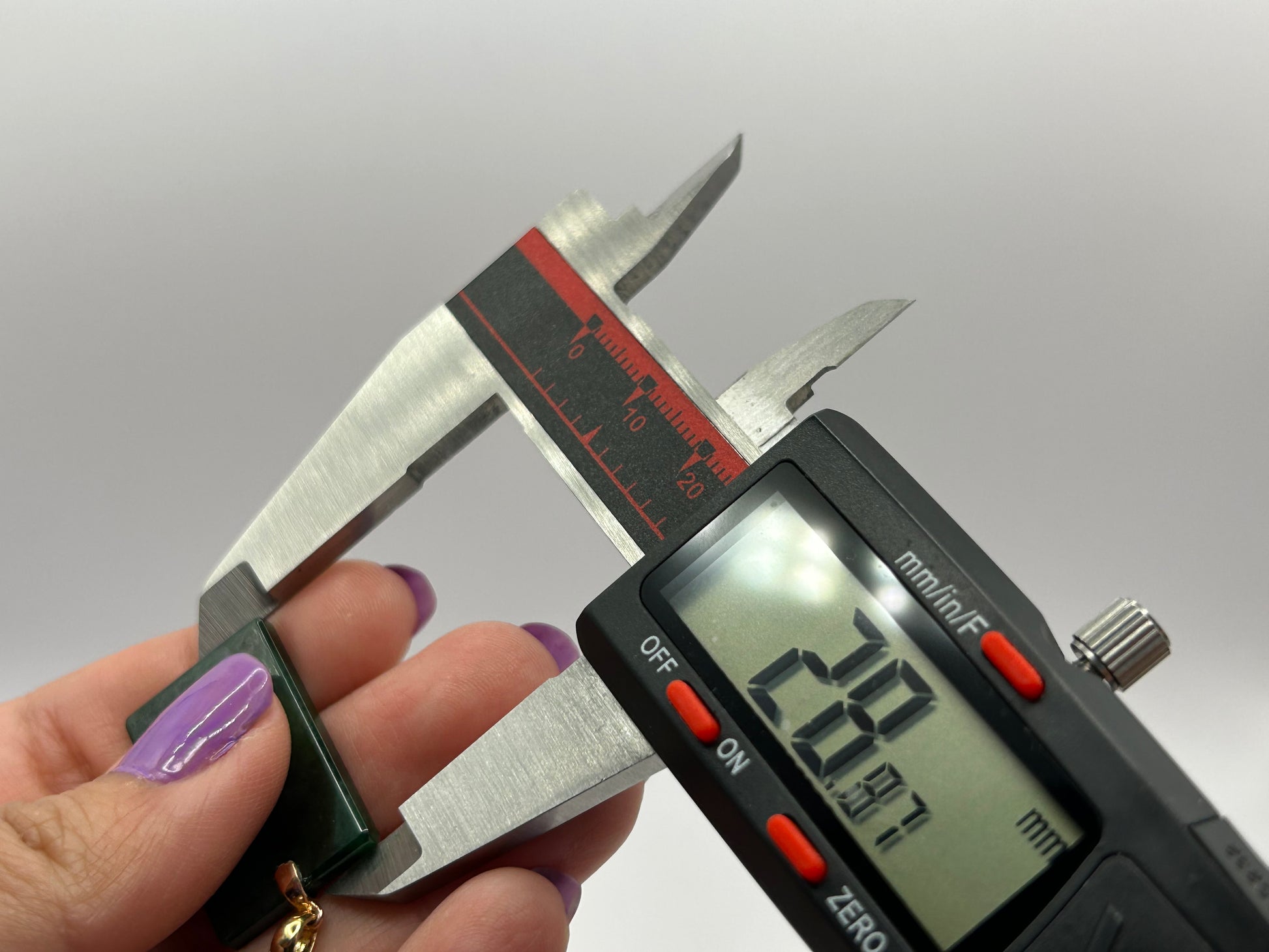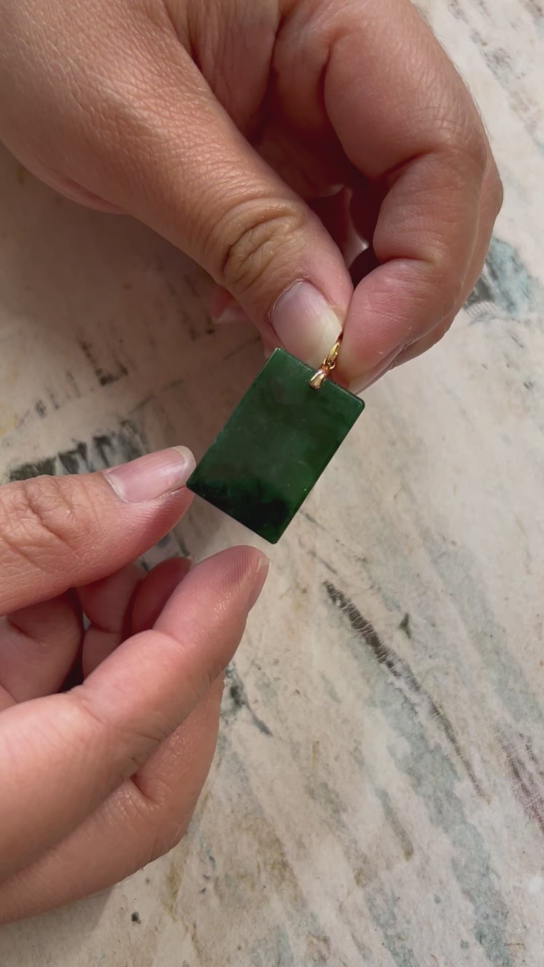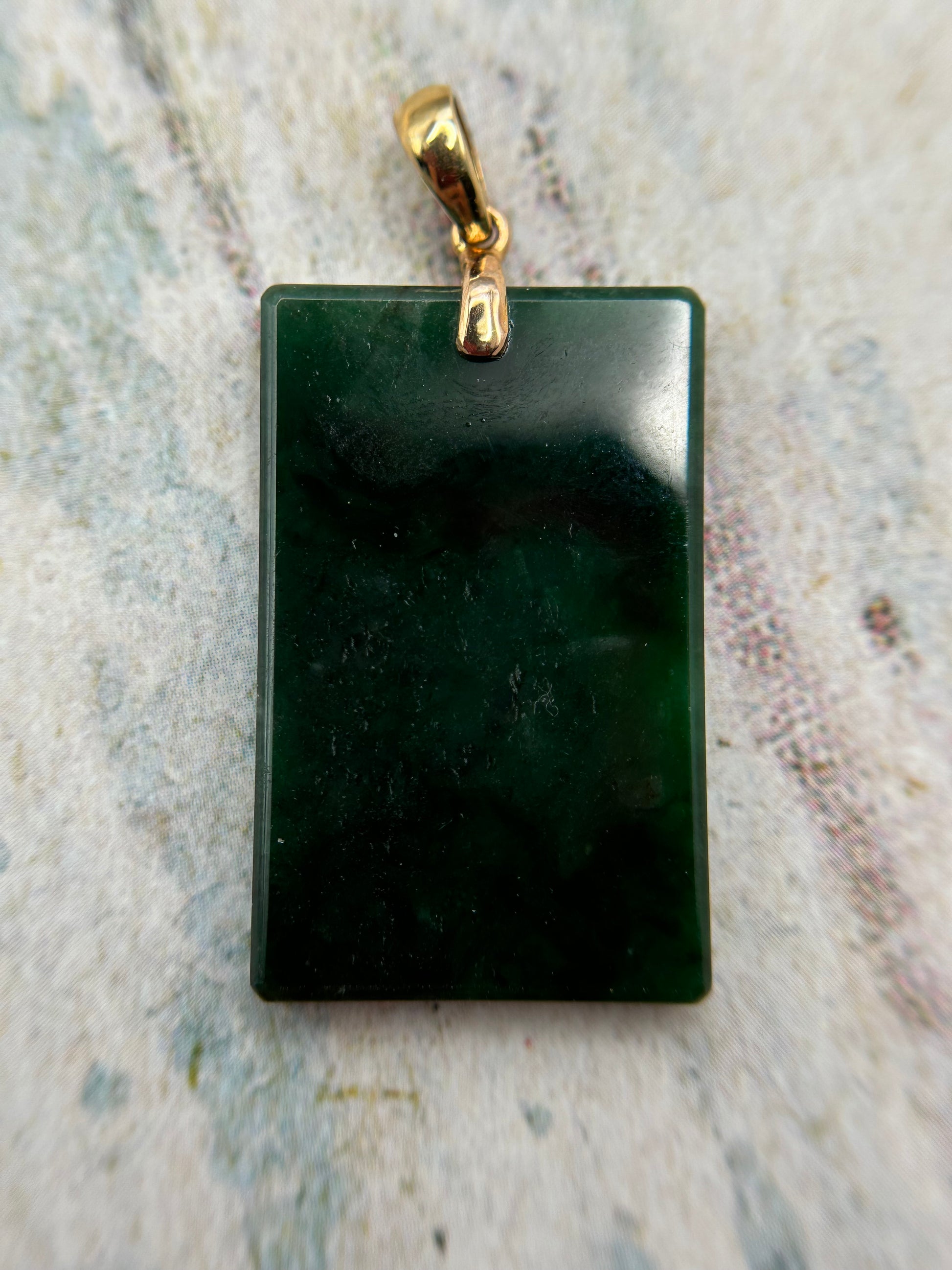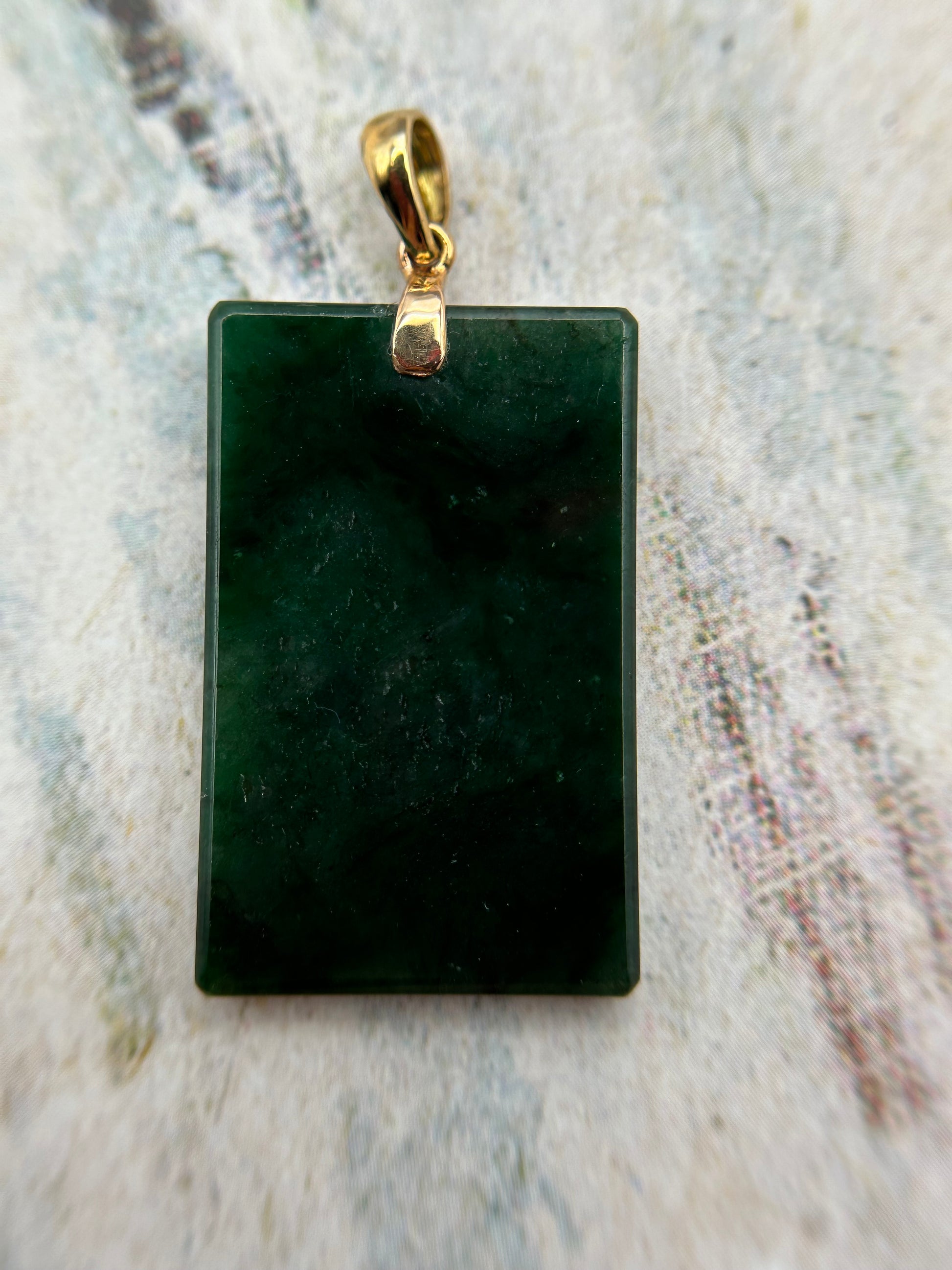Unique dark green rectangle 18K yellow gold bail. it grants safety, harmony, and fortune to its wearers. Height:28.87mm, width:18.32mm, thick:2.94mm .