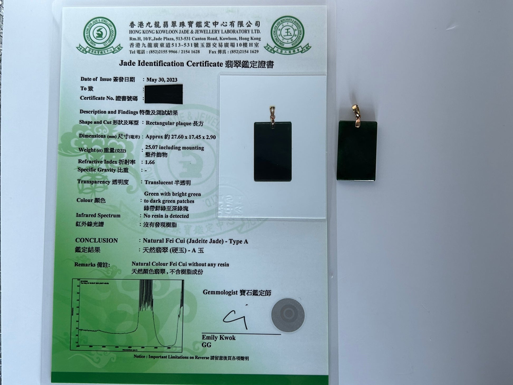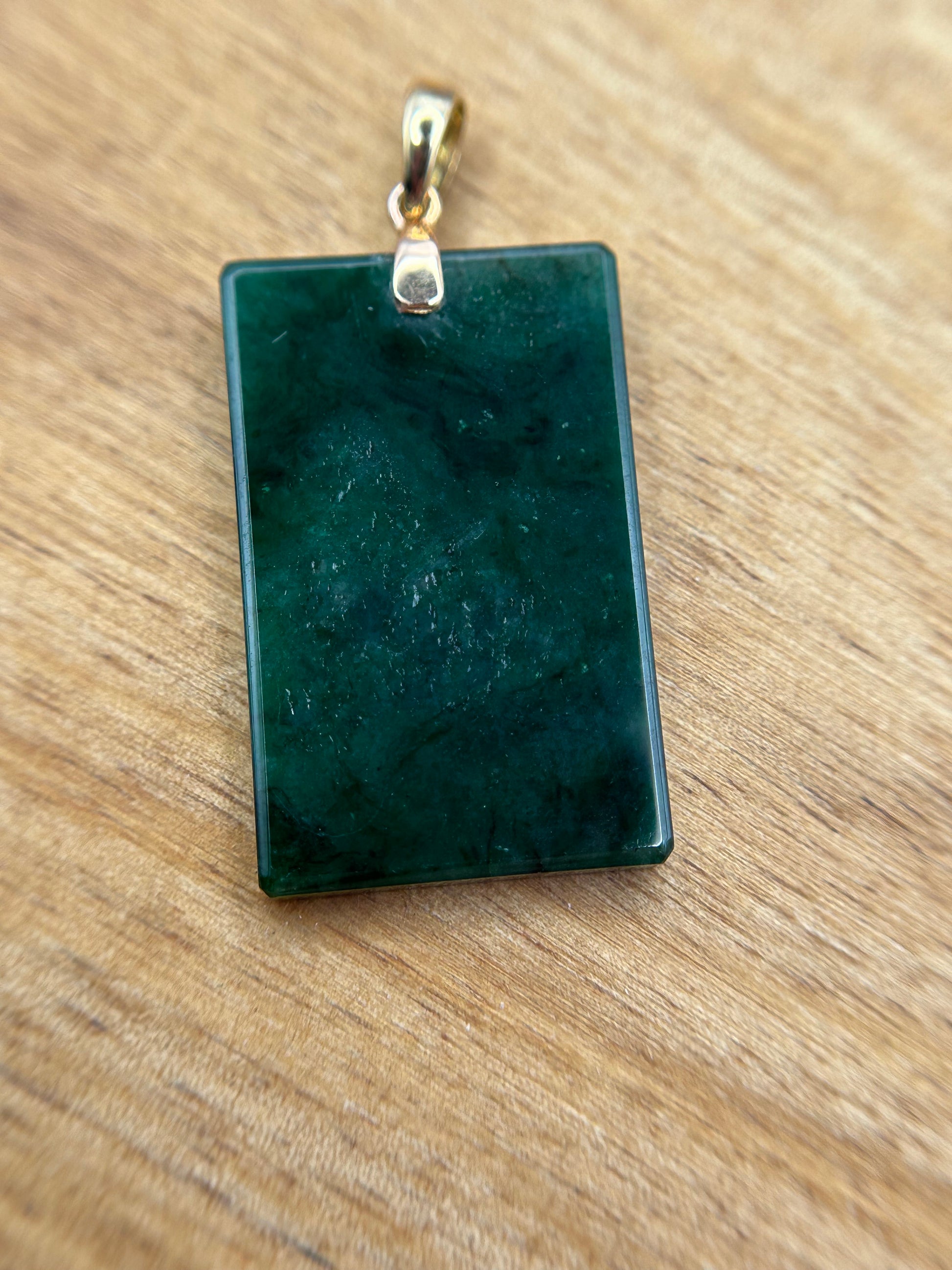 Grade A Natural Highly Icy Dark Green Rectangle 18K yellow gold bails Pendant