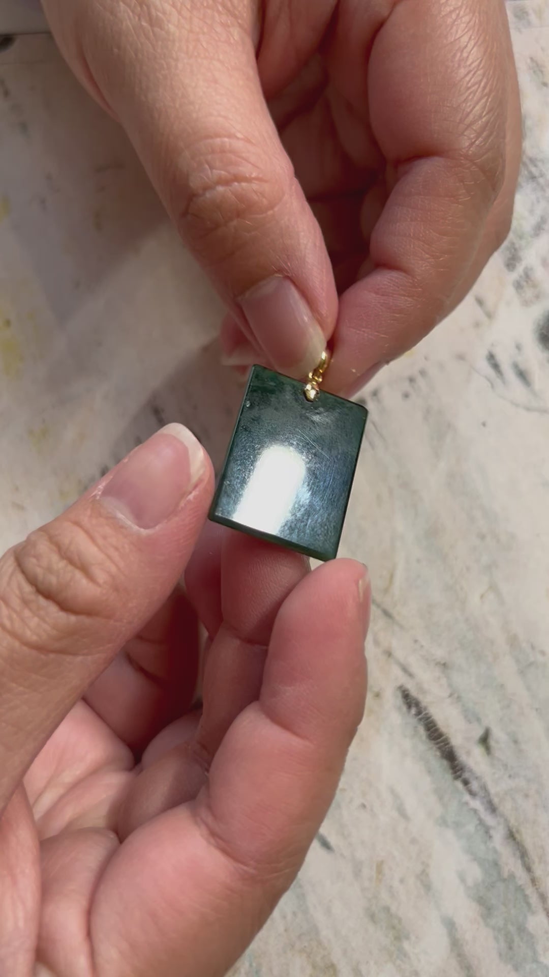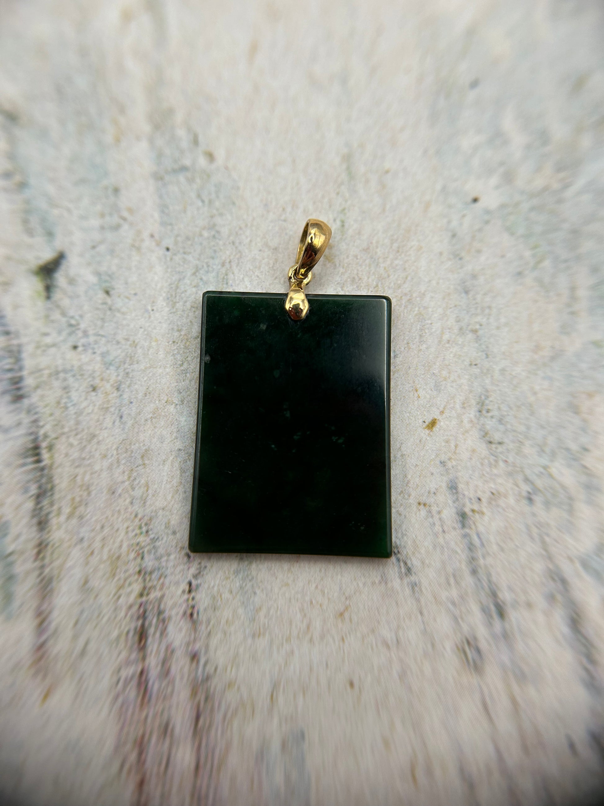 Unique dark green rectangle 18K yellow gold bail. it grants safety, harmony, and fortune to its wearers. Height:27.15mm, width:19.9mm, thick:1.98mm .