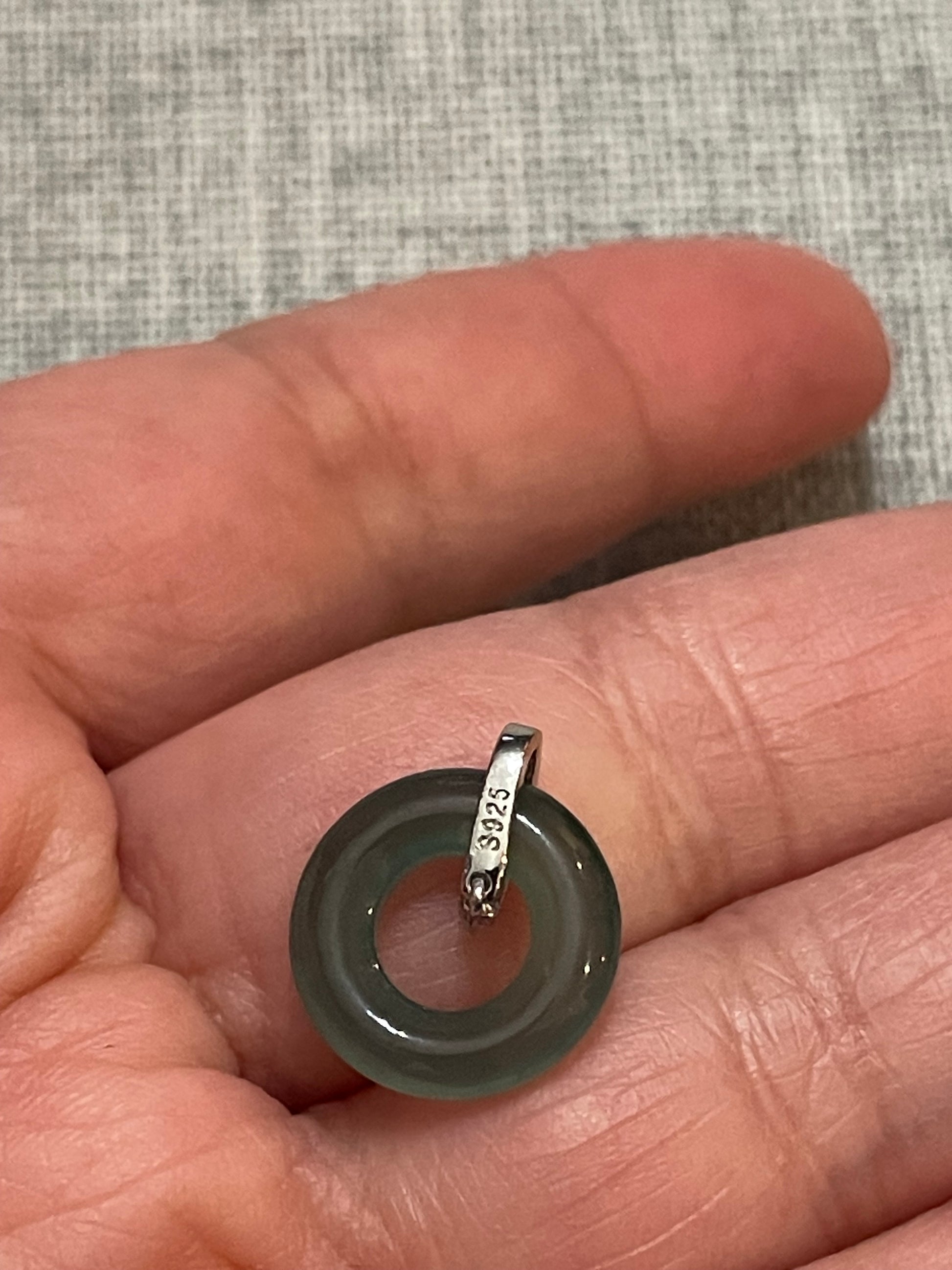 Grade A Natural Icy Blue Jadeite Pi Disc pendant with sterling silver bail