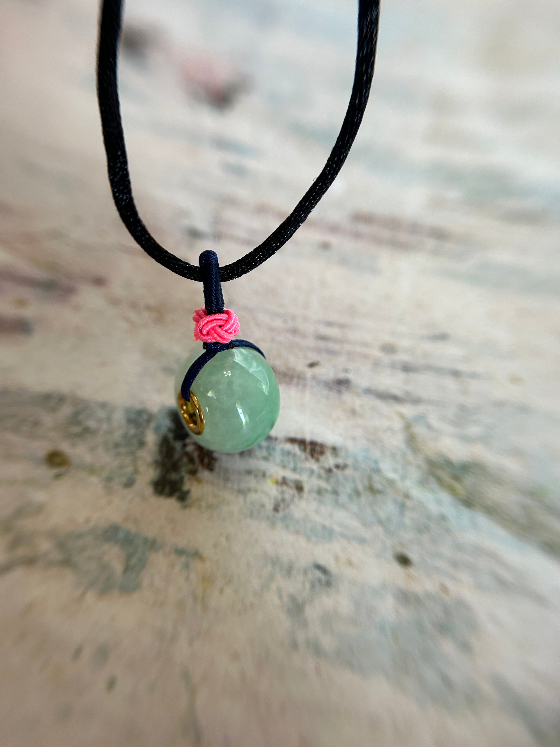 The Jadeite is green and added to adjustable rope necklace. This is great for every day wear for kids and adults.