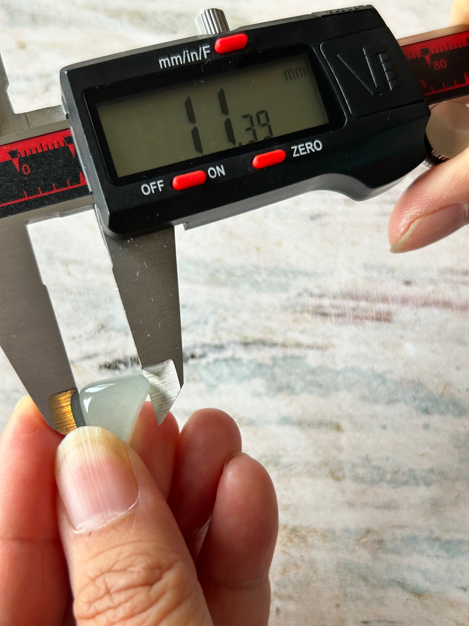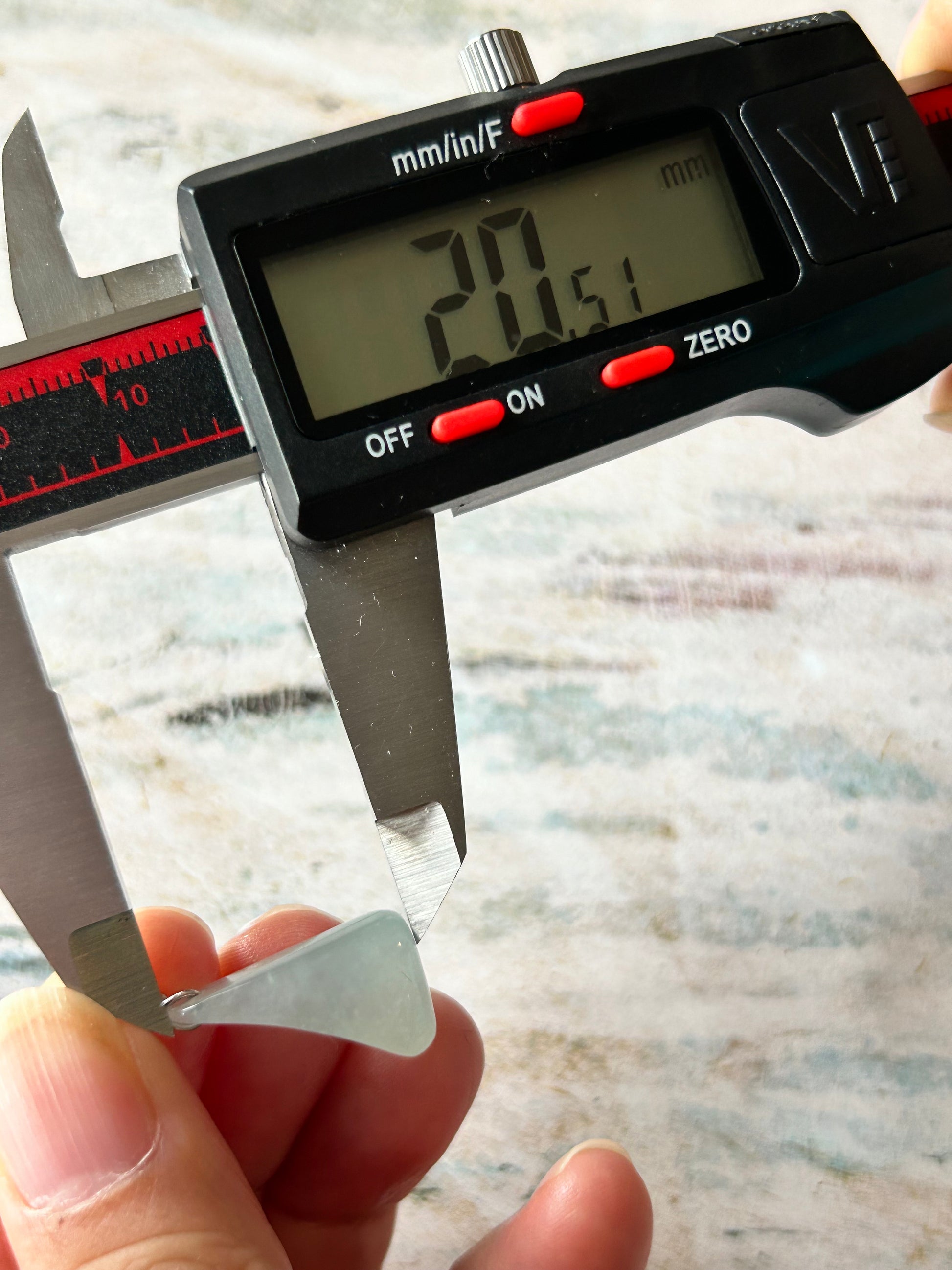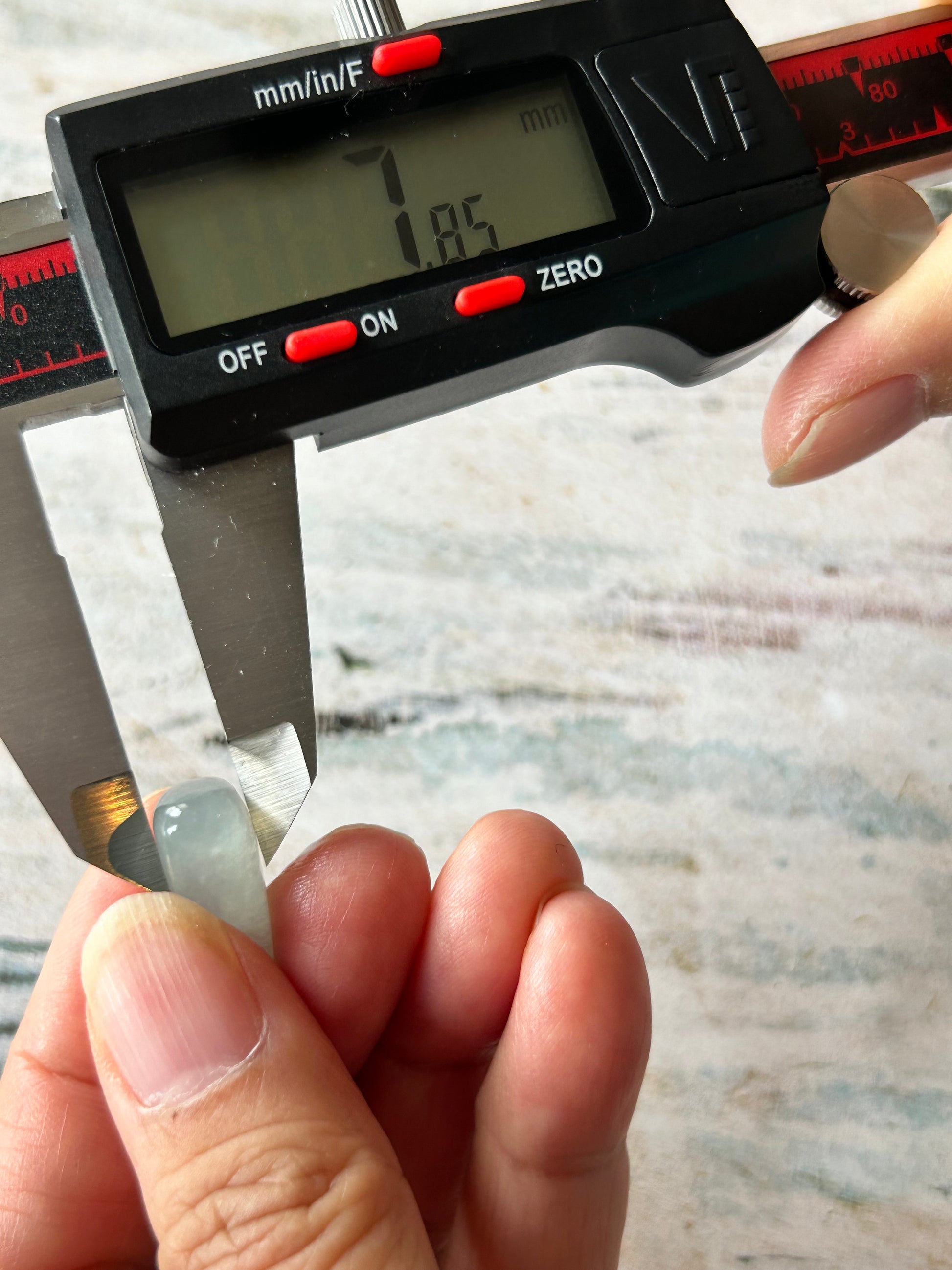 Unique icy green trapezoid sterling silver bail. it grants safety, harmony, and fortune to its wearers. Height:20.51mm, width:11.39mm, thick:2.85mm .