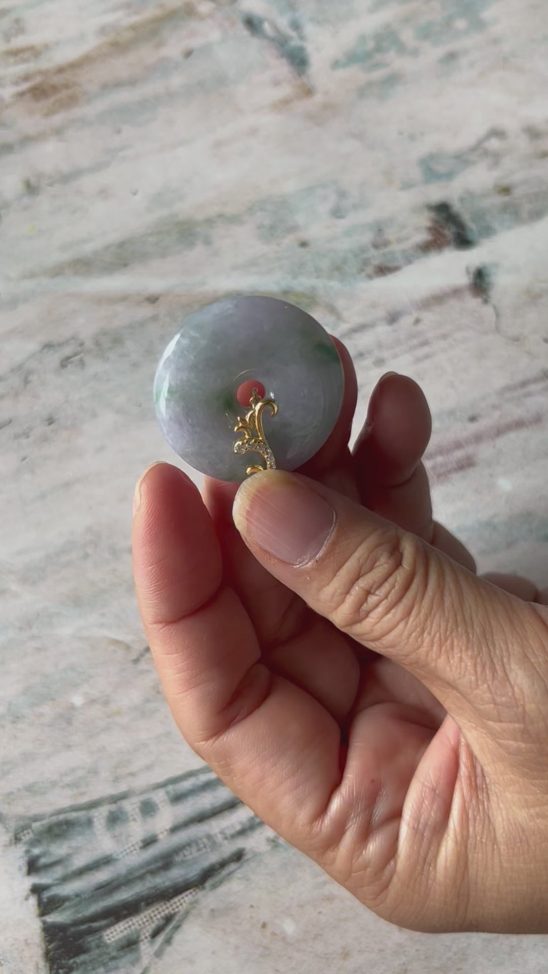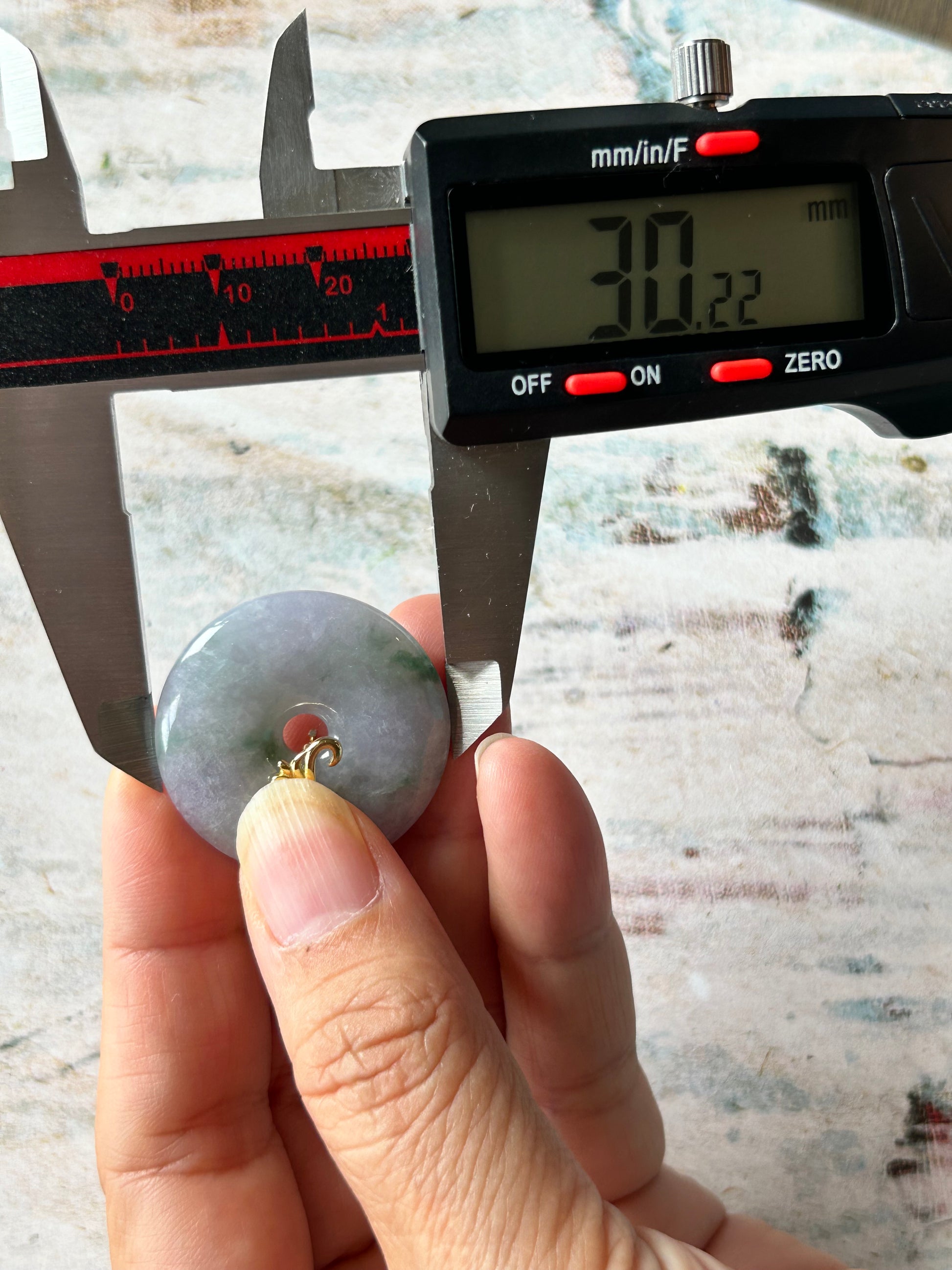 Grade A Natural lavender and green Jadeite Pi Disc ( peng on kou, donut) pendant with Gold over sterling silver bail