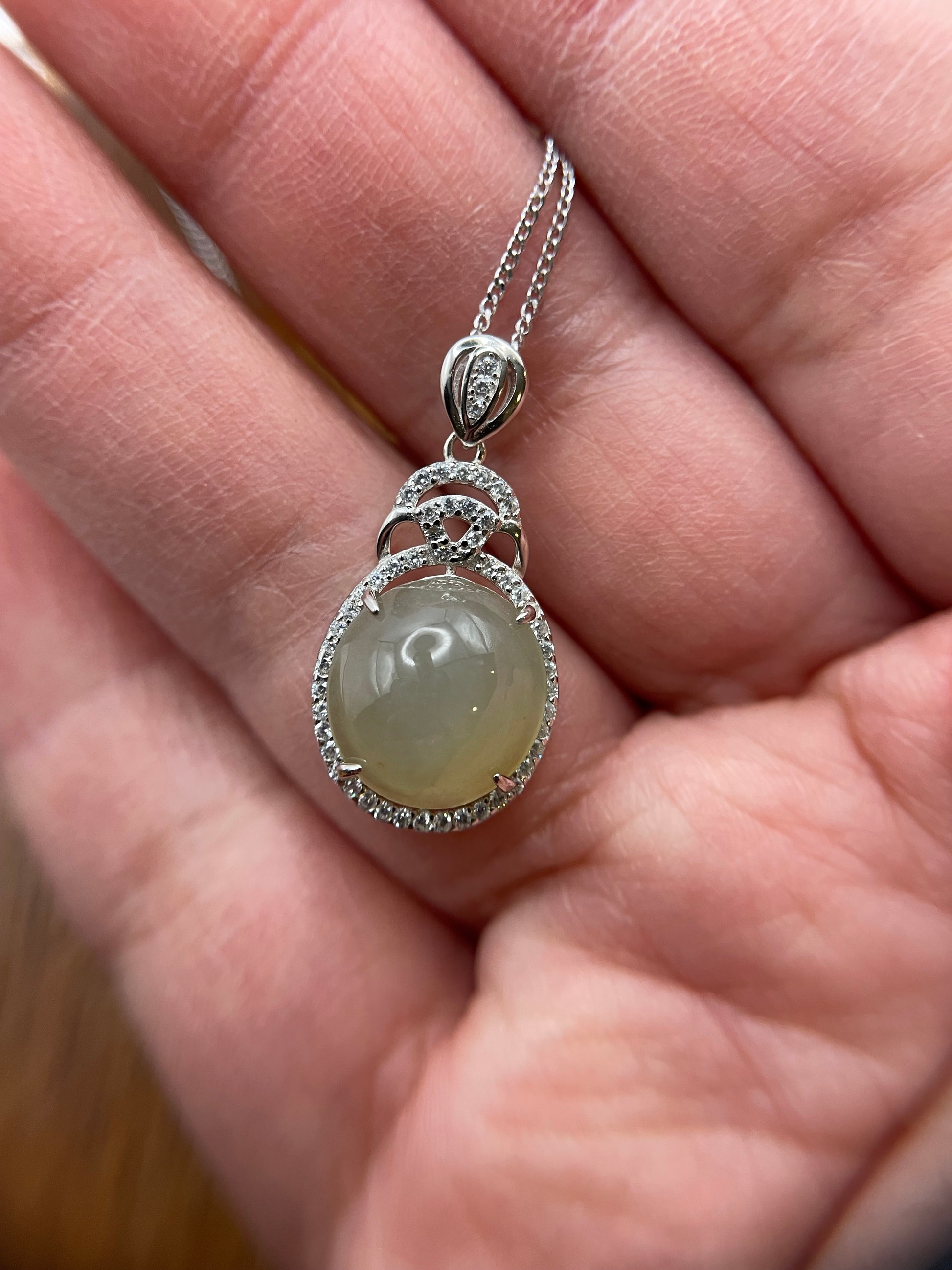 Jade is believed to protect the person who wears it. A Cabochon pendant is believed to best of good luck and protection to the wearer. It come with a cubic zircon silver bail.