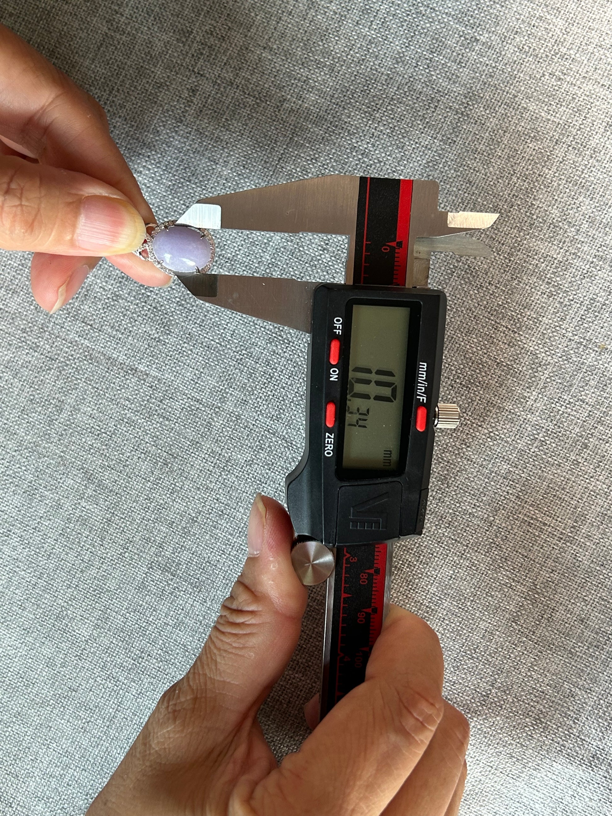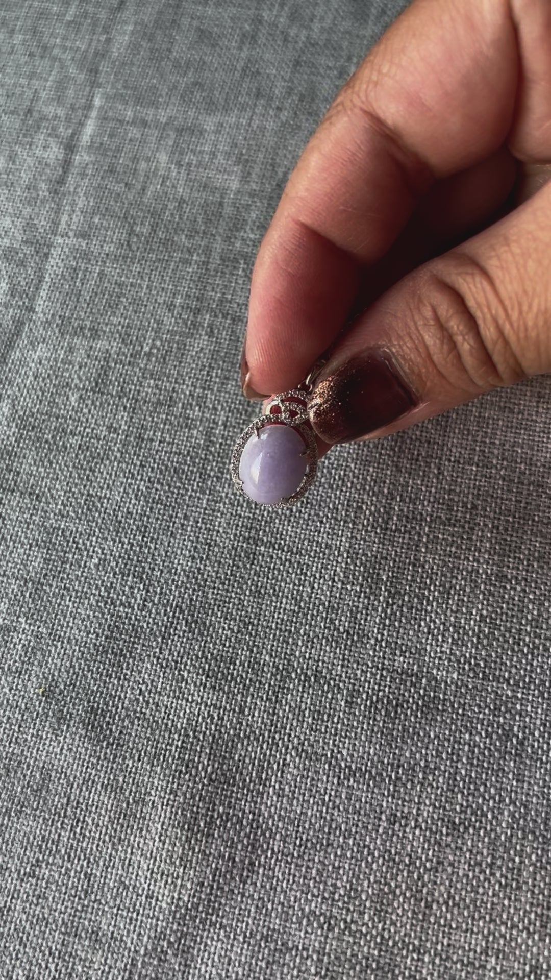 Grade A Natural Lavender Burma Jadeite Cabochon pendant With Cubic Zirconia Silver necklace