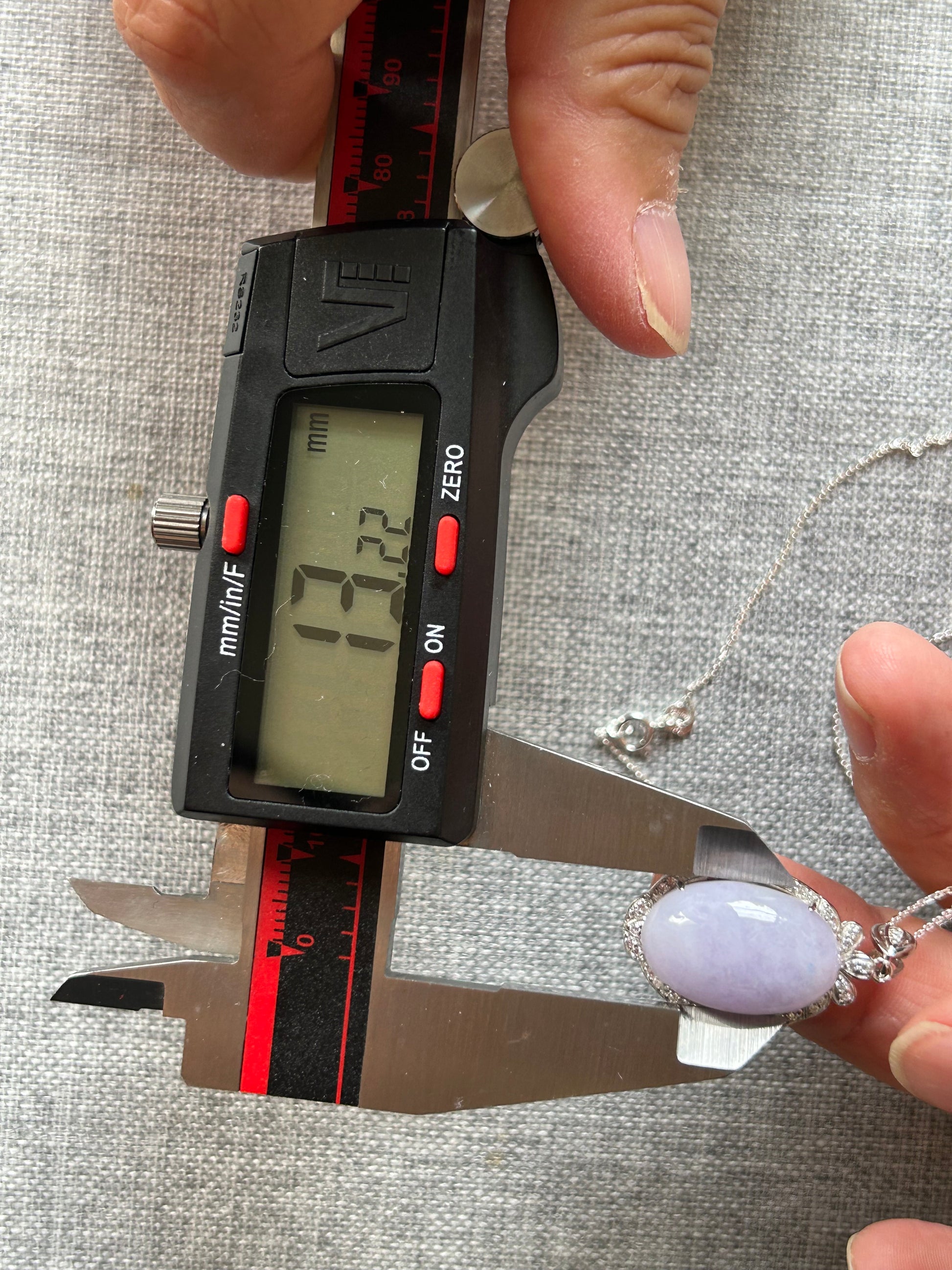 Grade A Natural Lavender Burma Jadeite Cabochon pendant With Cubic Zirconia Silver necklace