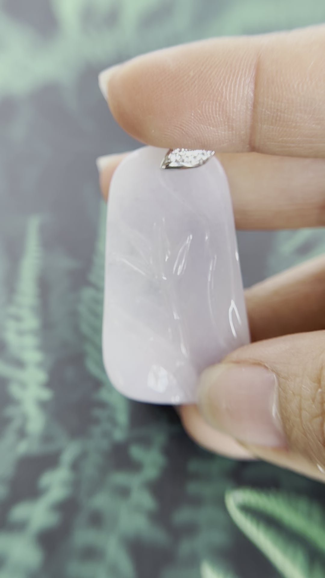 This pendant is translucent, and carving depicting bamboo on both sides. This is an elegant and timeless piece that is perfect for anyone. the piece measures 43.14mmx25mm x 4.26mm.