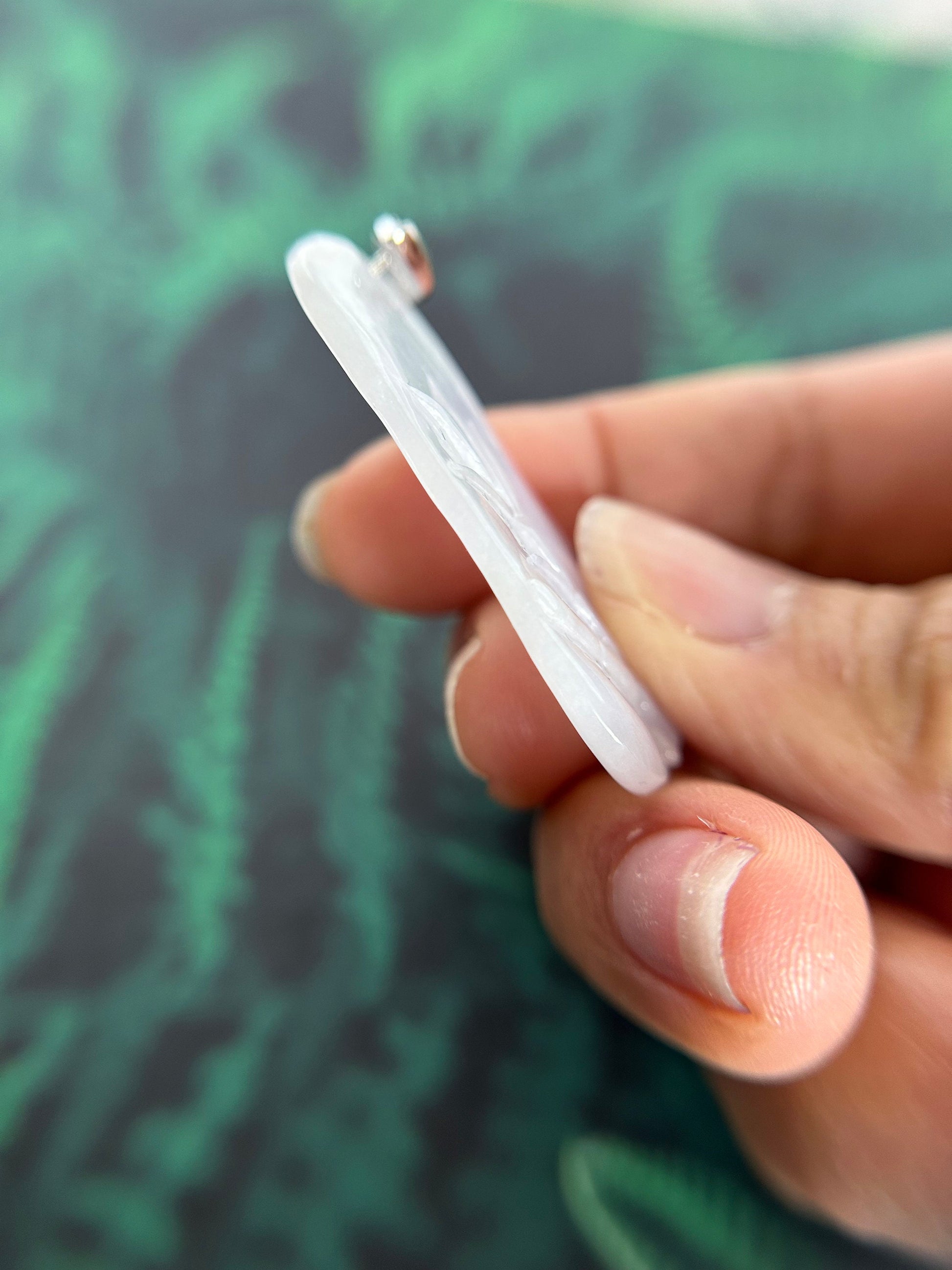 Grade A Natural Lavender Burma Jadeite double side bamboo carving pendant