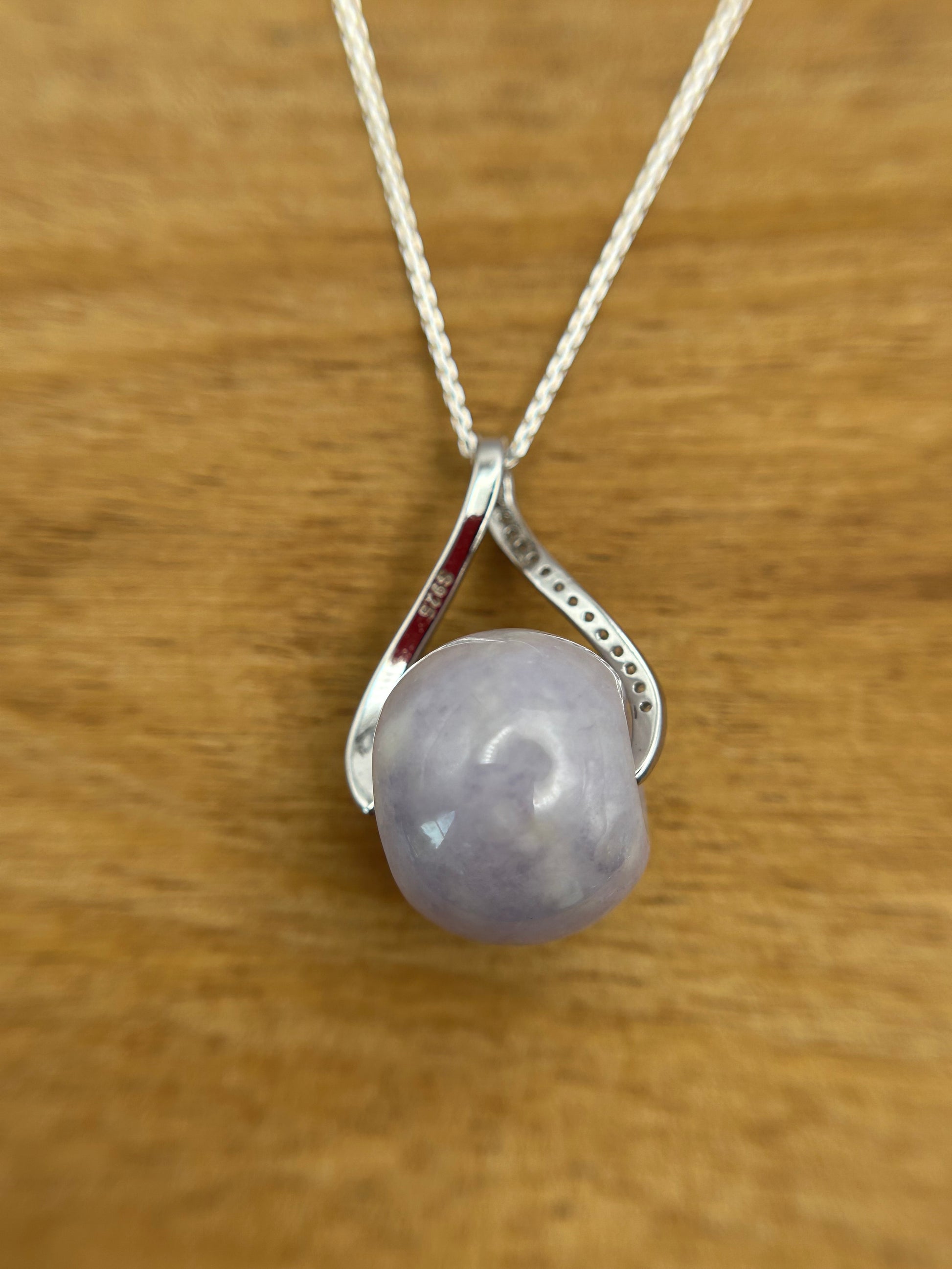 Grade A Natural lavender Jadeite barrel (Lu Lu tong) with sterling silver bail silver necklace