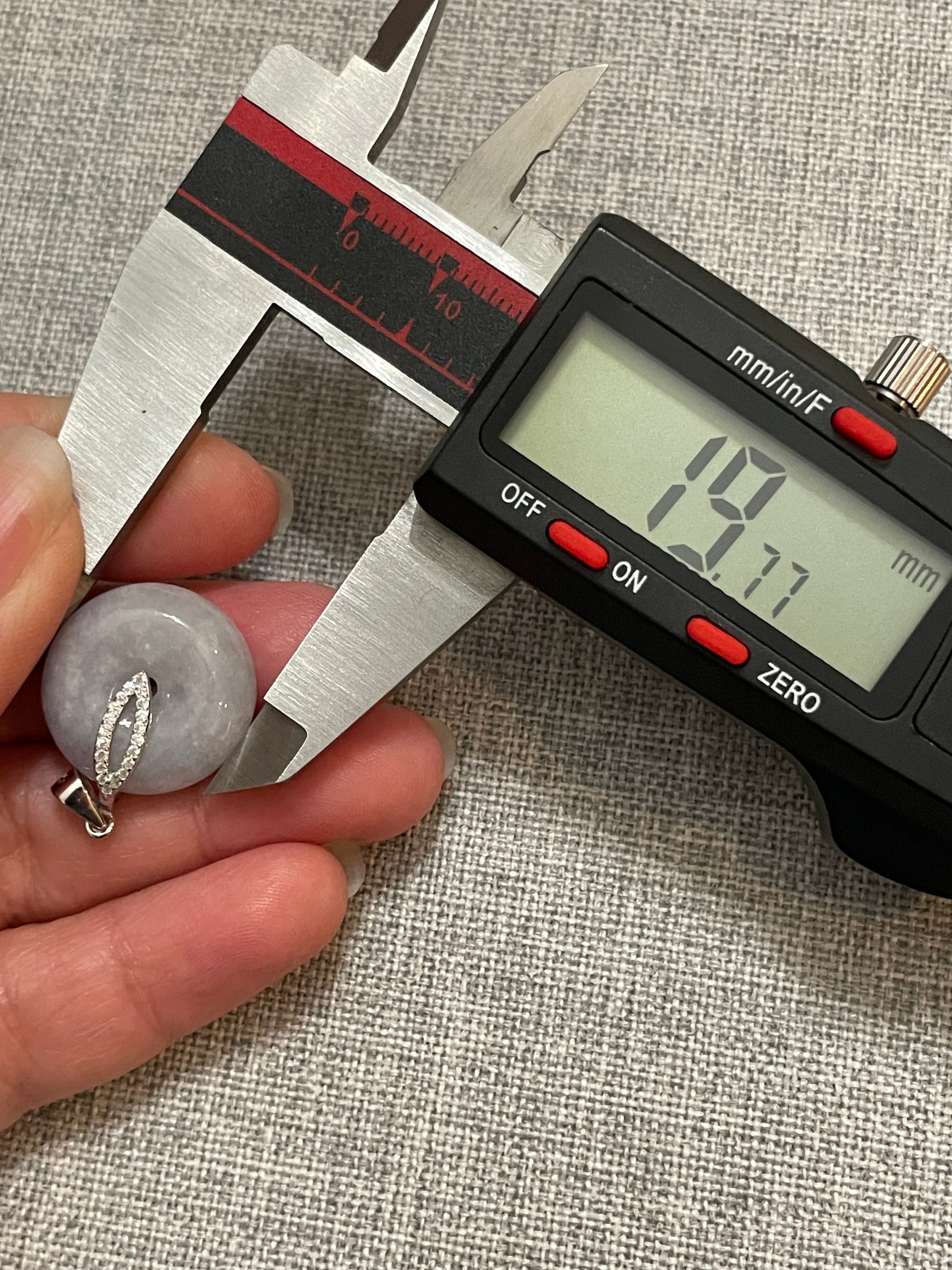 Lavender donut (ping an kou) pendant. Genuine Type A jadeite. All natural non treated jade. This is a unique translucent piece of jadeite. The donut is 19.77mm in diameter and 7.73mm thick. It is a silver necklace.