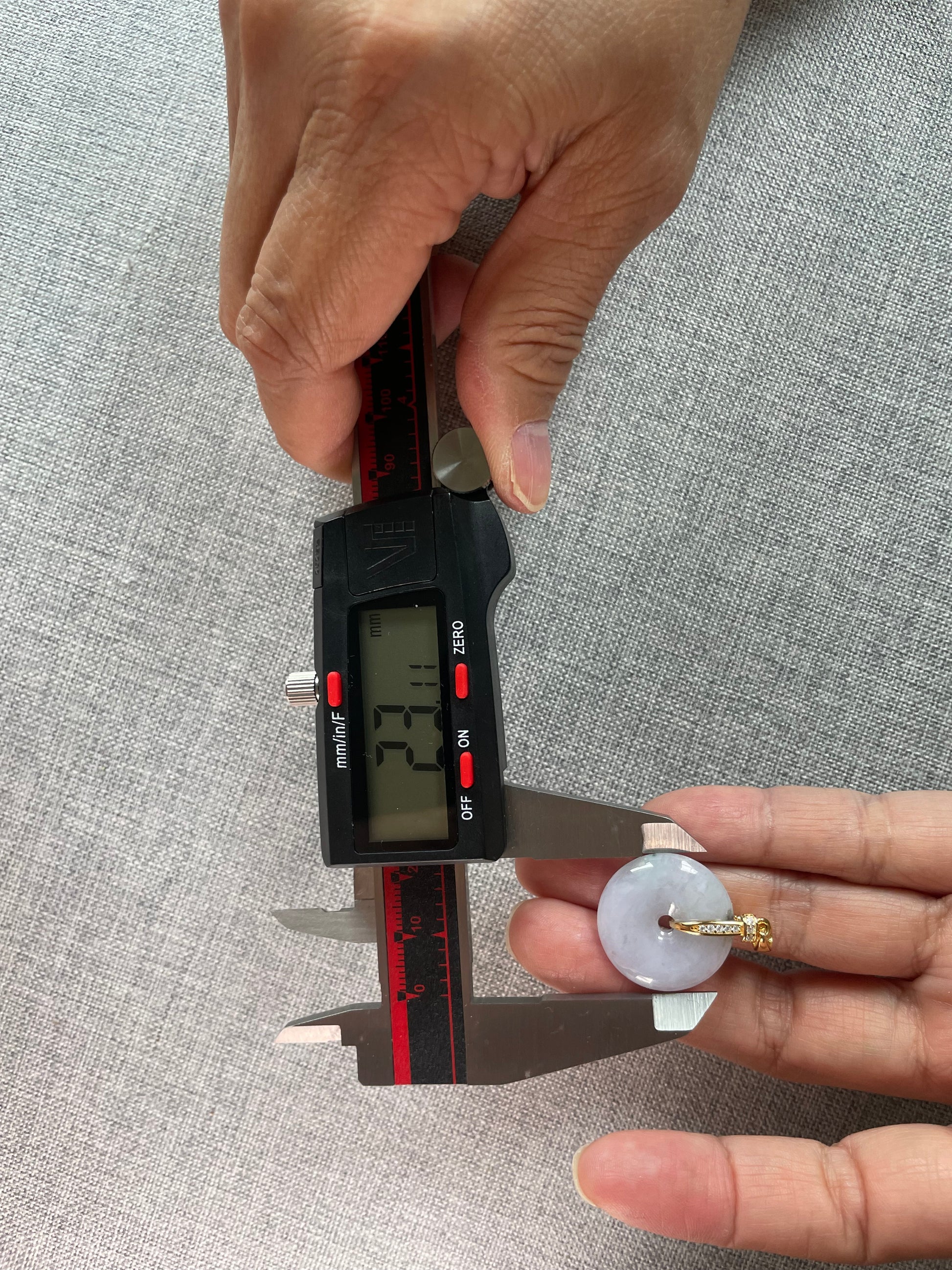 Grade A Natural lavender Jadeite Pi Disc ( peng on kou, donut) pendant with Gold over sterling silver bail