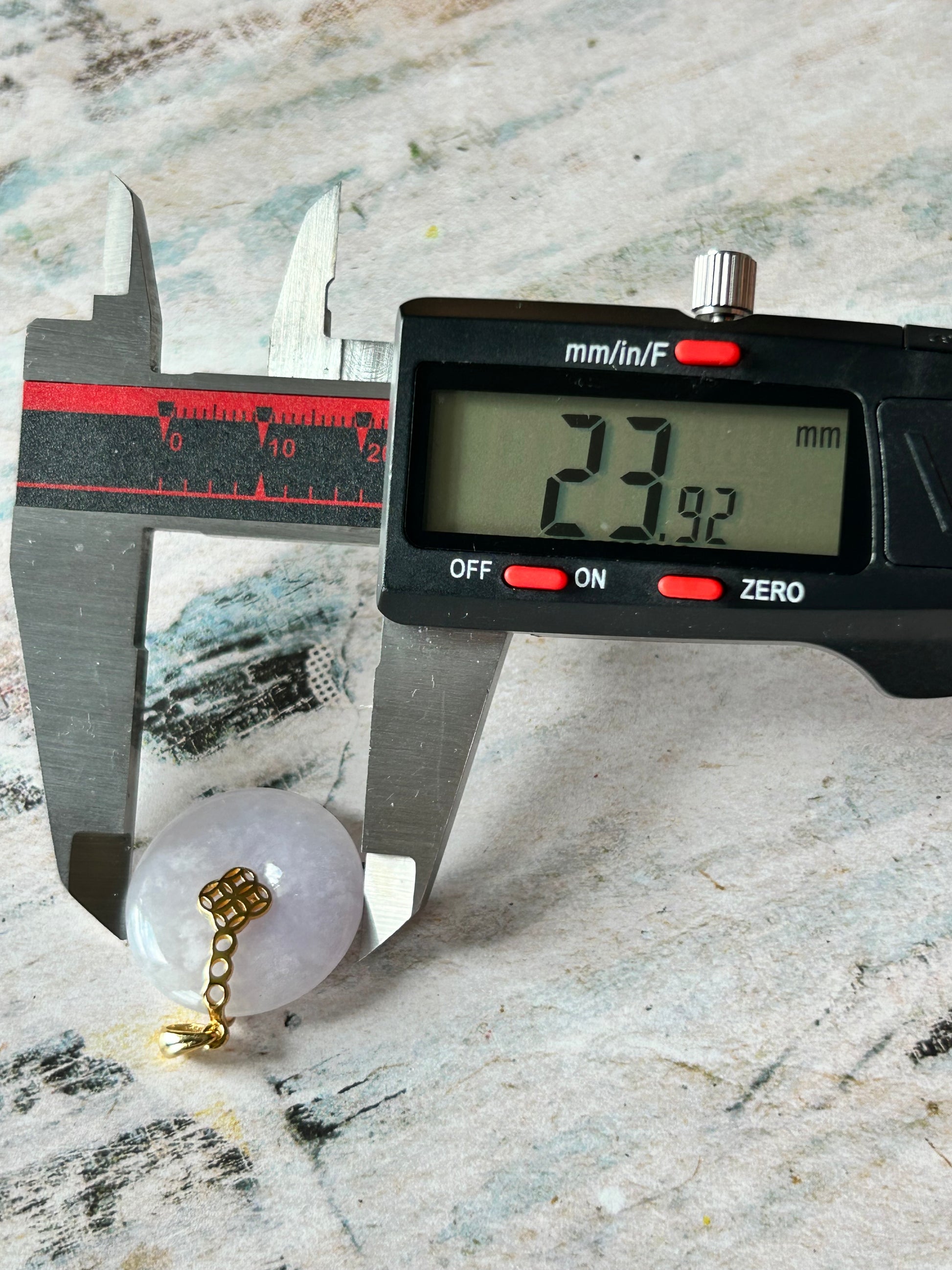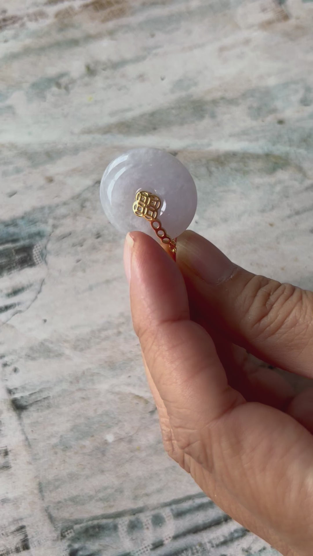 Grade A Natural lavender Jadeite Pi Disc ( peng on kou, donut) pendant with Gold over sterling silver coin bail