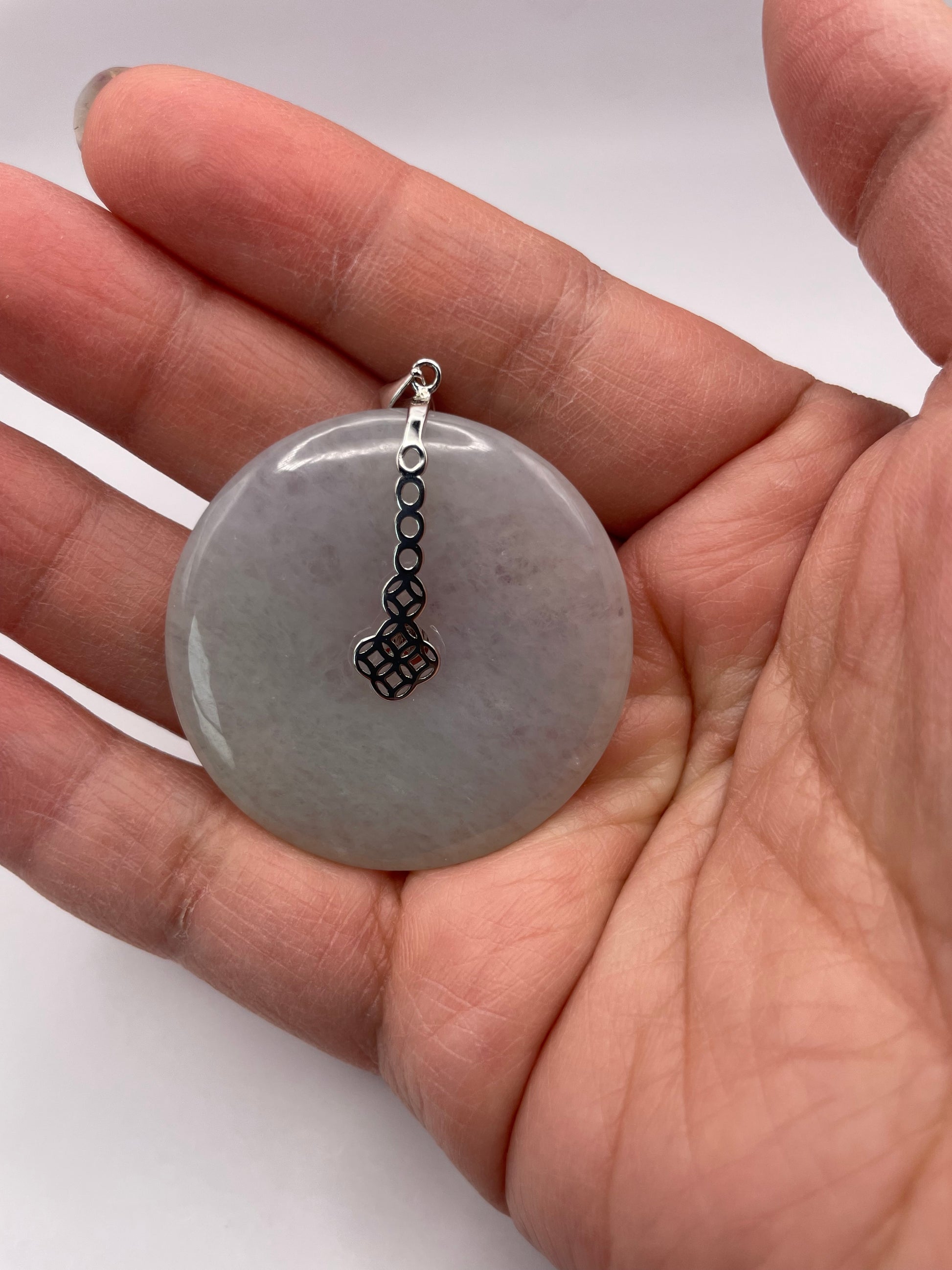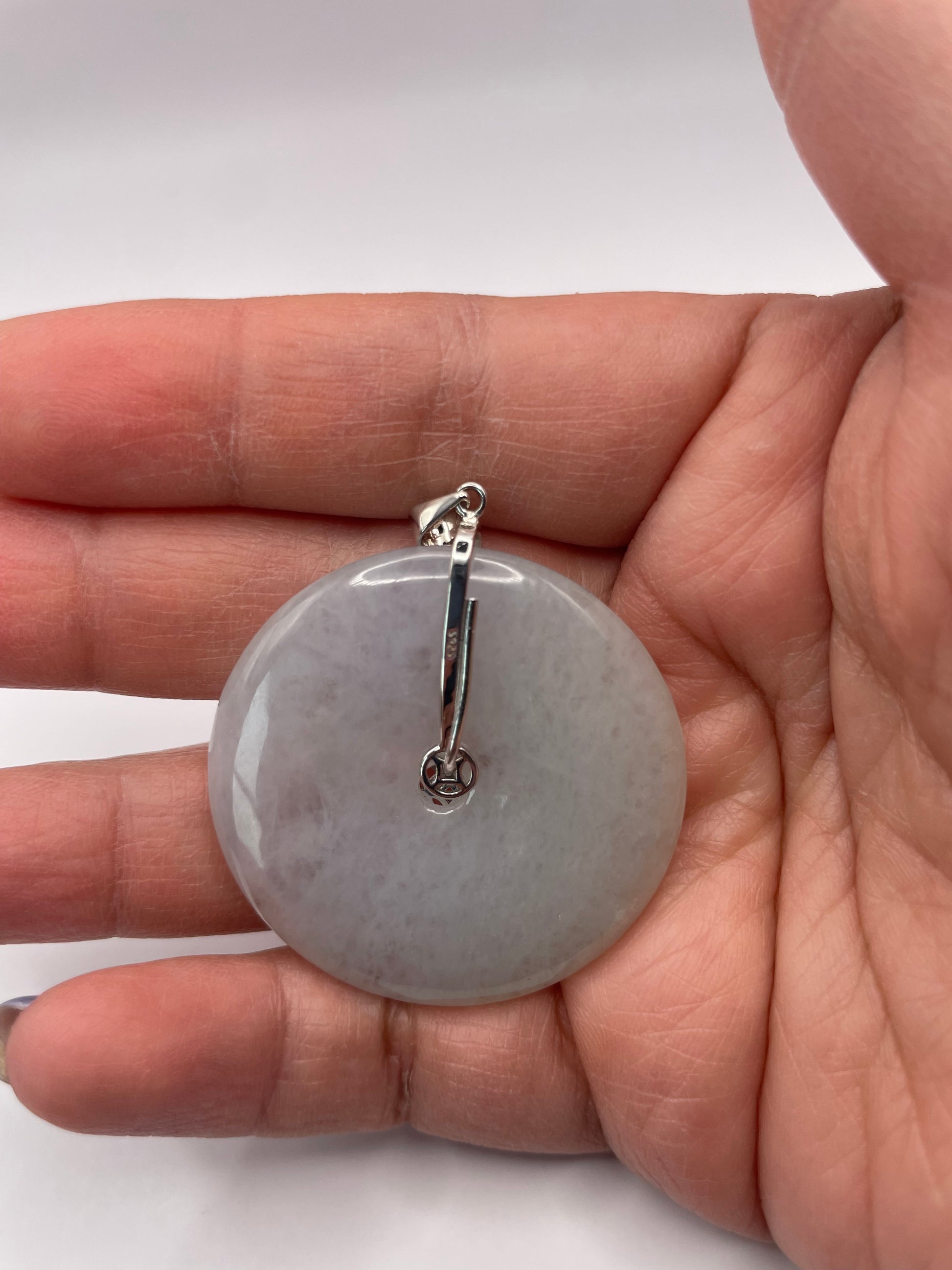 Grade A Natural lavender Jadeite Pi Disc ( peng on kou, donut) pendant with sterling silver