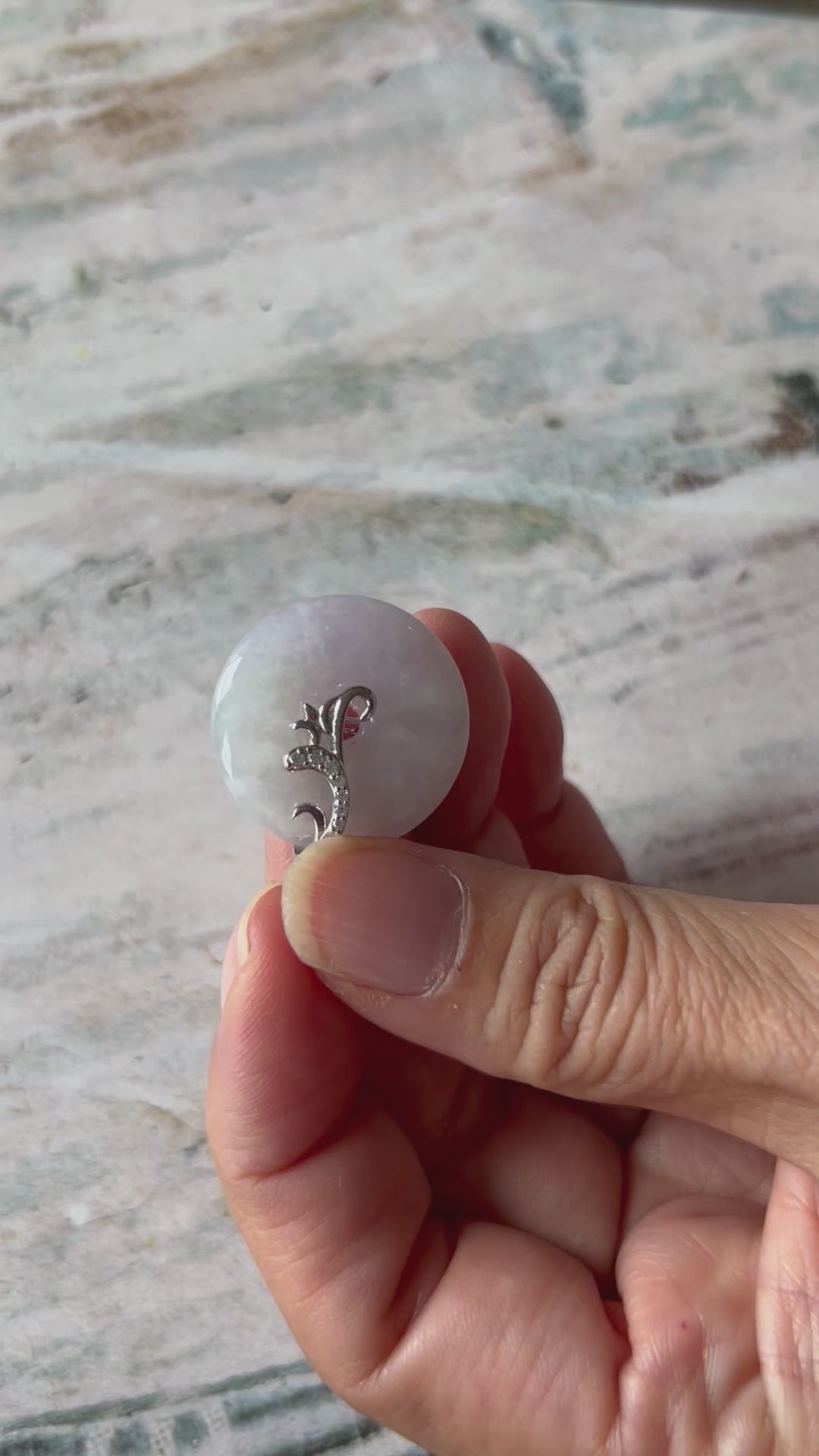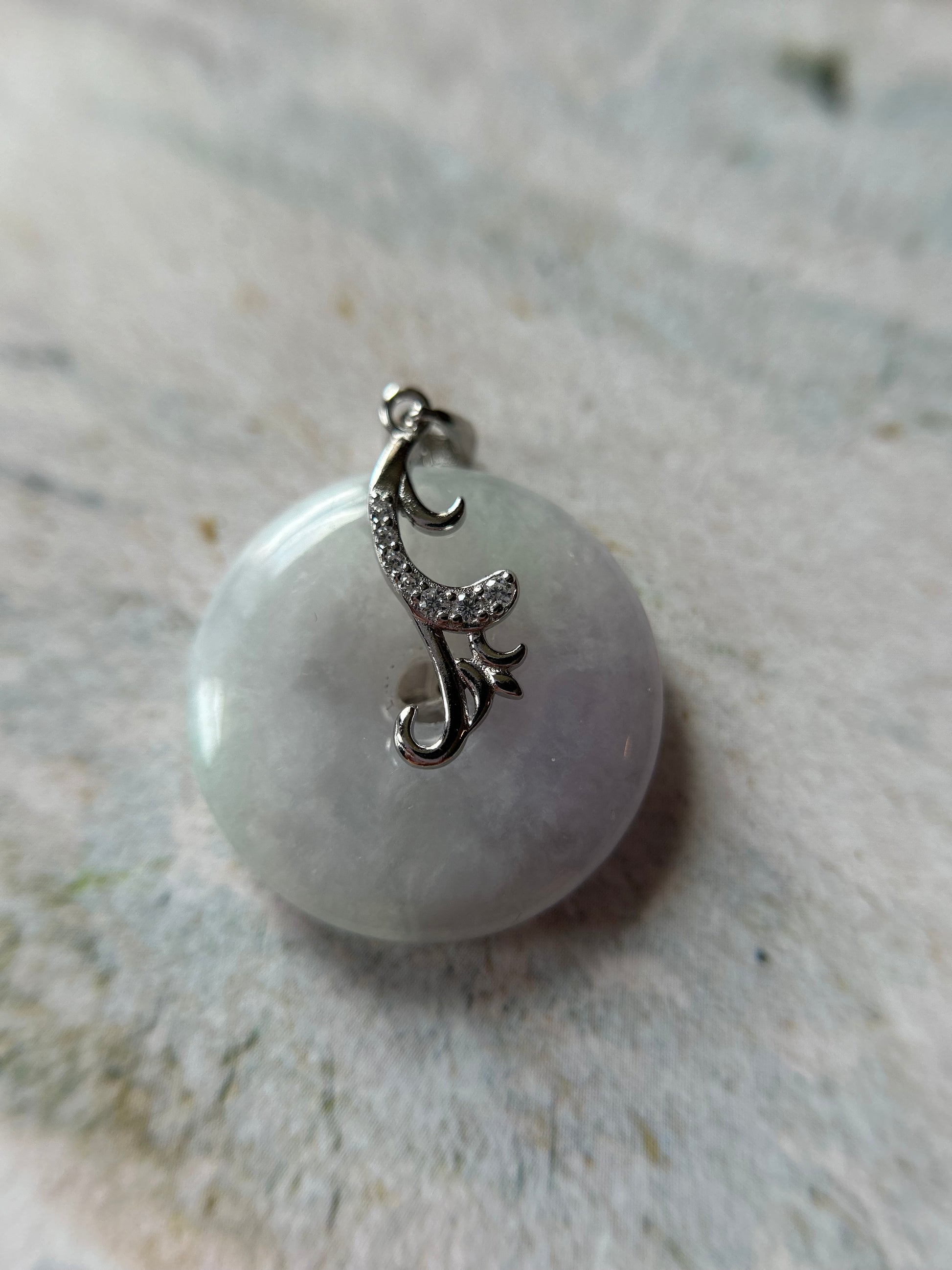 Grade A Natural lavender Jadeite Pi Disc ( peng on kou, donut) pendant with sterling silver bail